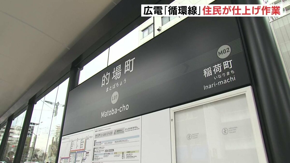 広島電鉄の新しい「循環線」が開業するのを前に地元住民が停留場の仕上げ作業を行いました。