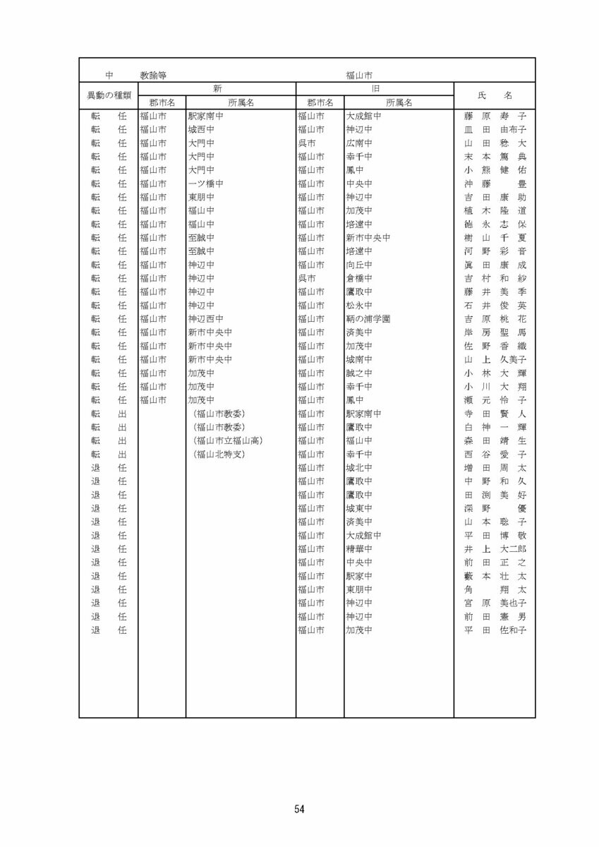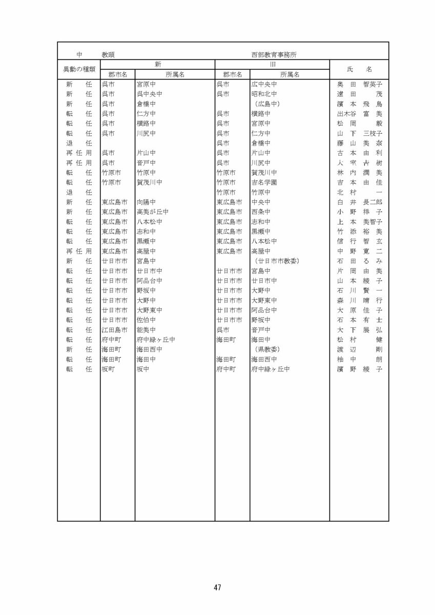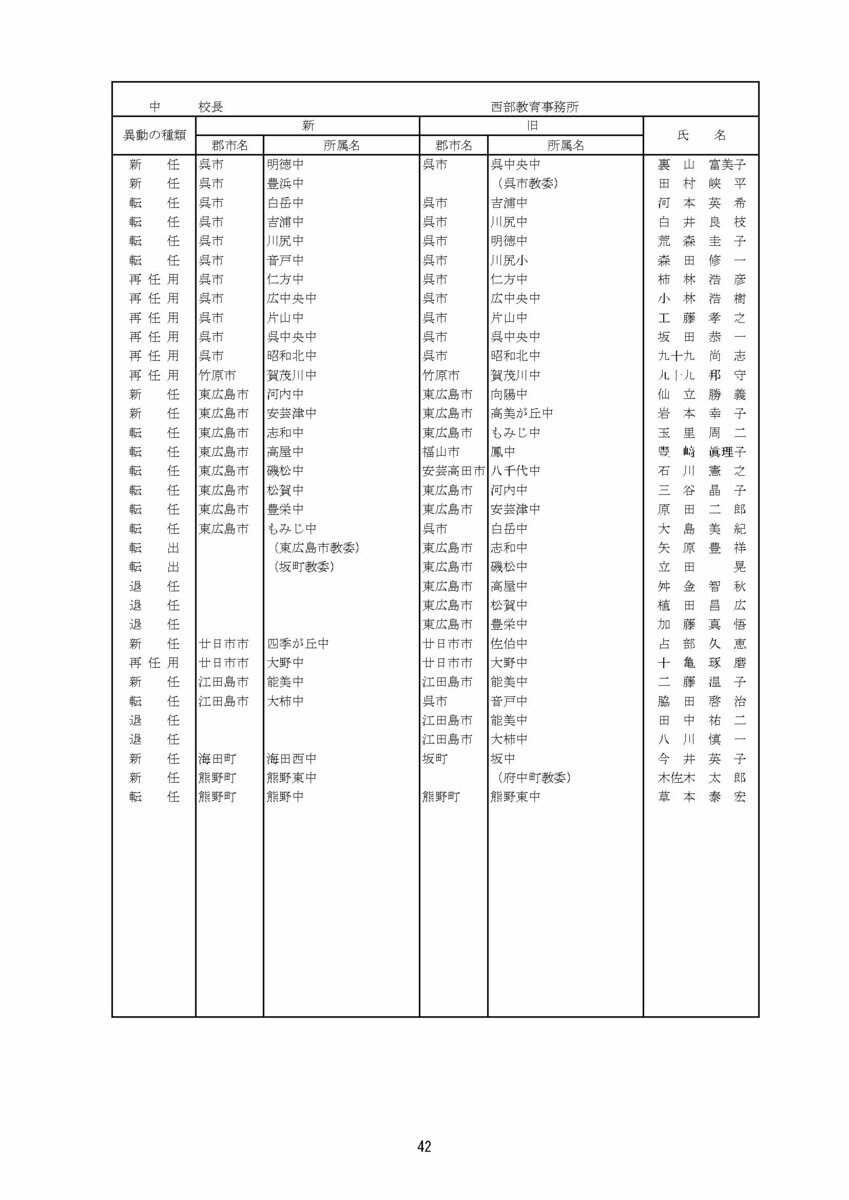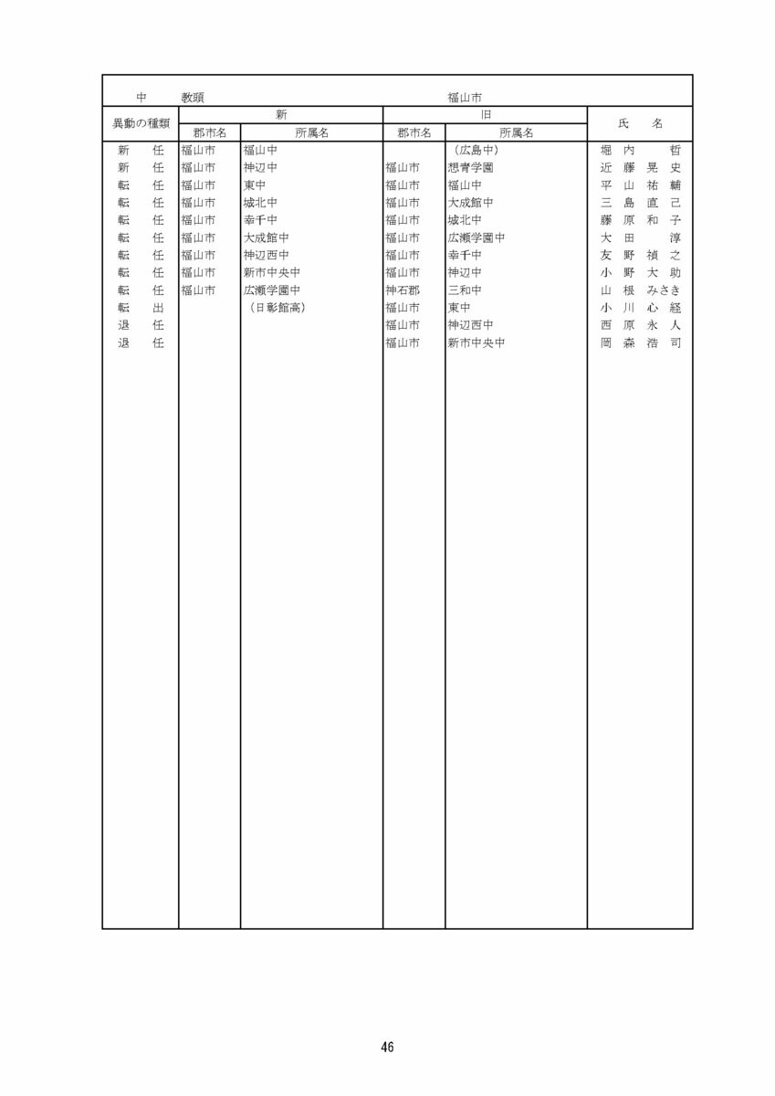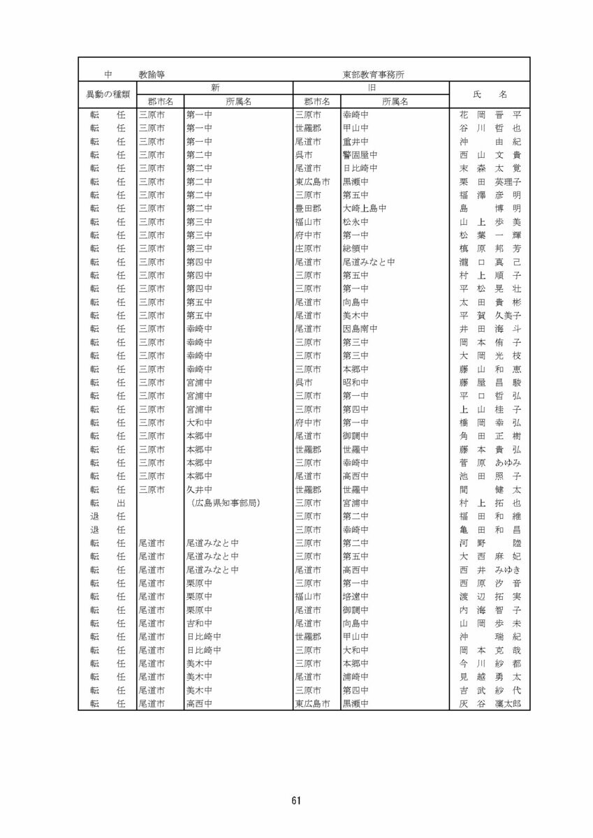【広島県教職員人事異動情報】