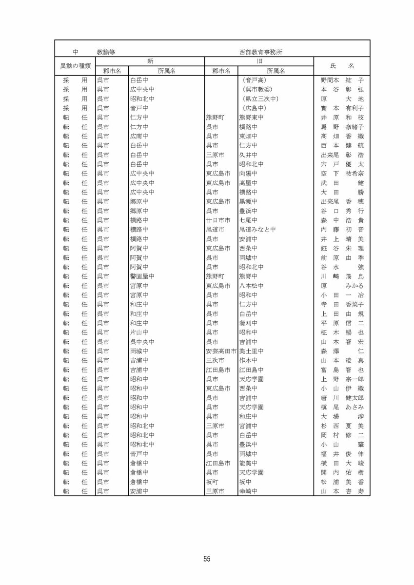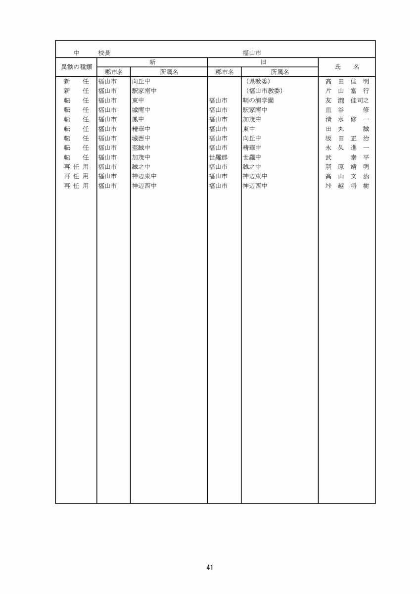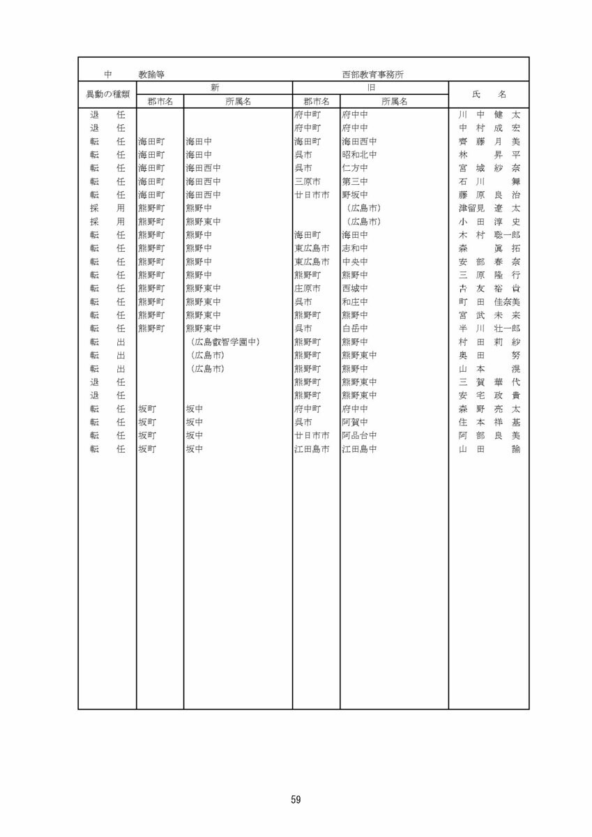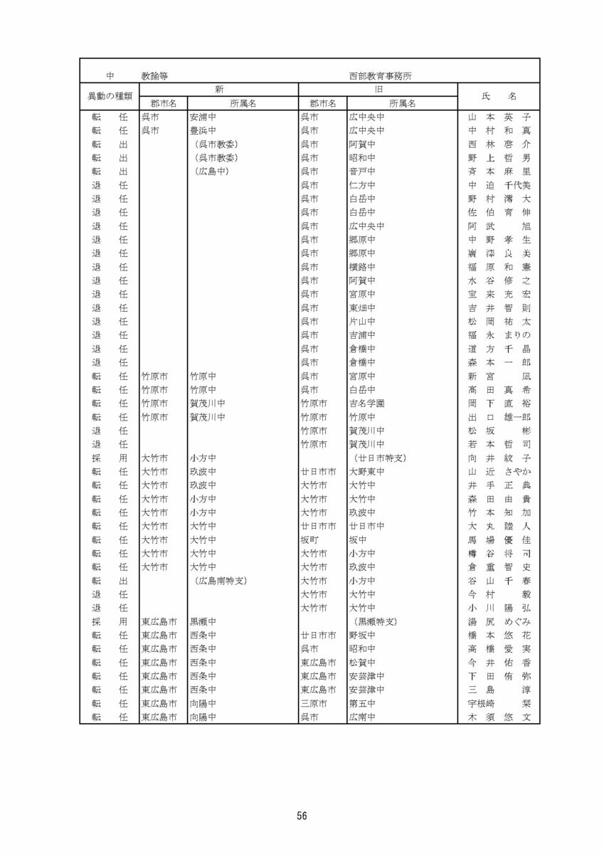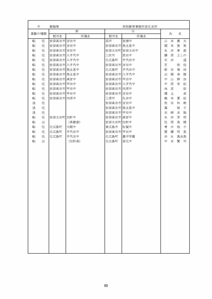 【広島県教職員人事異動情報】