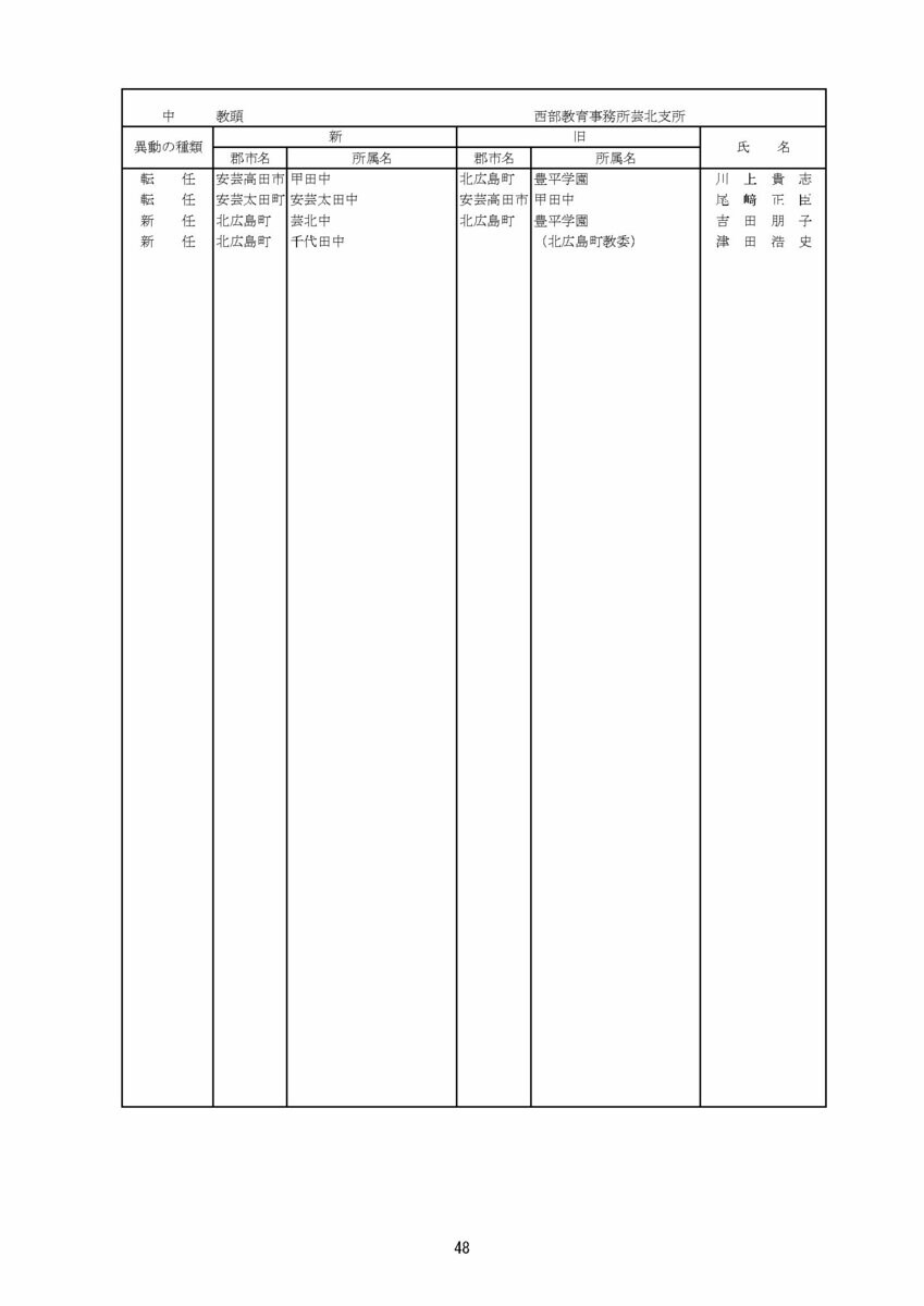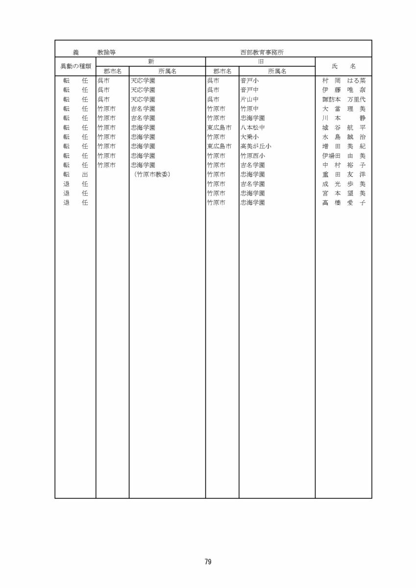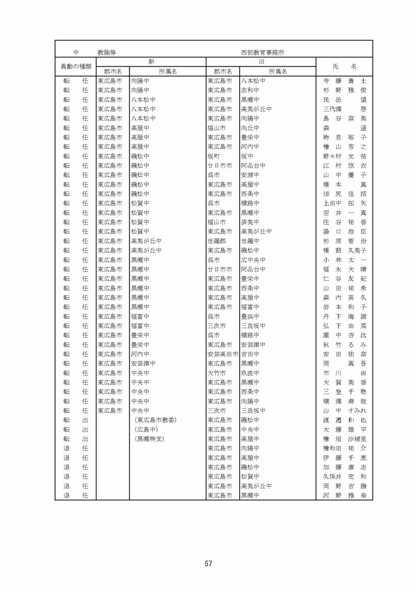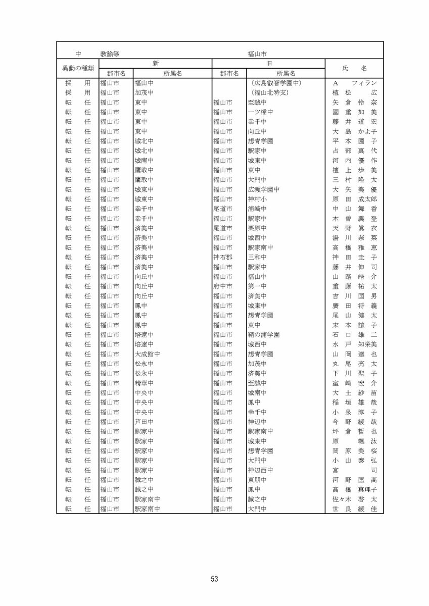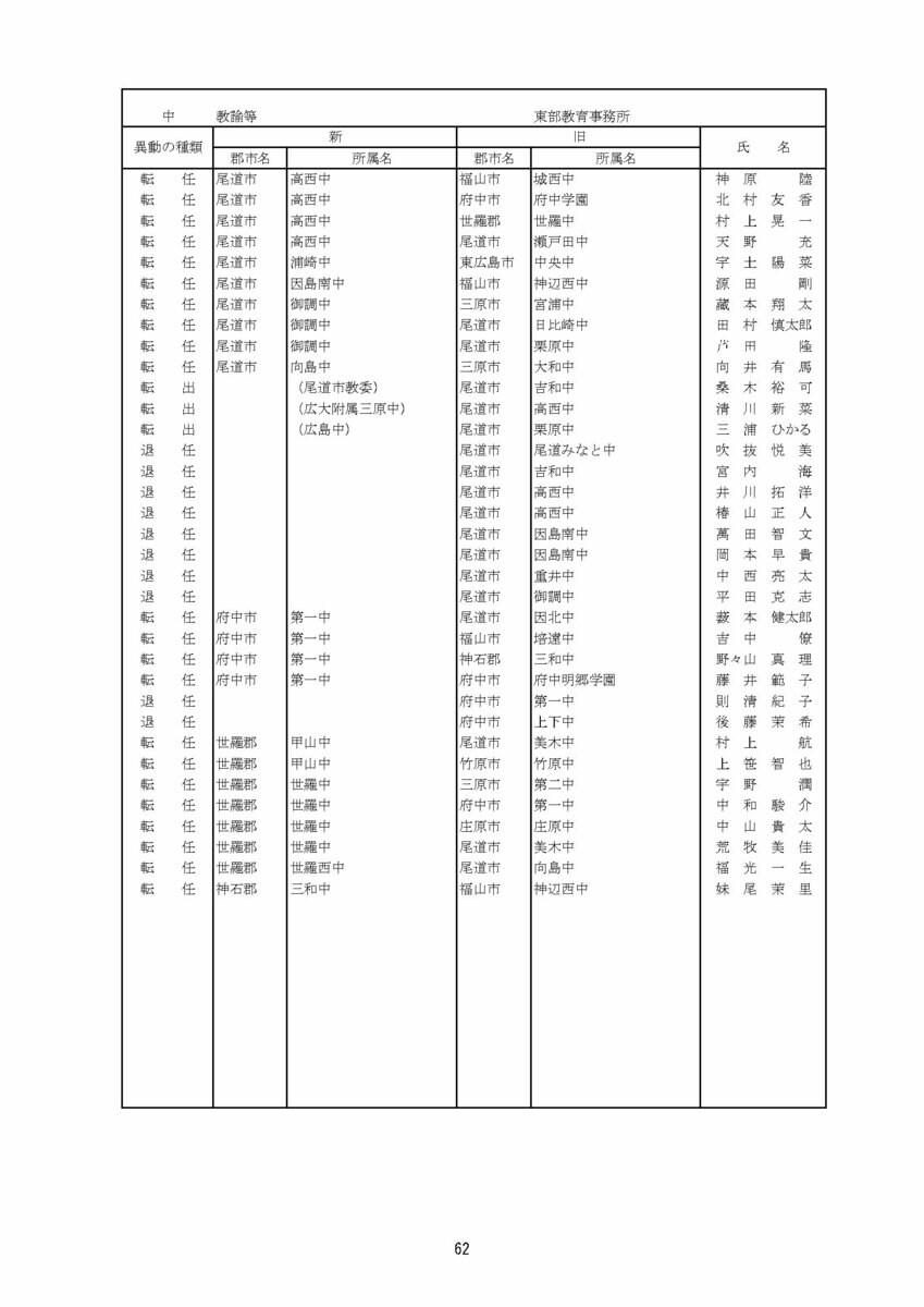 【広島県教職員人事異動情報】