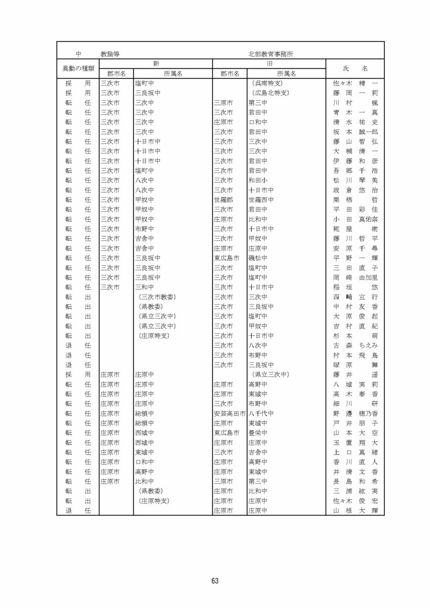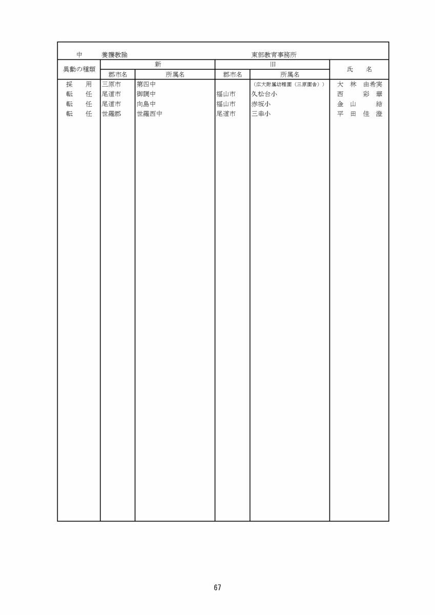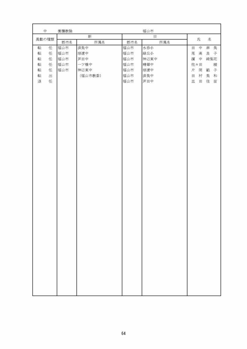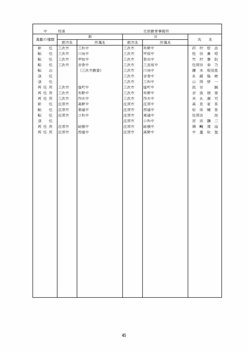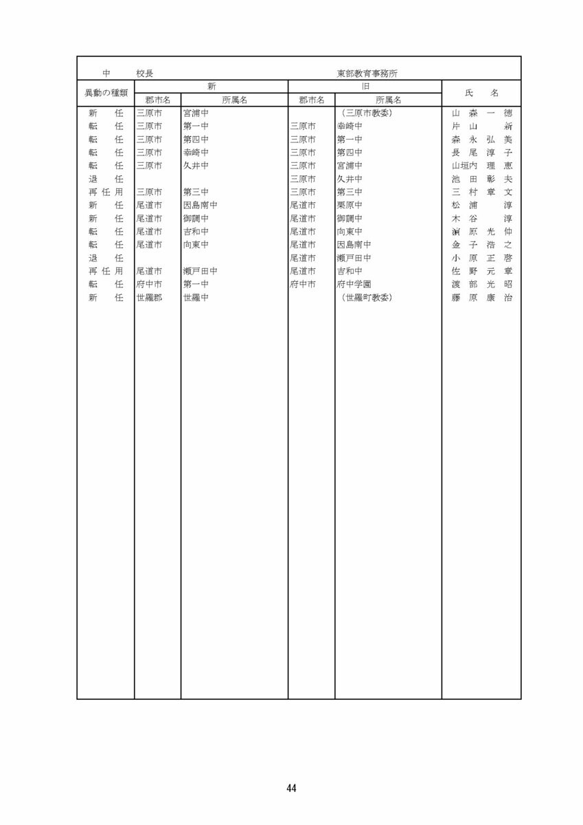 【広島県教職員人事異動情報】