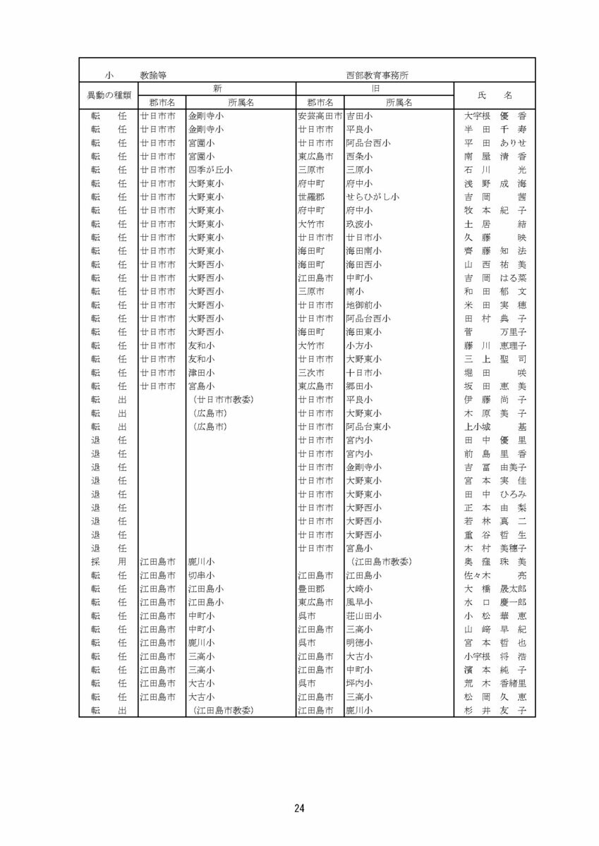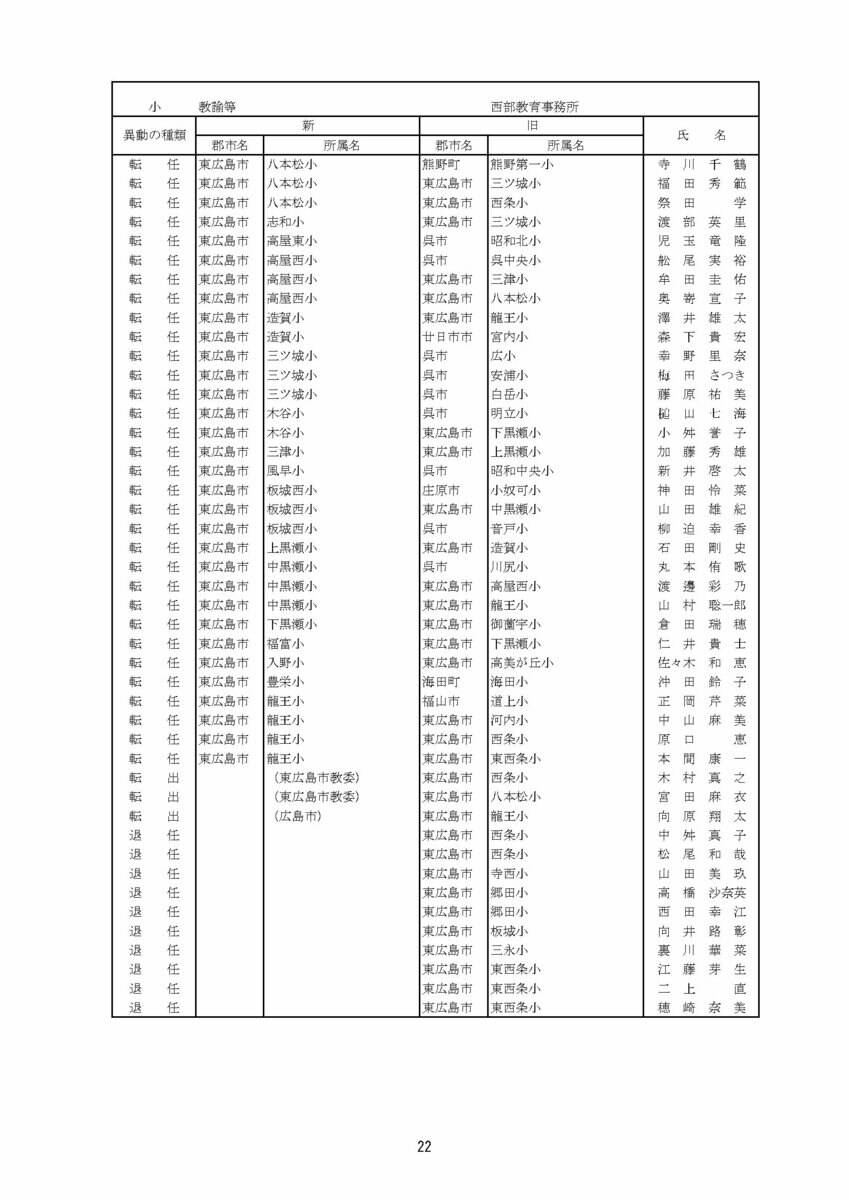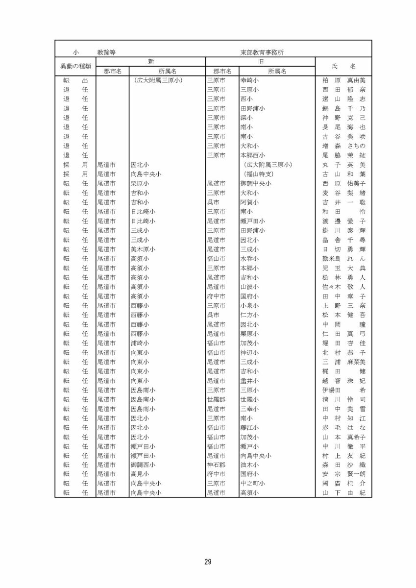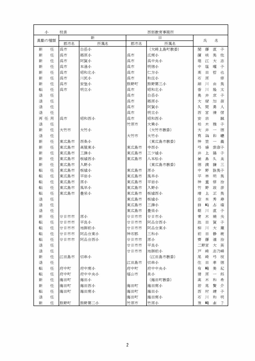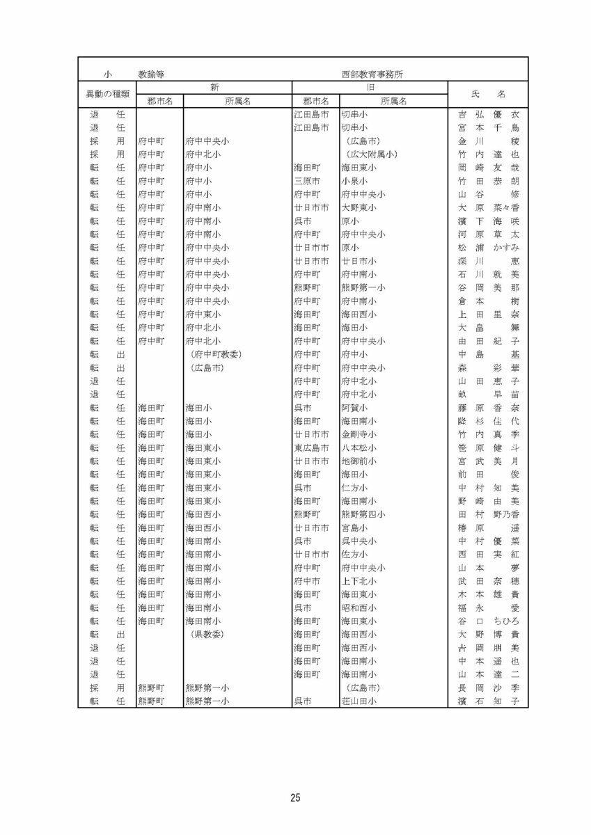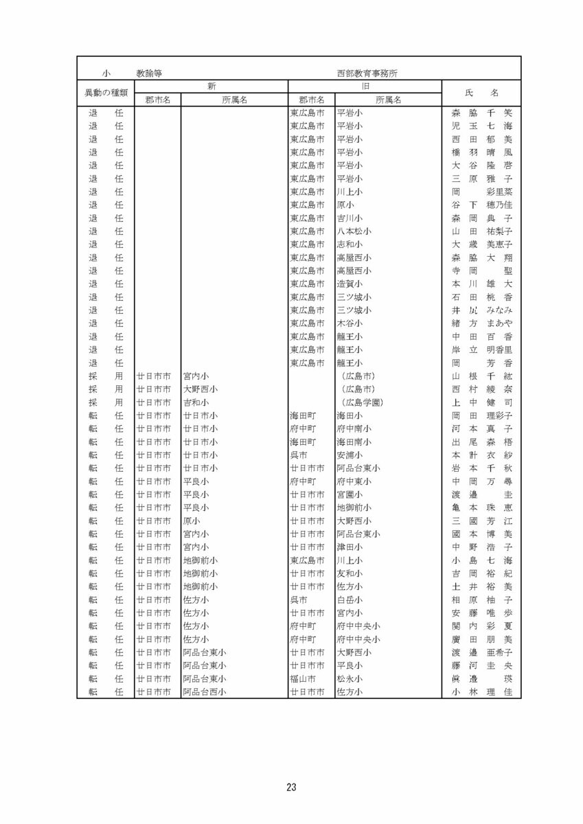 広島県教育委員会は23日、4月1日付の人事異動を発表しました。