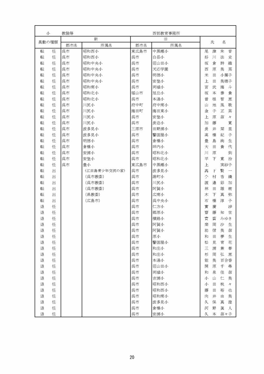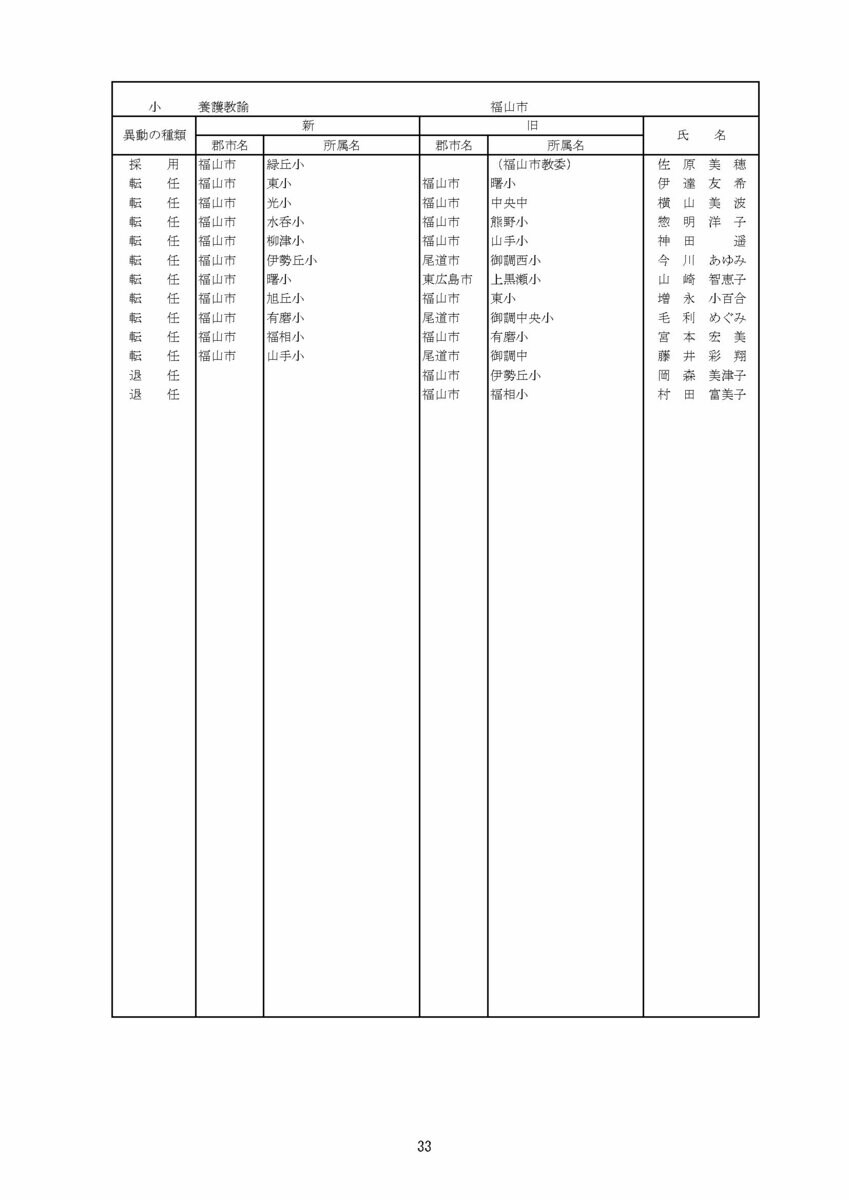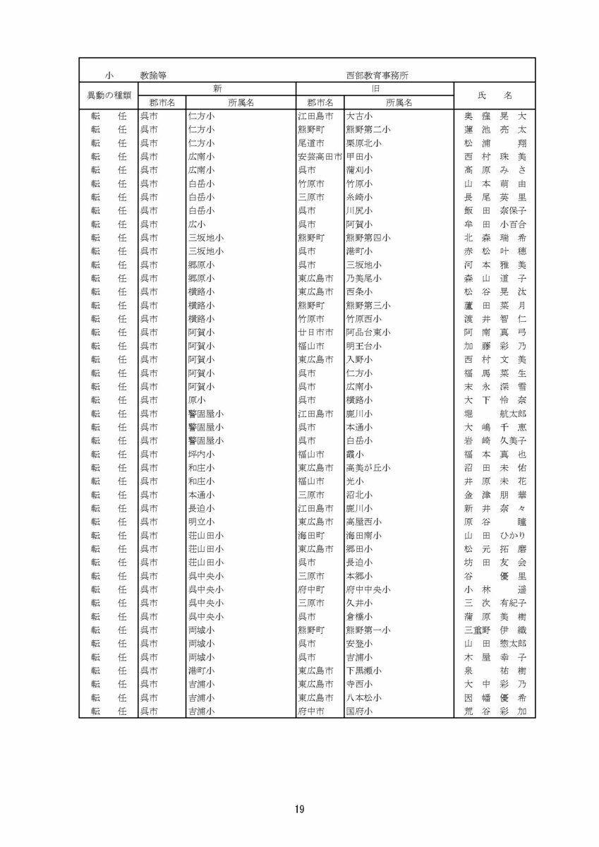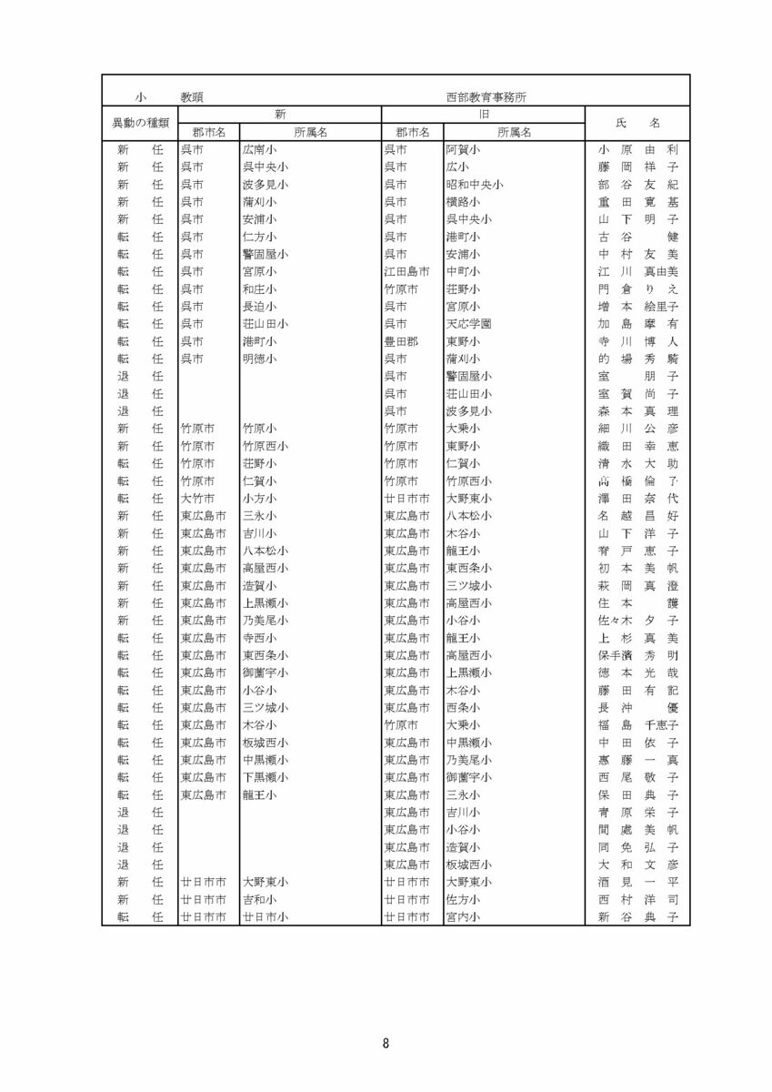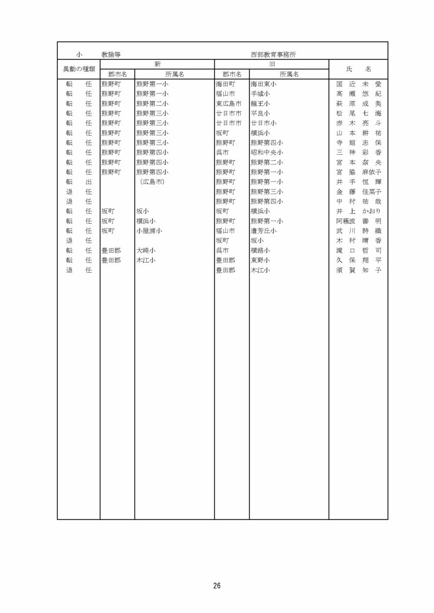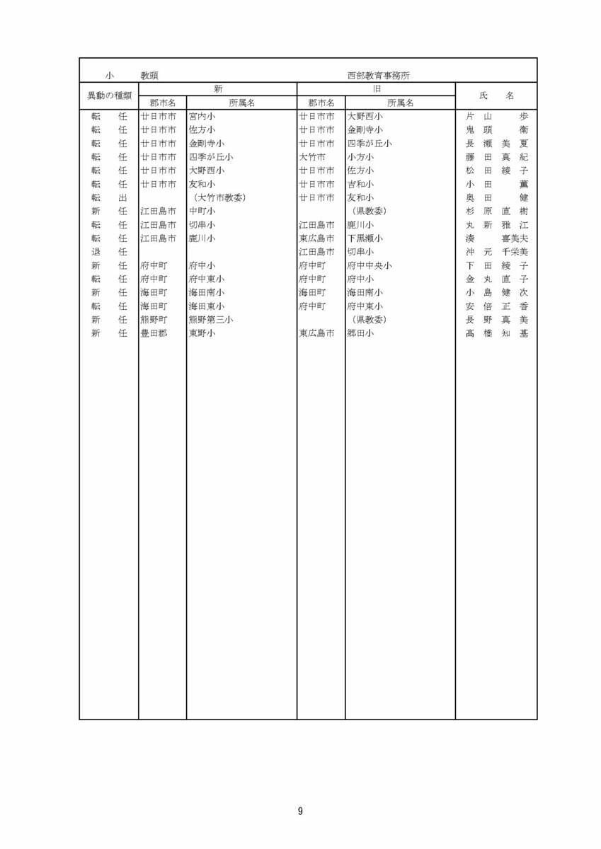 広島県教育委員会は23日、4月1日付の人事異動を発表しました。