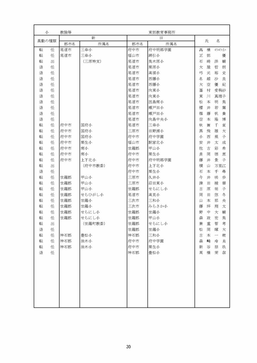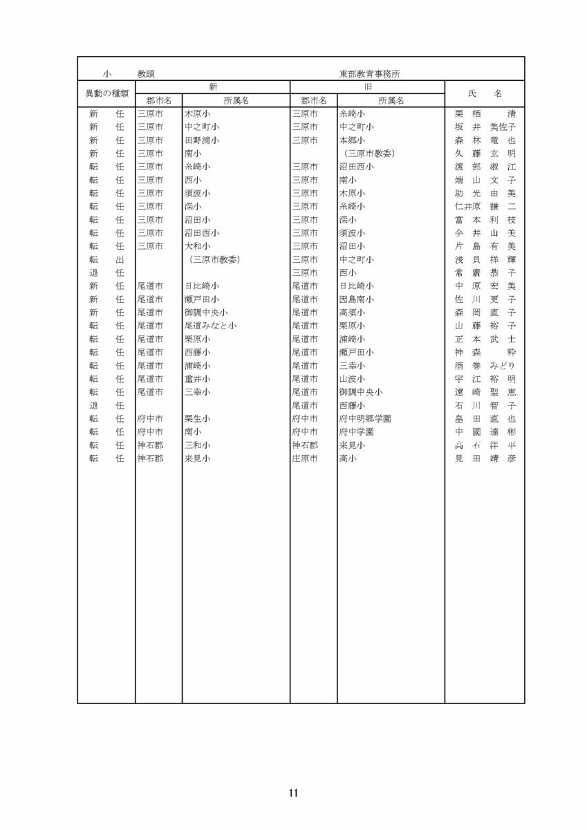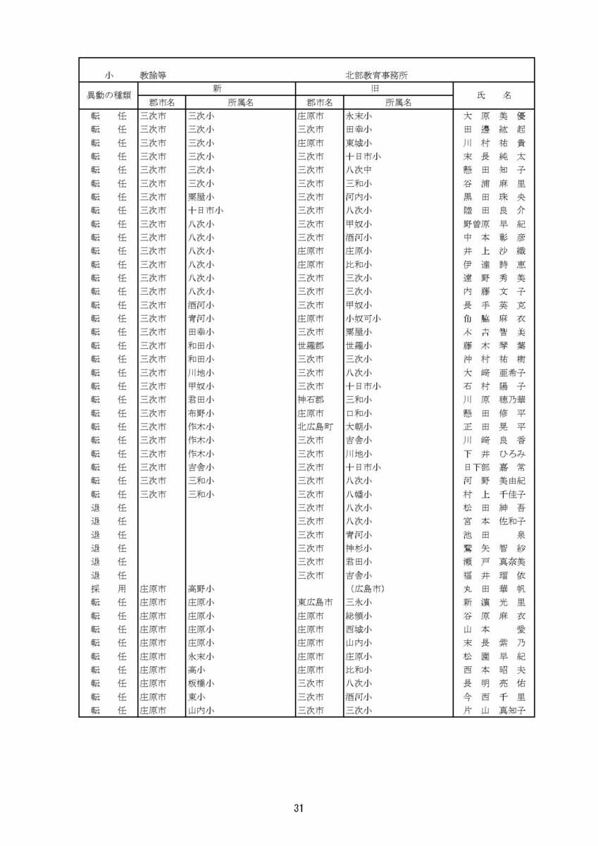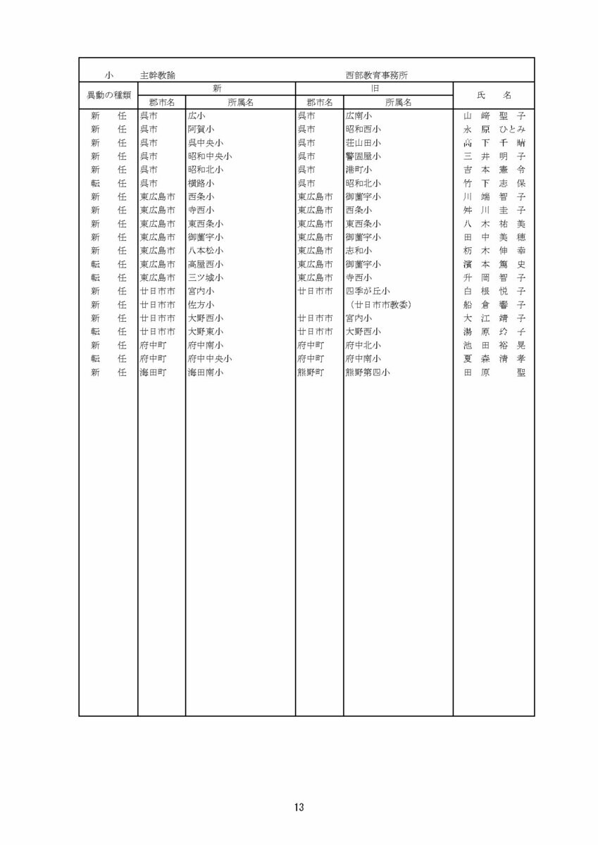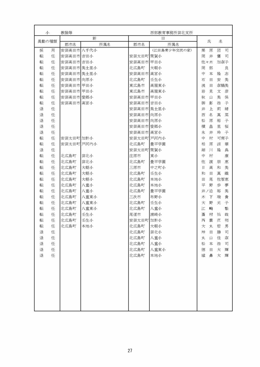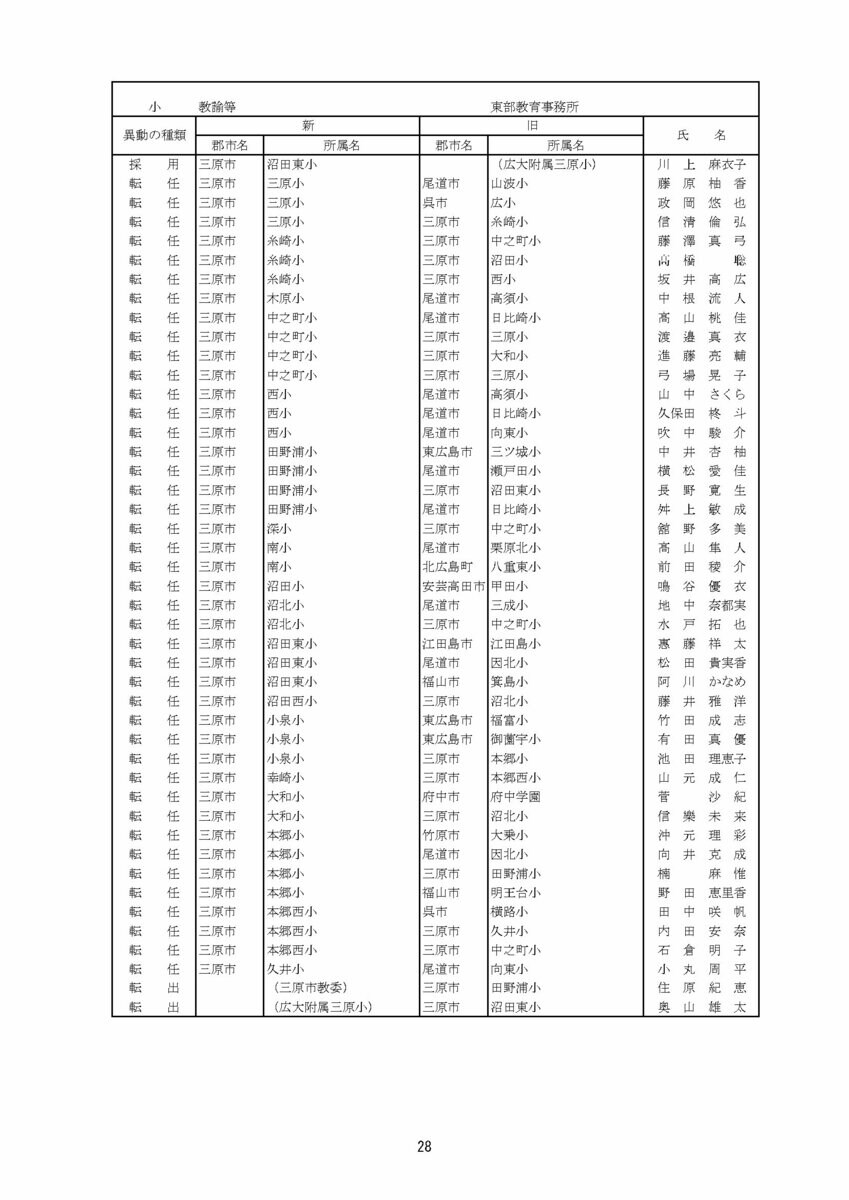 広島県教育委員会は23日、4月1日付の人事異動を発表しました。