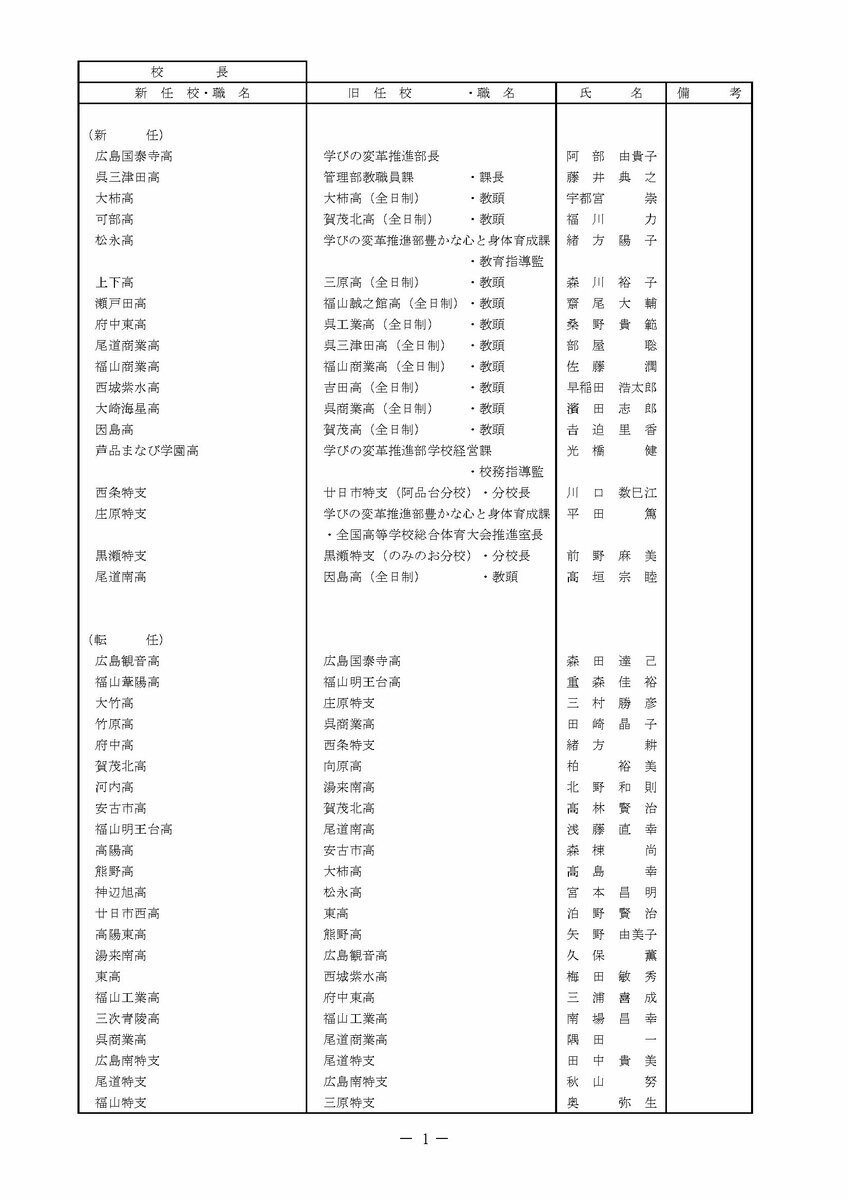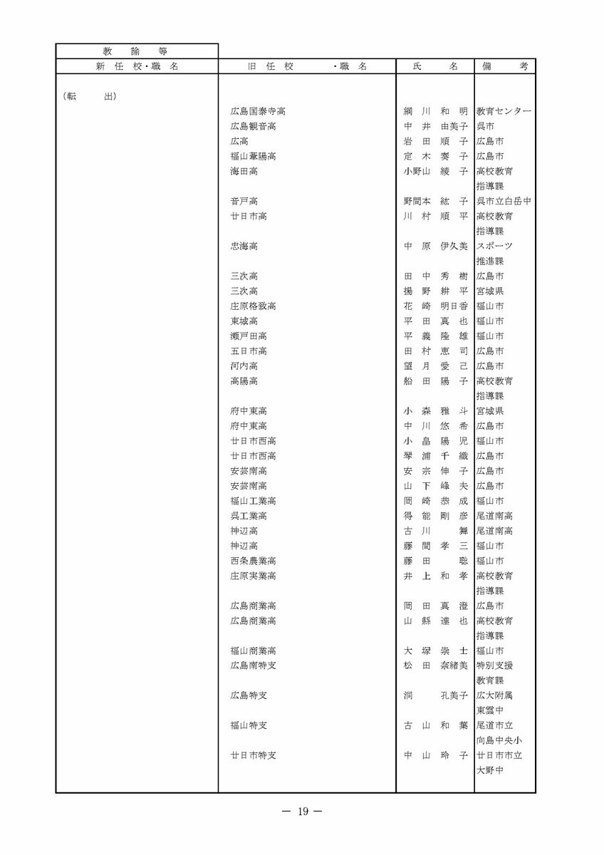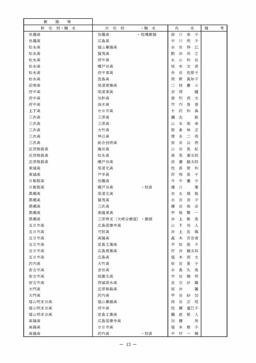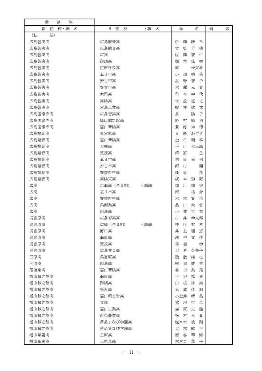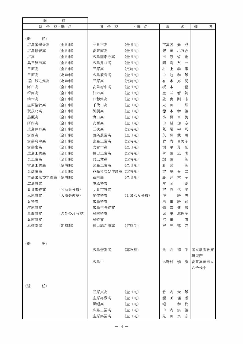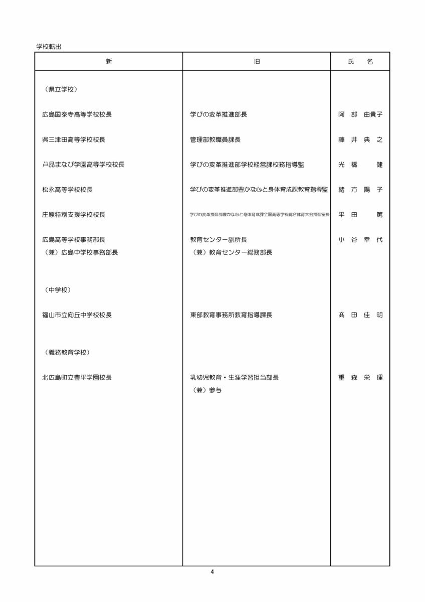 【広島県教職員人事異動情報】