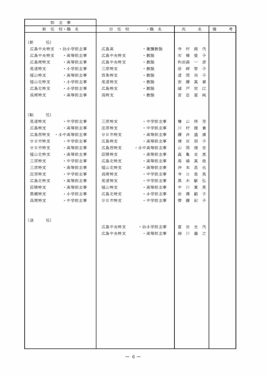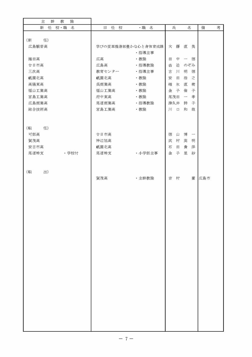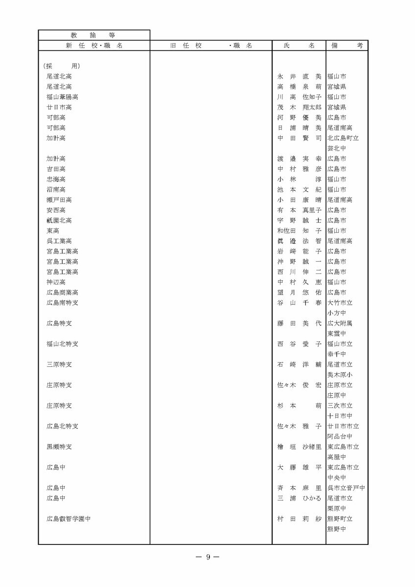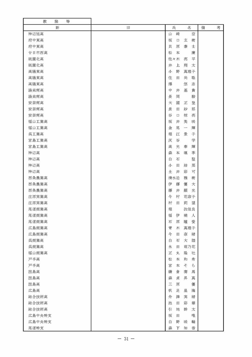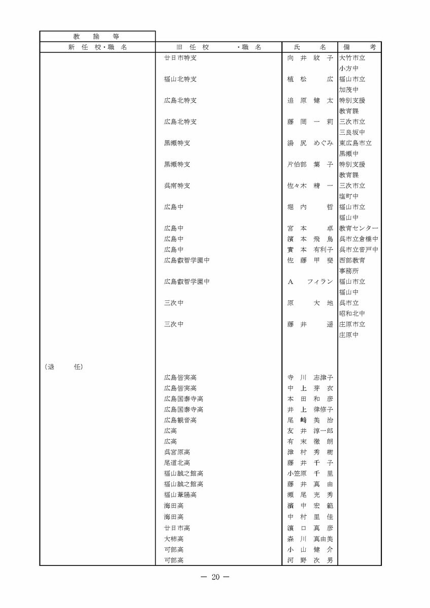 【広島県教職員人事異動情報】