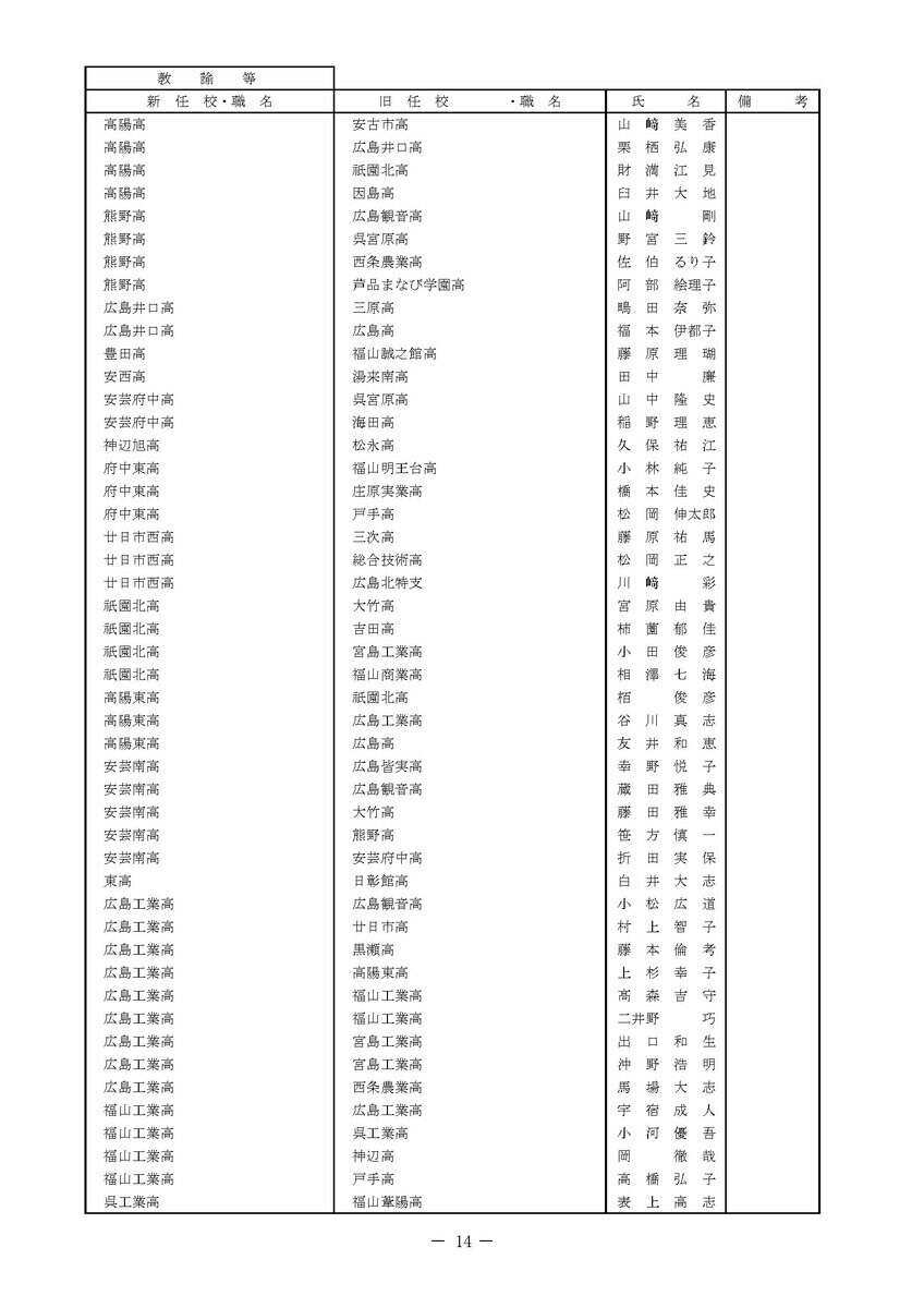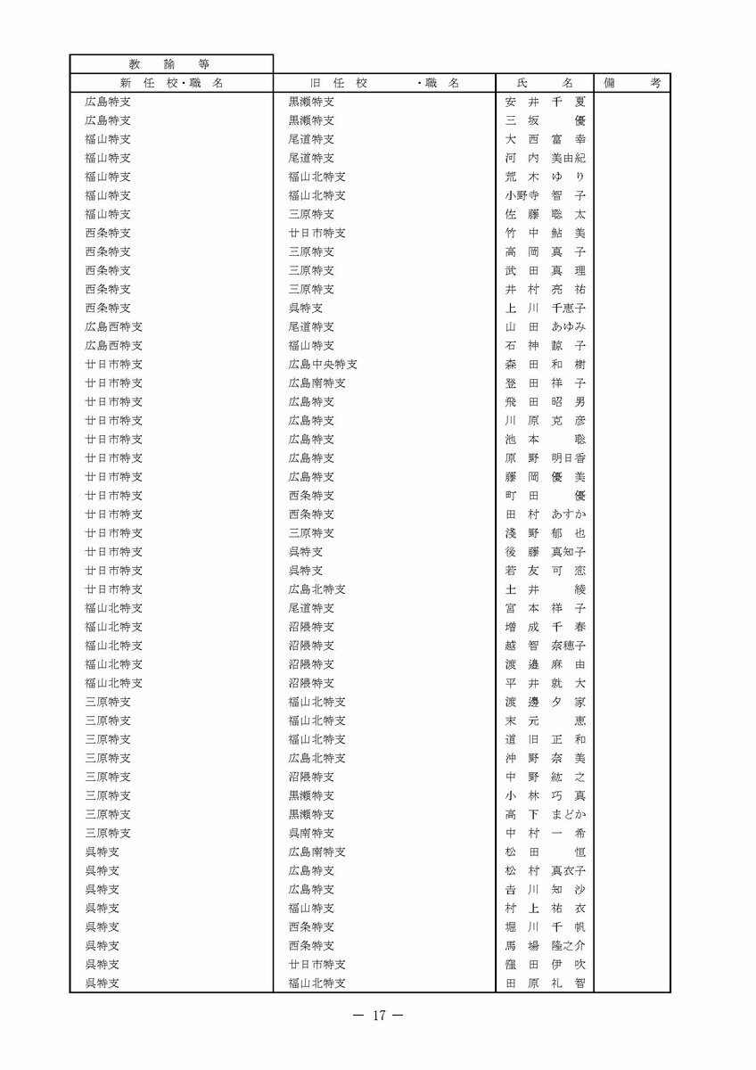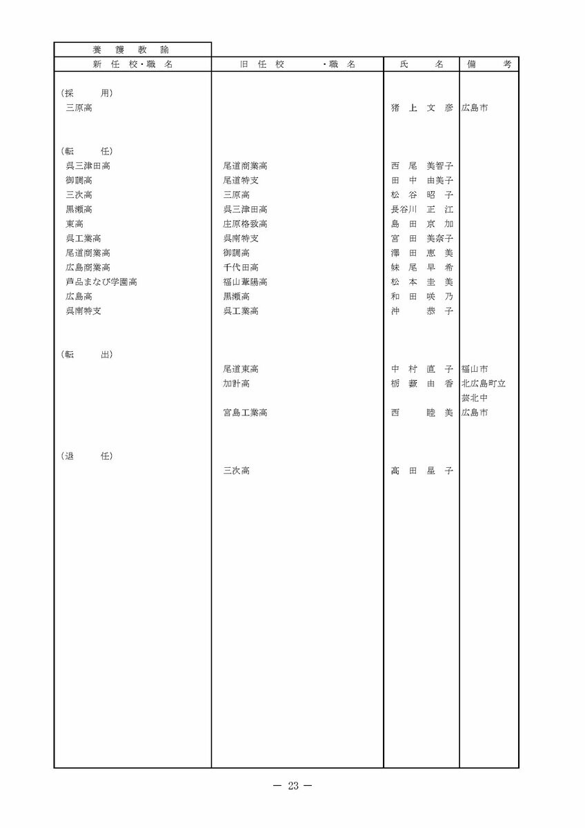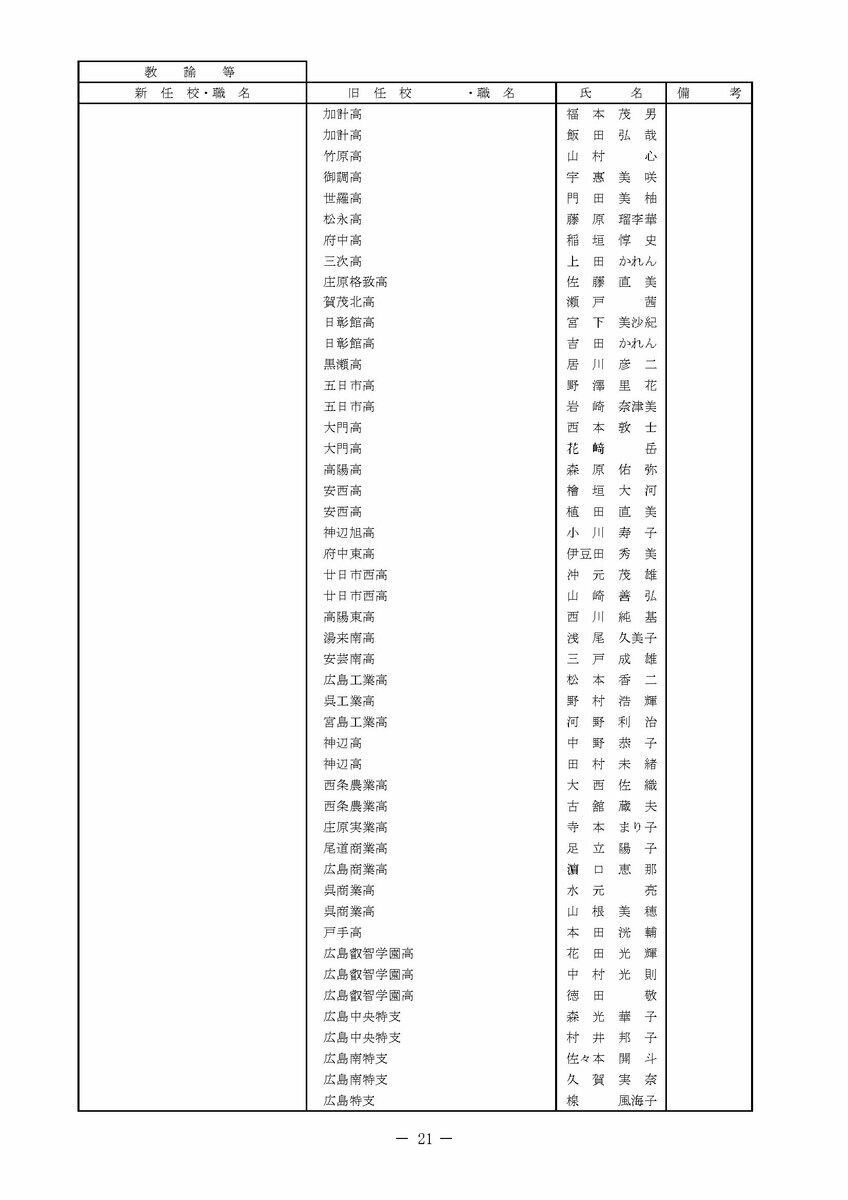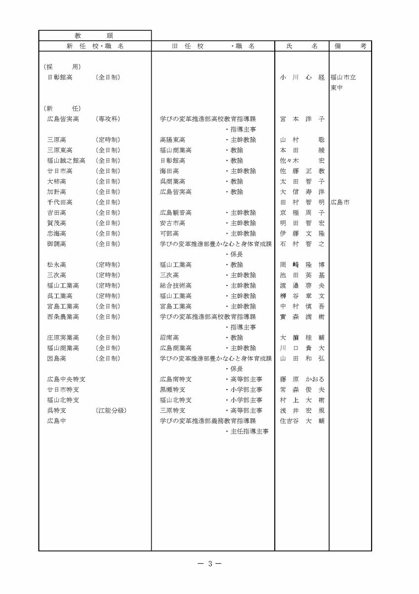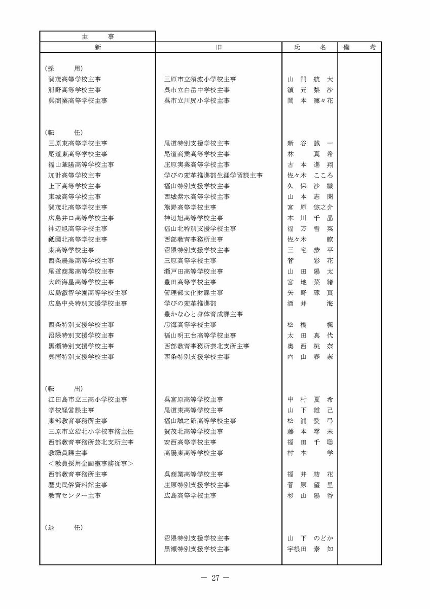 【広島県教職員人事異動情報】