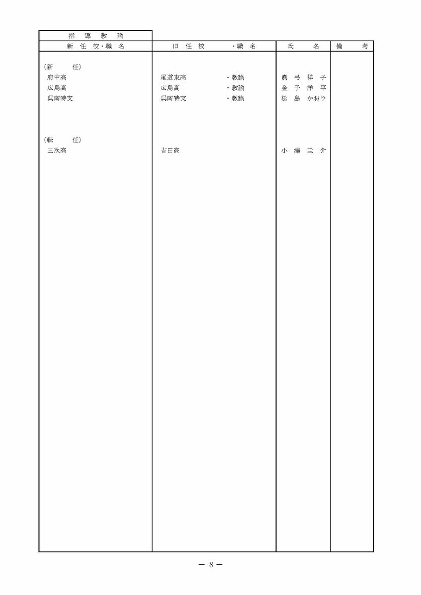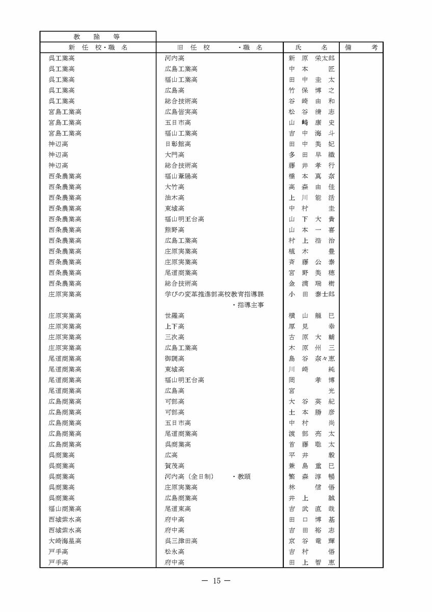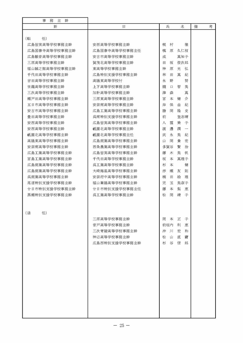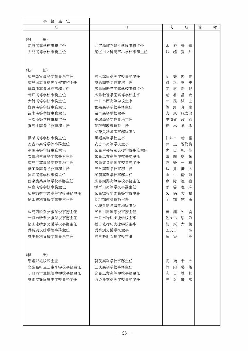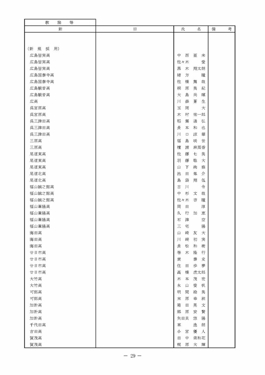 【広島県教職員人事異動情報】