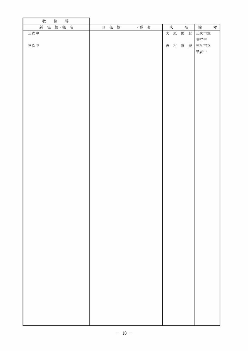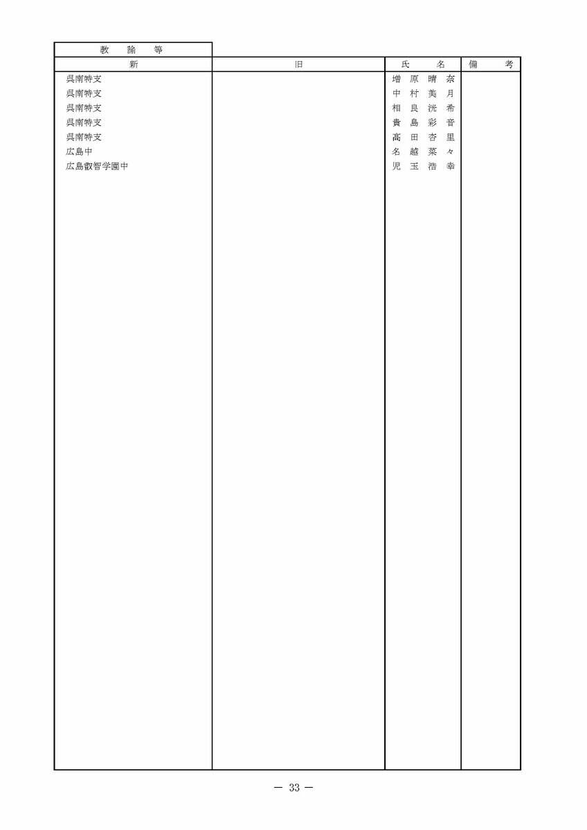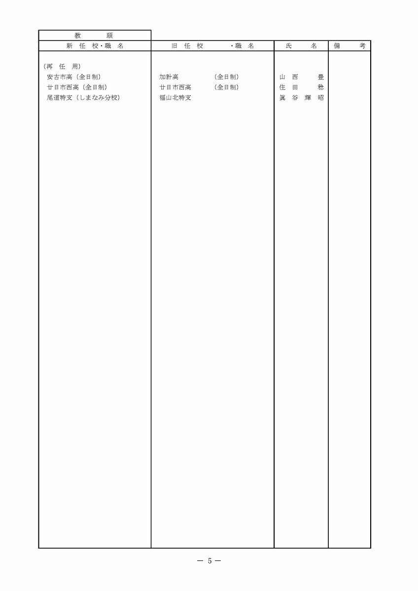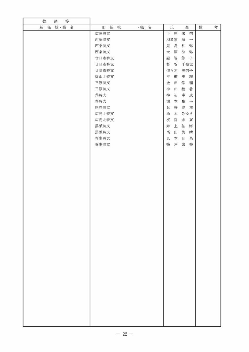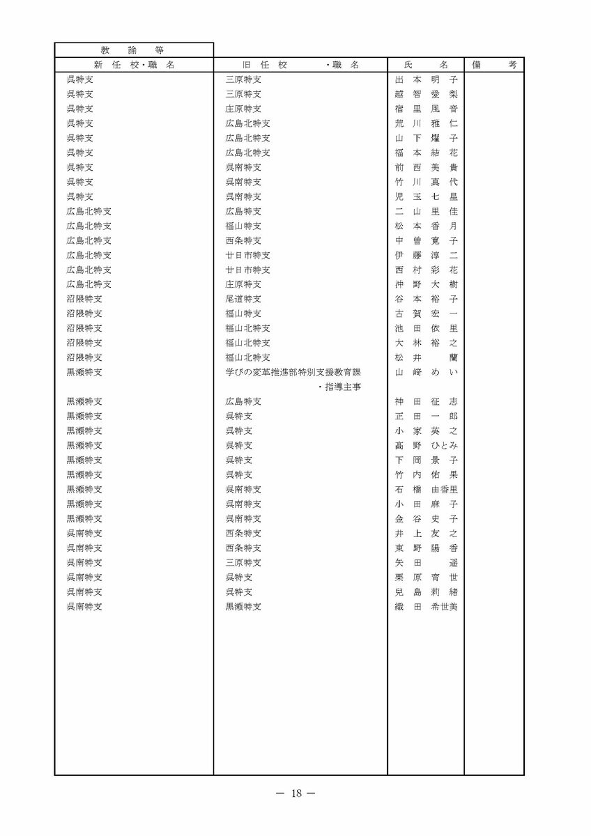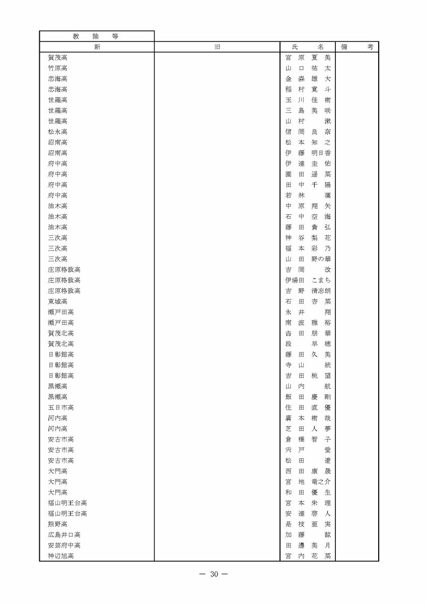 【広島県教職員人事異動情報】