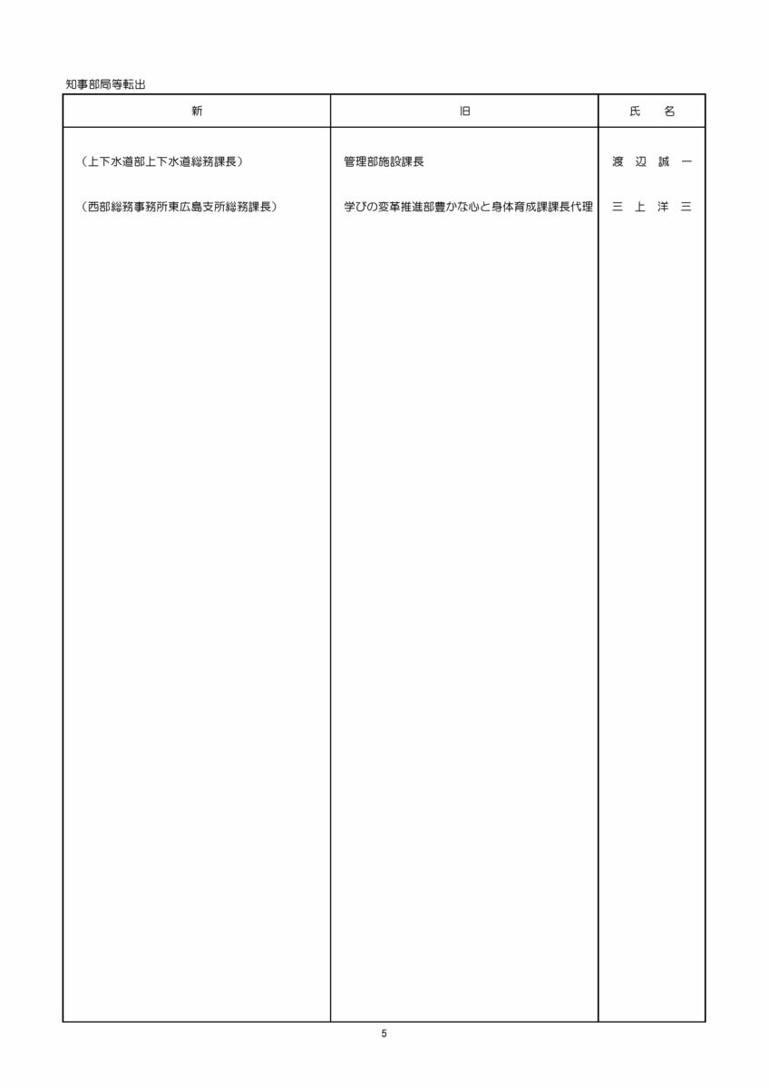 主事の部(採用・転任・転出・退任)