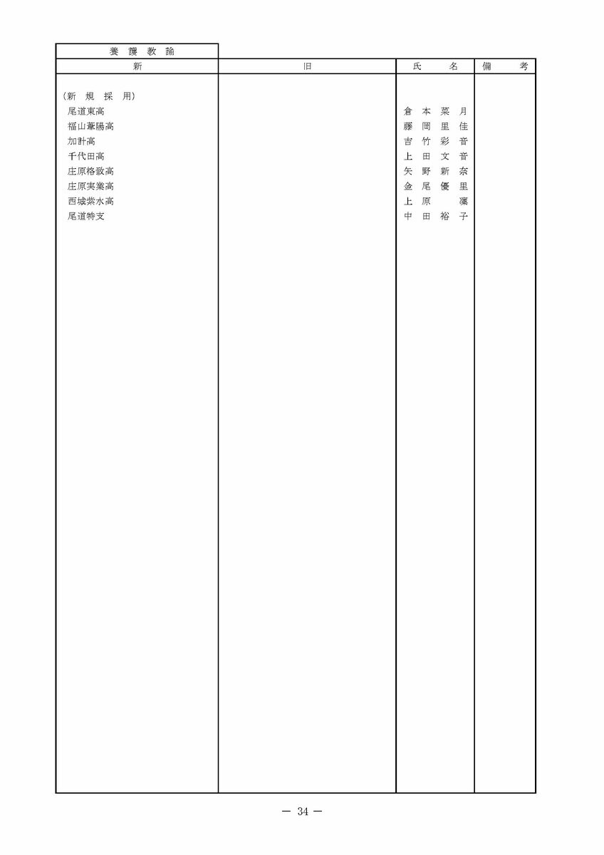 養護教諭の部(採用・転任・転出・退任)