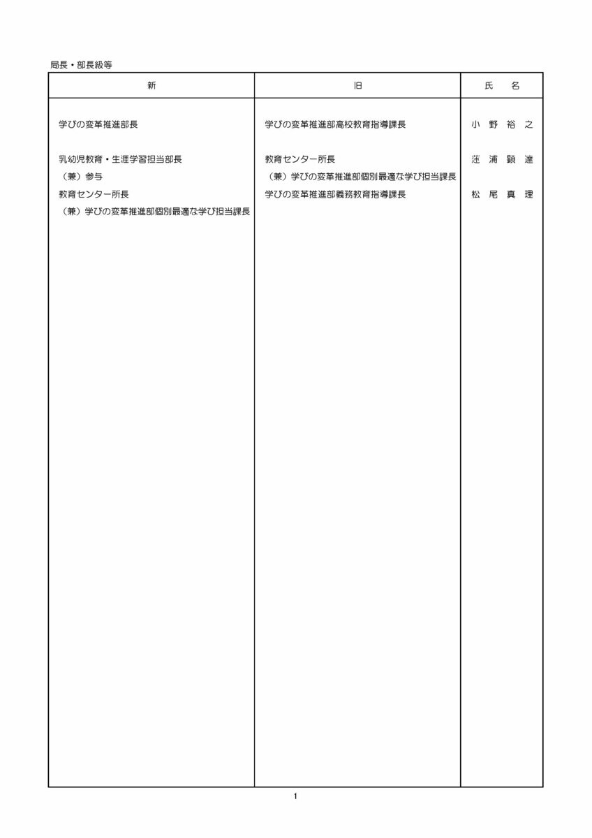 県教育委員会 局長・部長級等の部