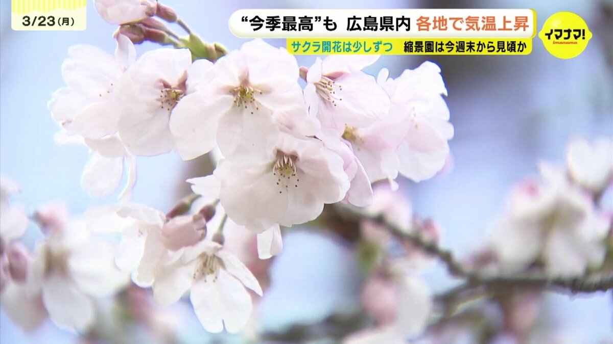 23日の広島県内は各地で気温が上がり、今シーズン1番の暖かさとなったところもありました。広島市のサクラは少しずつ開花が進んでいます。