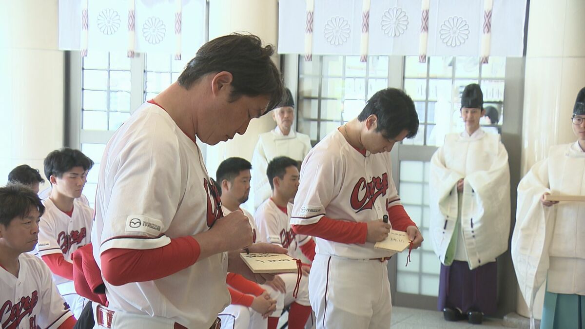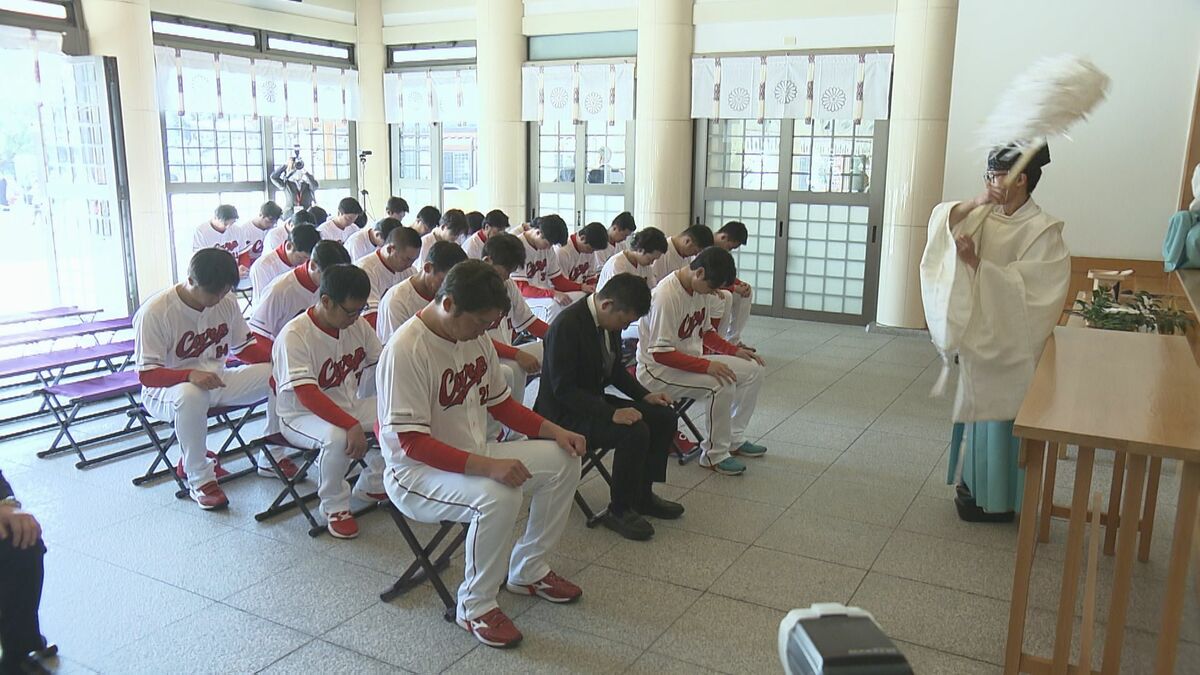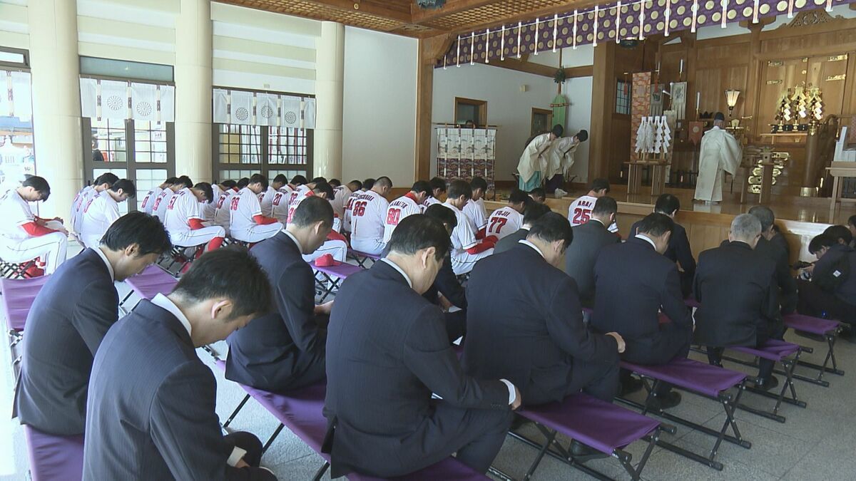 27日のプロ野球開幕を控え広島カープは広島市内の神社で恒例の必勝祈願を行いました。
