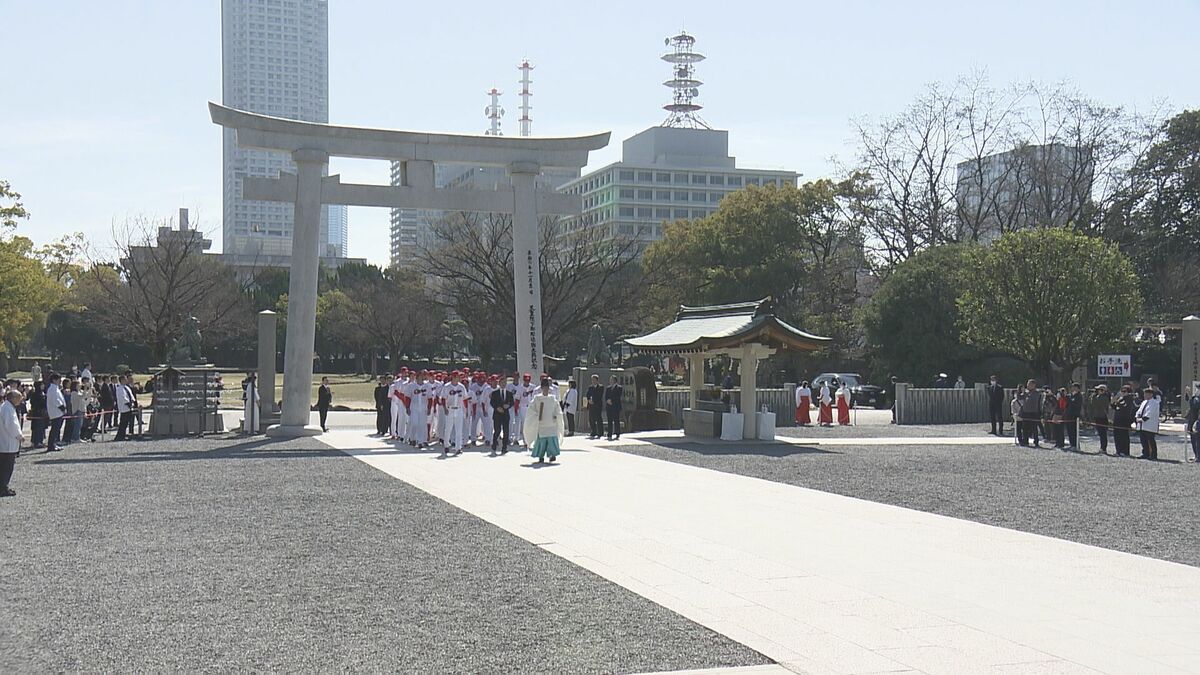 広島護国神社を訪れた広島カープ一行(3月24日)