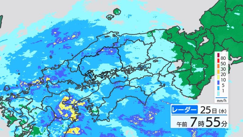 きょう25日(水)の広島県内は、雨の朝となりました。気温はあまり下がらず、最低気温は広島9.5℃、呉9.6℃、福山9.2℃、三次6.4℃でした。