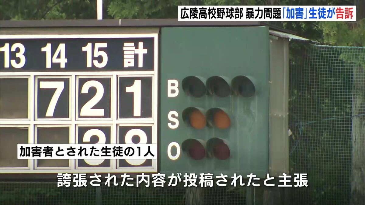広島市の広陵高校の硬式野球部で起きた暴力問題で、加害者とされた1人がSNSへの投稿で名誉を傷つけられたとして、被害生徒の保護者などを刑事告訴しました。
