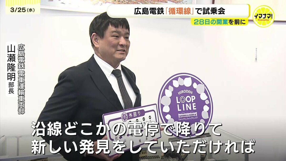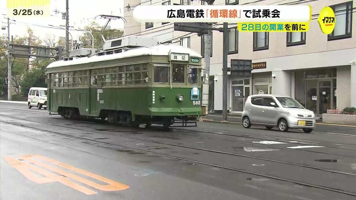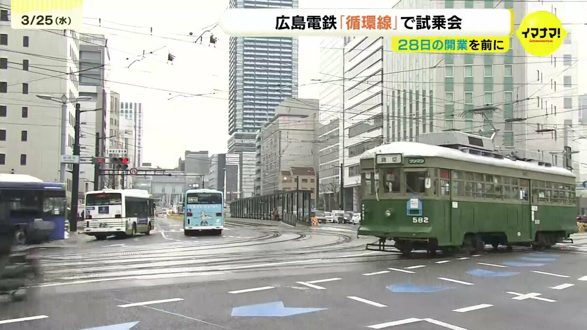 広島市内を走る路面電車の「循環線」が、28日から運行を開始します。運行を前に報道機関向けの試乗会が開かれました。