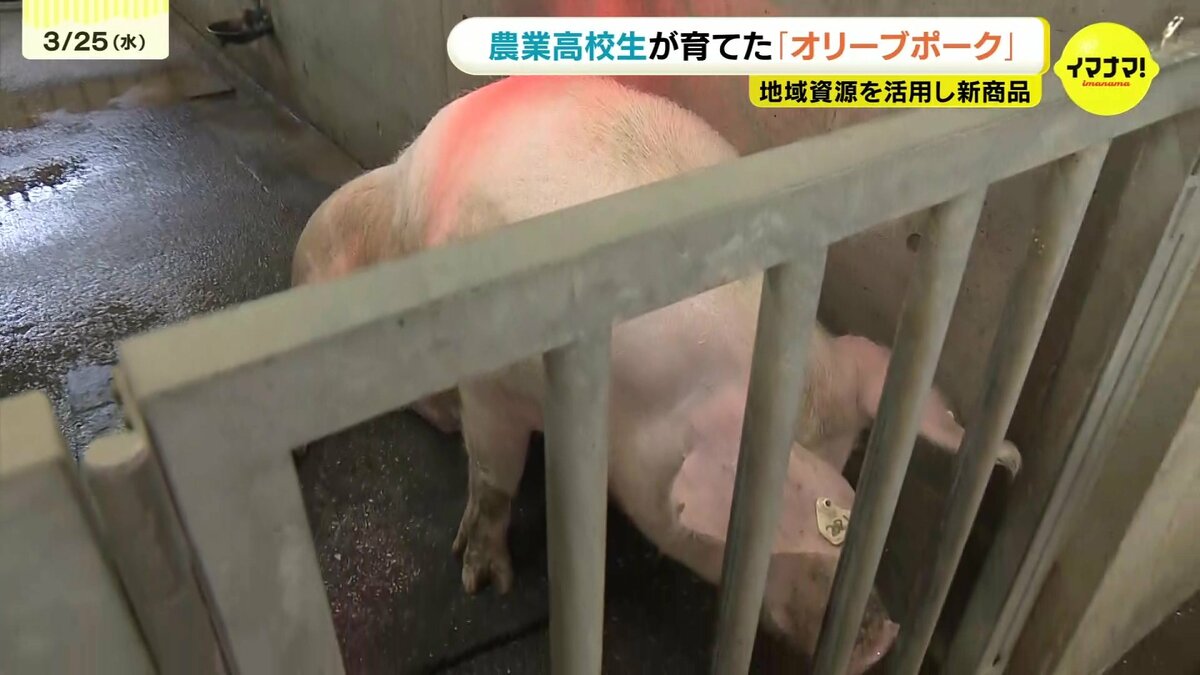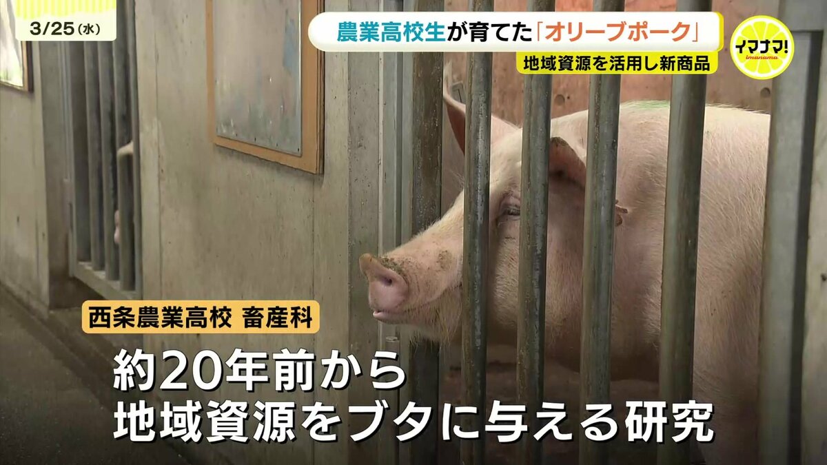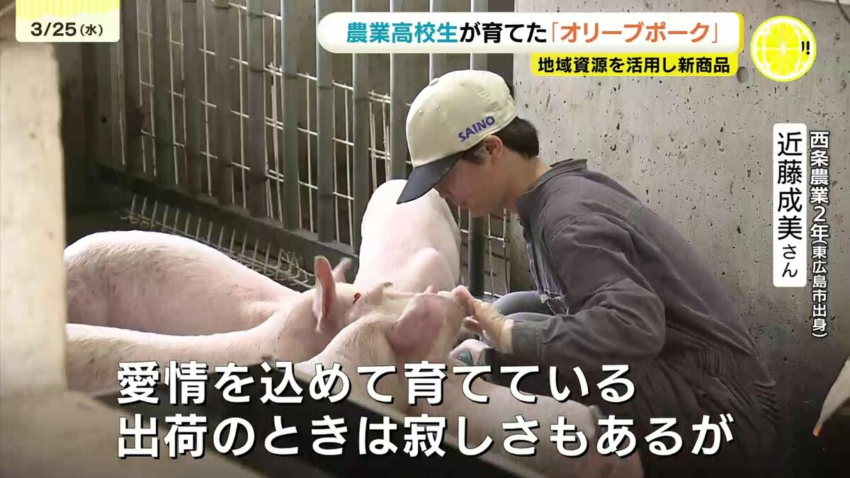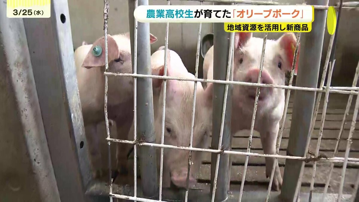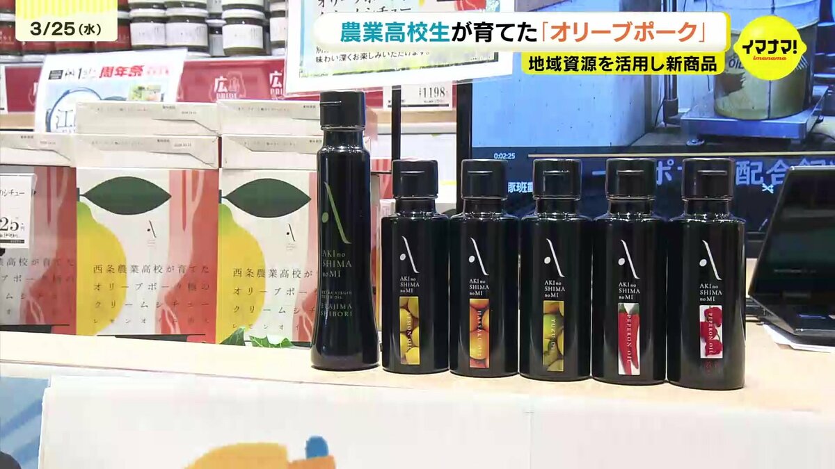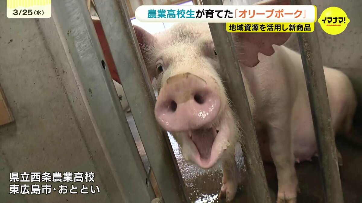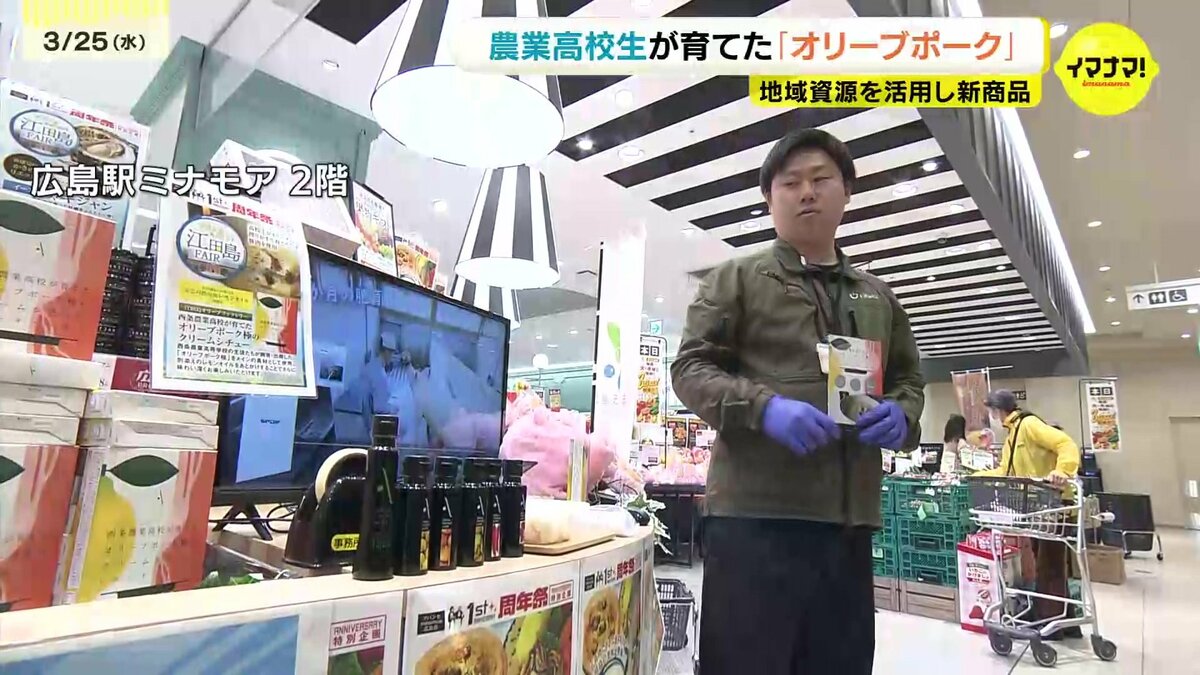 開業から1年を迎えた広島駅ミナモアで、農業高校の生徒たちが育てた豚肉が「ある形」でお披露目されました。江田島の名産・オリーブの搾りかすを活用した新商品です。
