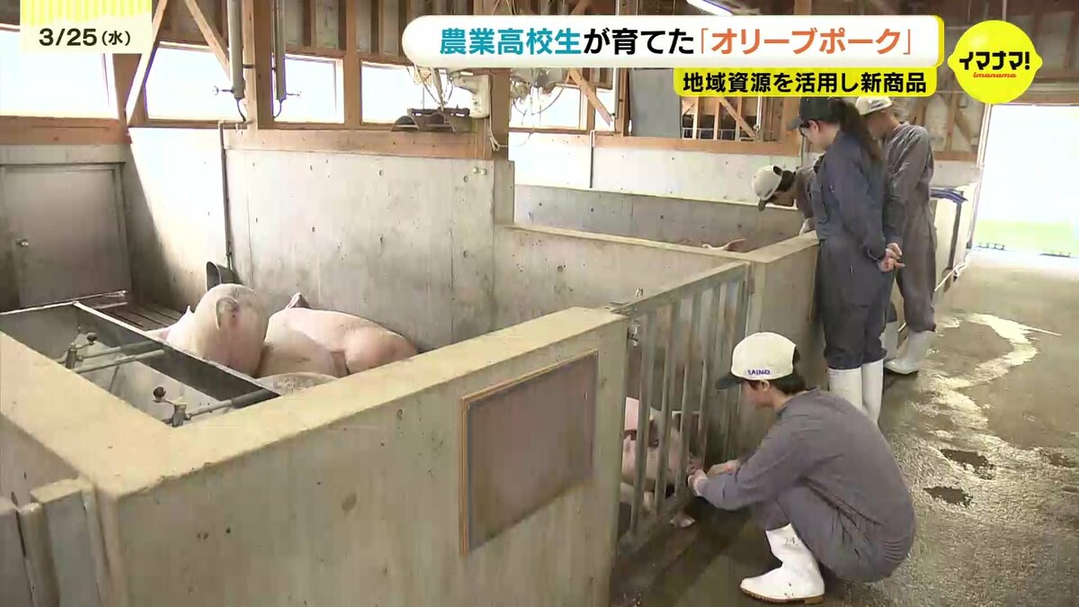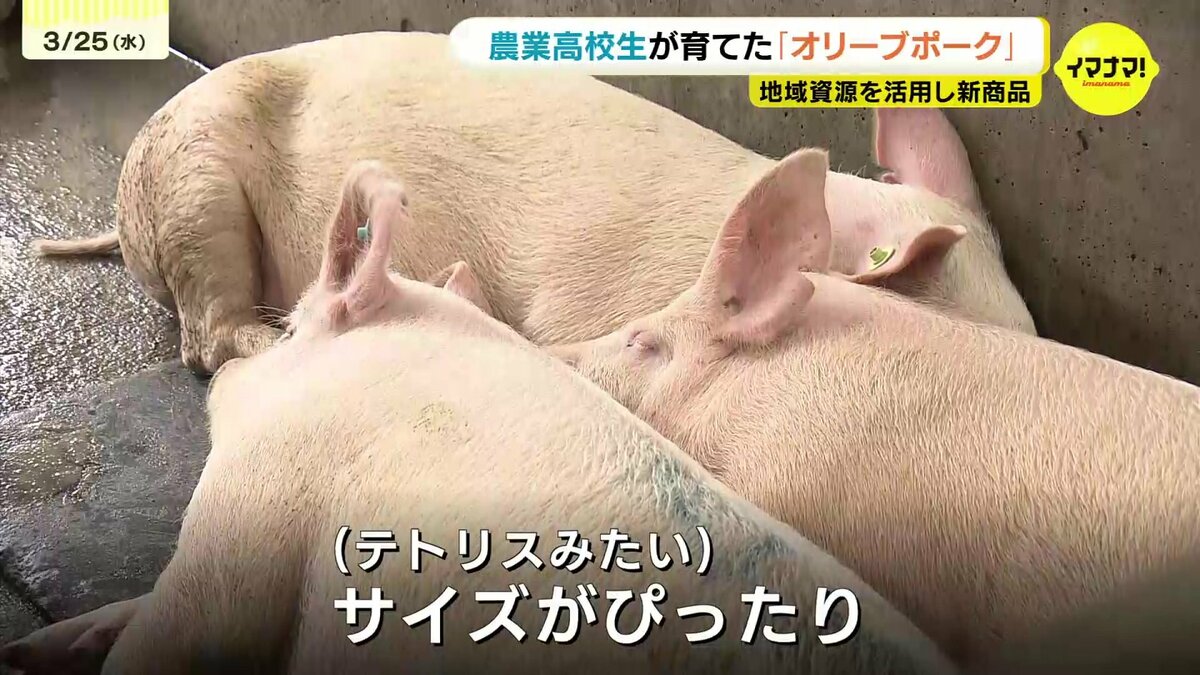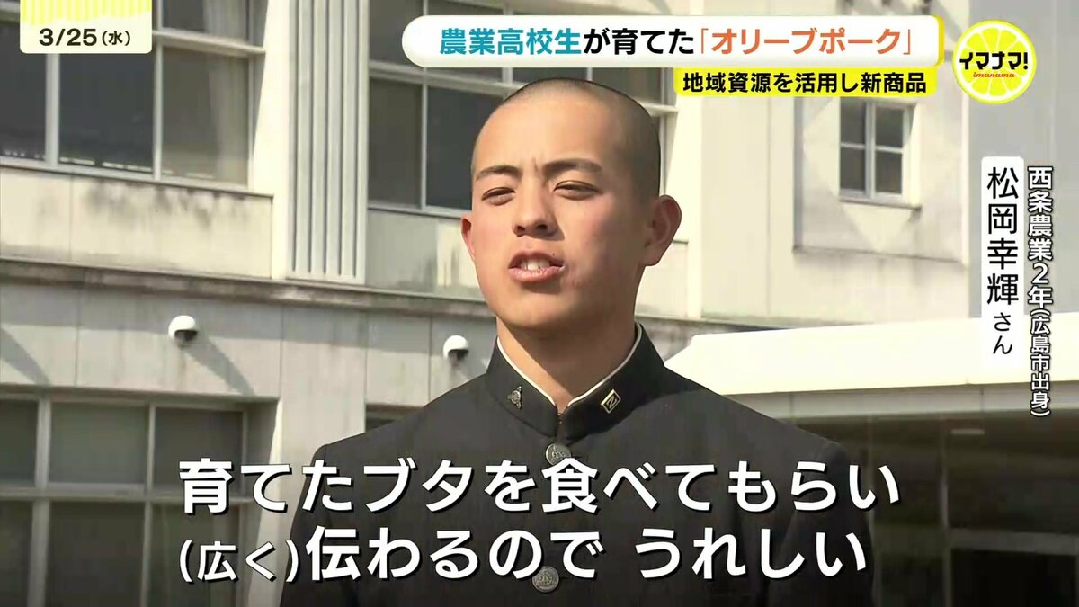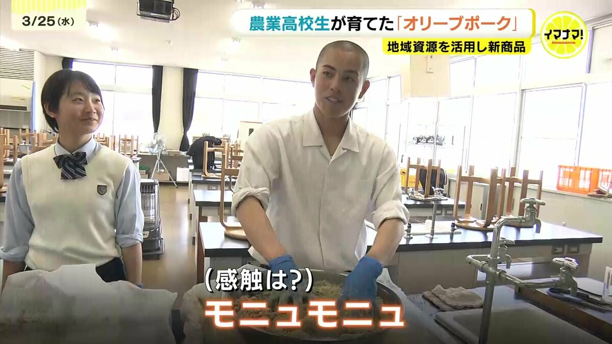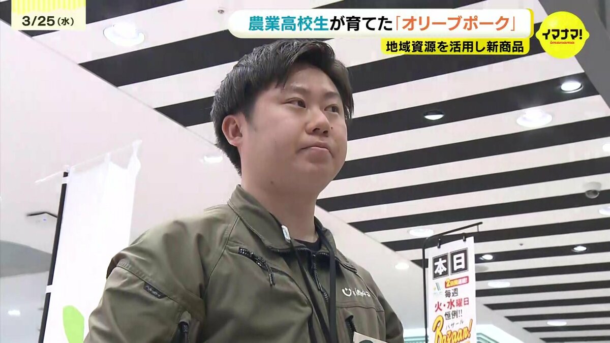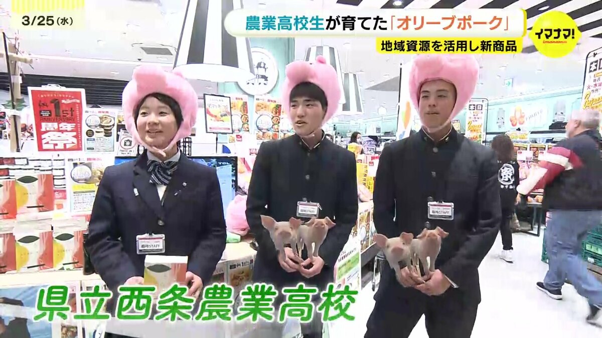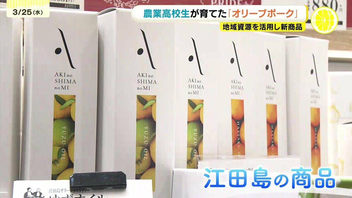 開業から1年を迎えた広島駅ミナモアで、農業高校の生徒たちが育てた豚肉が「ある形」でお披露目されました。江田島の名産・オリーブの搾りかすを活用した新商品です。