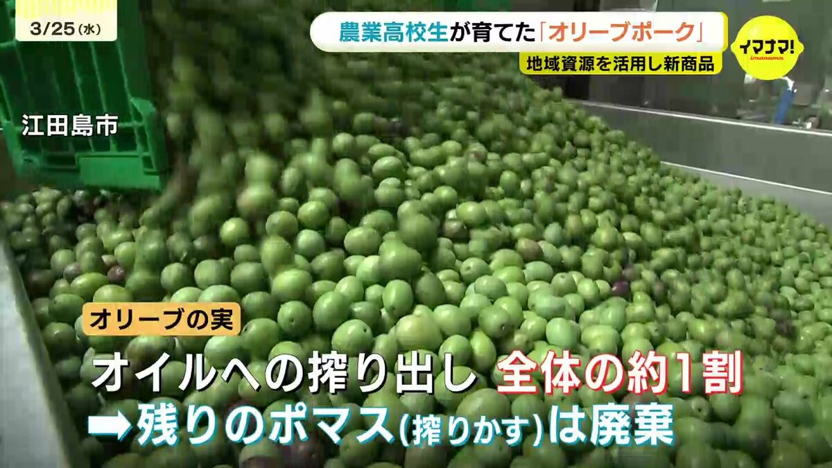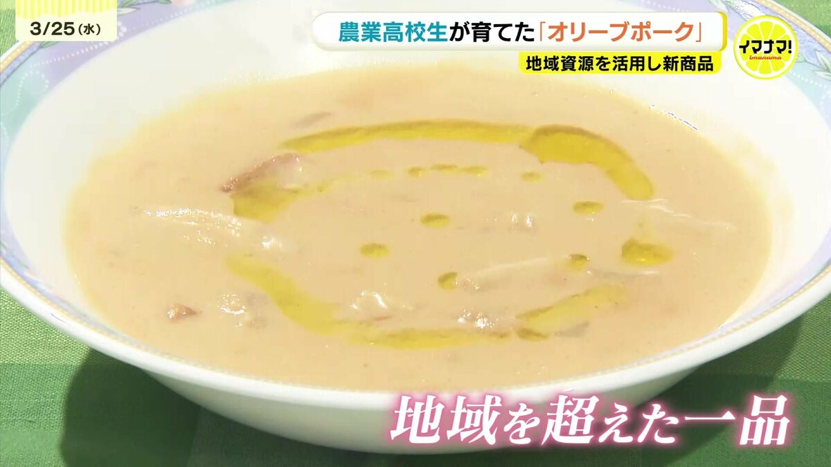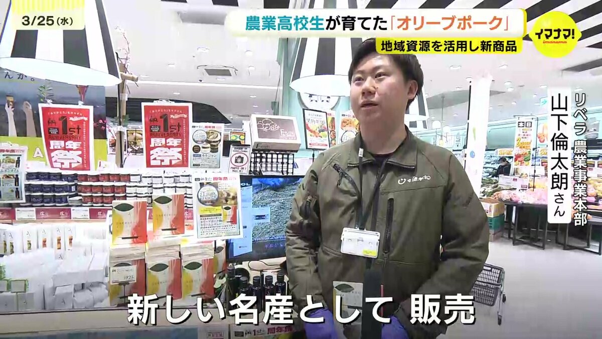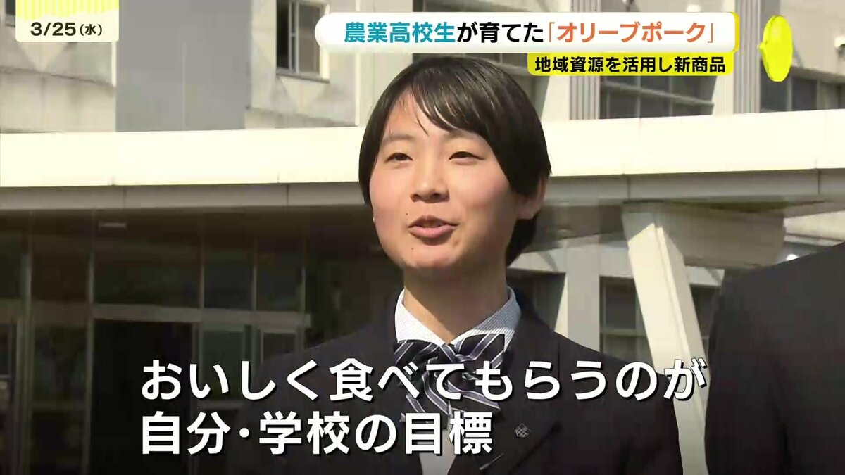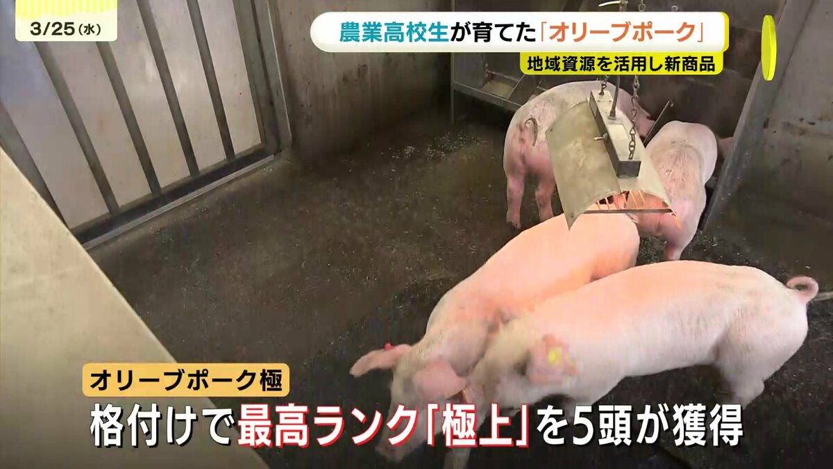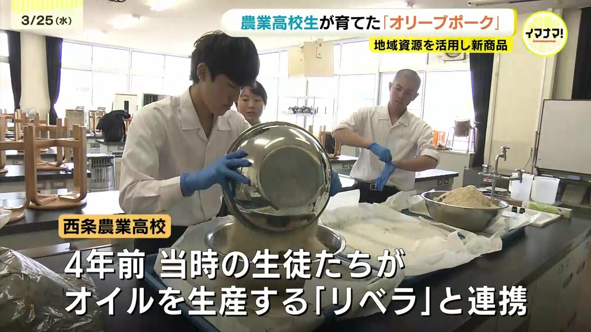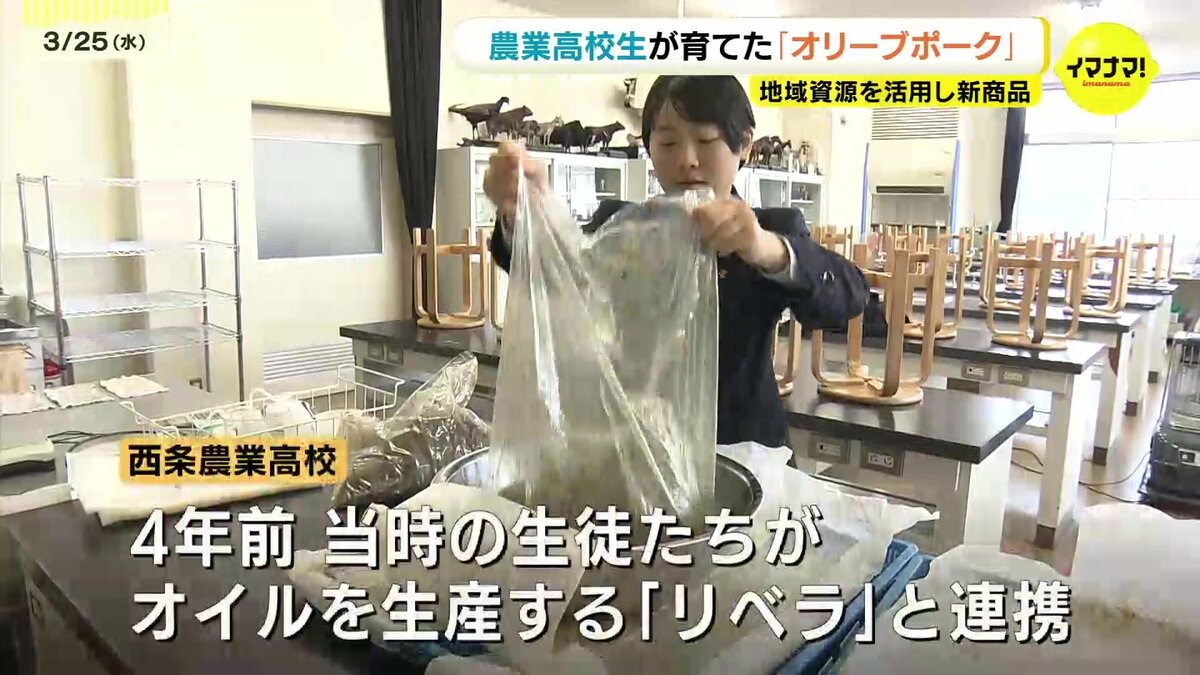 開業から1年を迎えた広島駅ミナモアで、農業高校の生徒たちが育てた豚肉が「ある形」でお披露目されました。江田島の名産・オリーブの搾りかすを活用した新商品です。