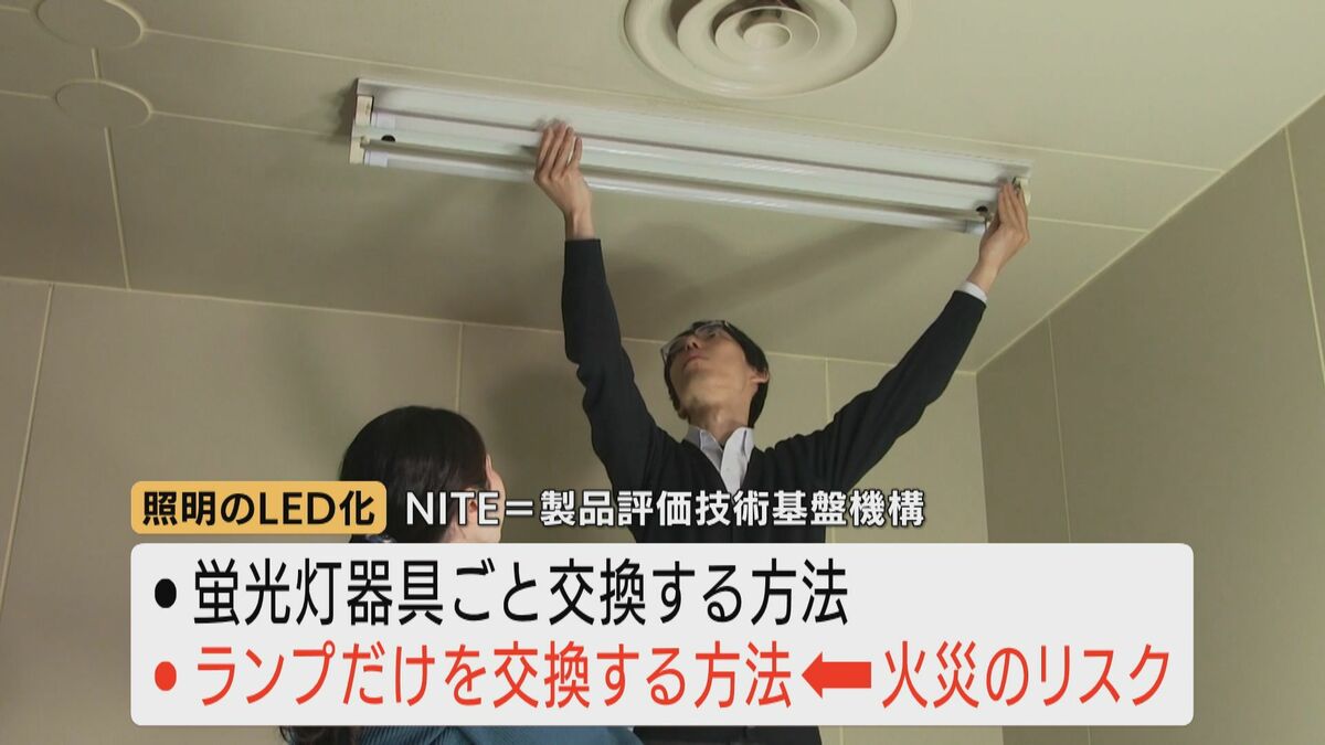 NITE=製品評価技術基盤機構によりますと、照明のLED化には、「蛍光灯器具ごと交換する方法」と「ランプだけを交換する方法」の2種類がありますが、ランプだけを交換して古い器具を使い続けた場合、火災のリスクがあります。