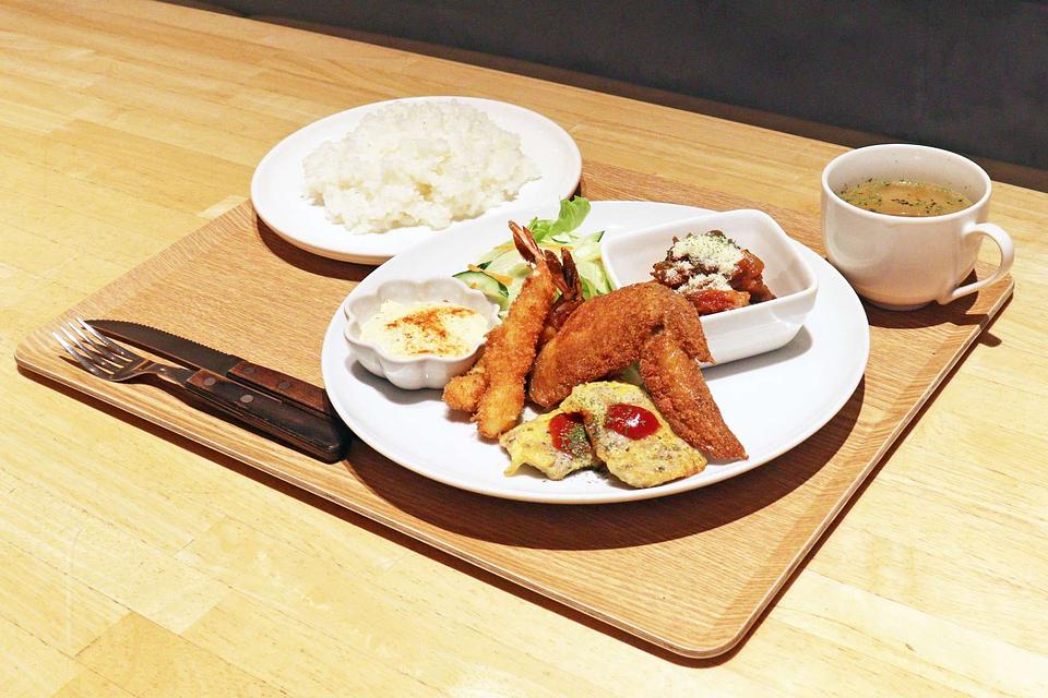 「Keiスペシャルセット(1,800円)」も好評。エビフライを含む4種類の日替わりおかず盛り合わせ、サラダ、ライス、スープがセット。