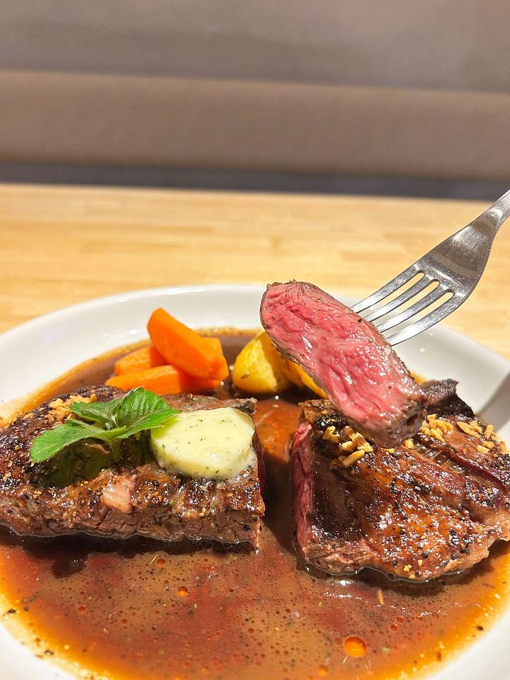 絶妙な火加減で、焼き上げられており、肉本来の旨みをダイレクトに感じられる「レア」で提供している。