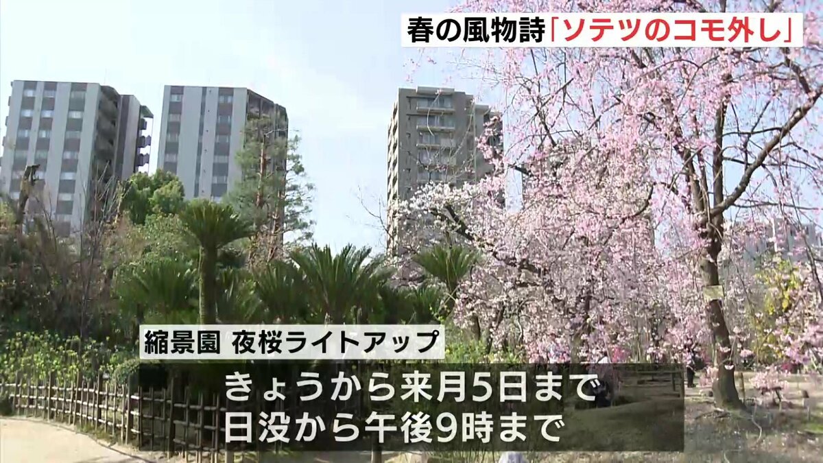 縮景園では、27日から「夜桜ライトアップ」が始まります。