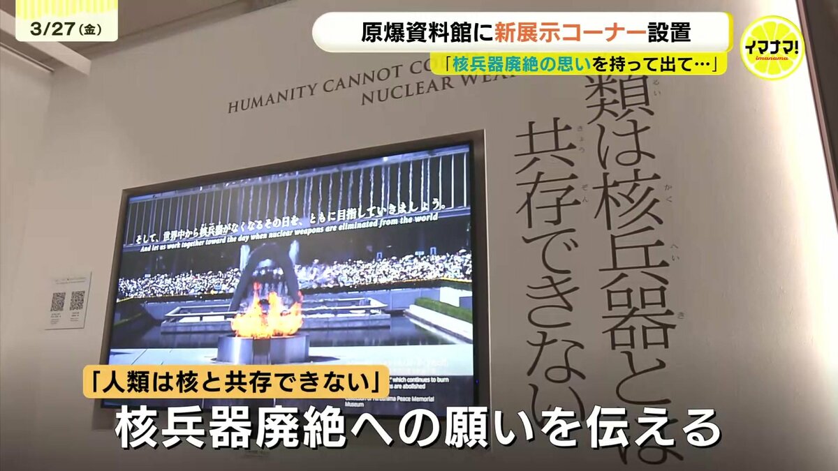 広島市の平和公園にある原爆資料館に、動画やスライドショーを用いて核兵器廃絶を訴える、新たな展示コーナーがオープンします。