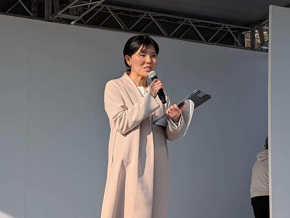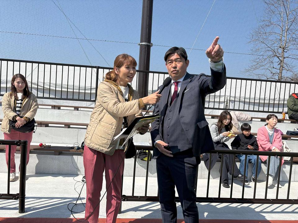 廿日市市 松本太郎市長は「このリニューアルした多目的広場を、今日のようなたくさんの皆さんが集まっていただけるイベントなどに、積極的に活用していきたい」と語り、「けん玉発祥の地のプライドにかけて、ぜひ記録達成したい」と力を込めました。
