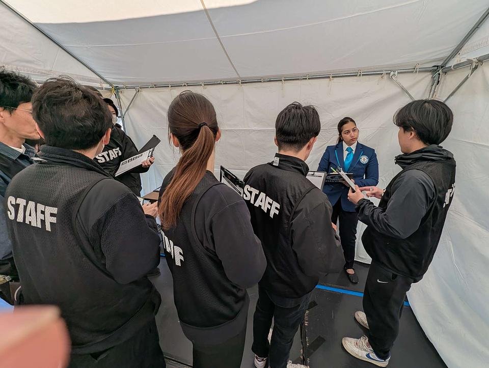 集計作業は、厳正でした。挑戦者25人に対して、1人の認定員が、成功した人数を数え、集計するテントに報告に行きます。テントでは、トラバリー・アイニさんが、チャレンジの際のチェックで、おかしな点はないかひとつひとつ確認。数字を足し合わせていきました。