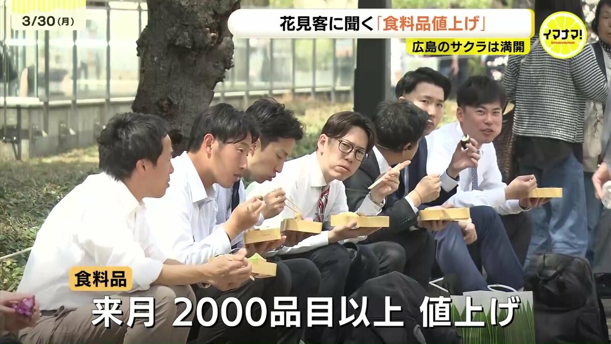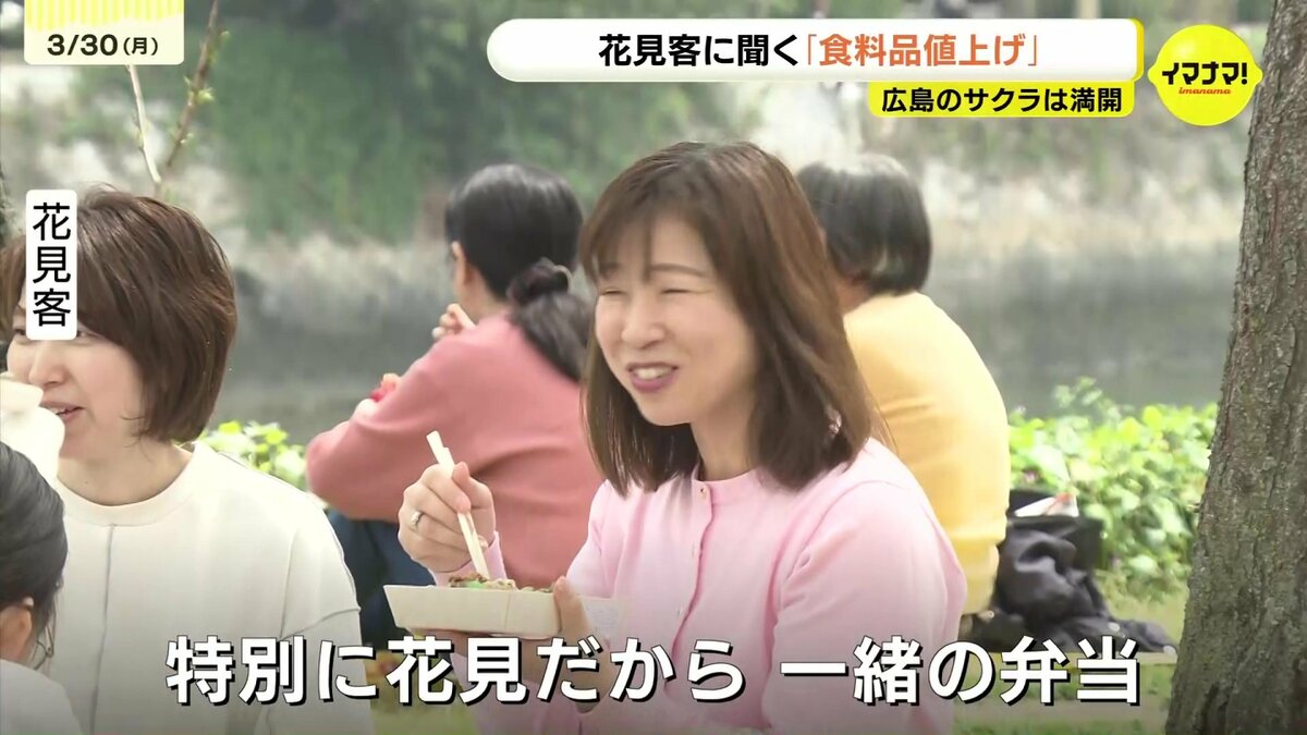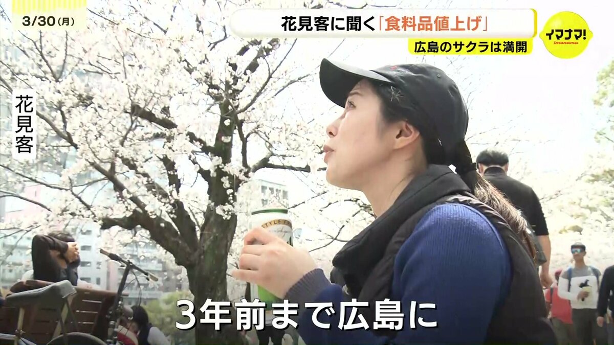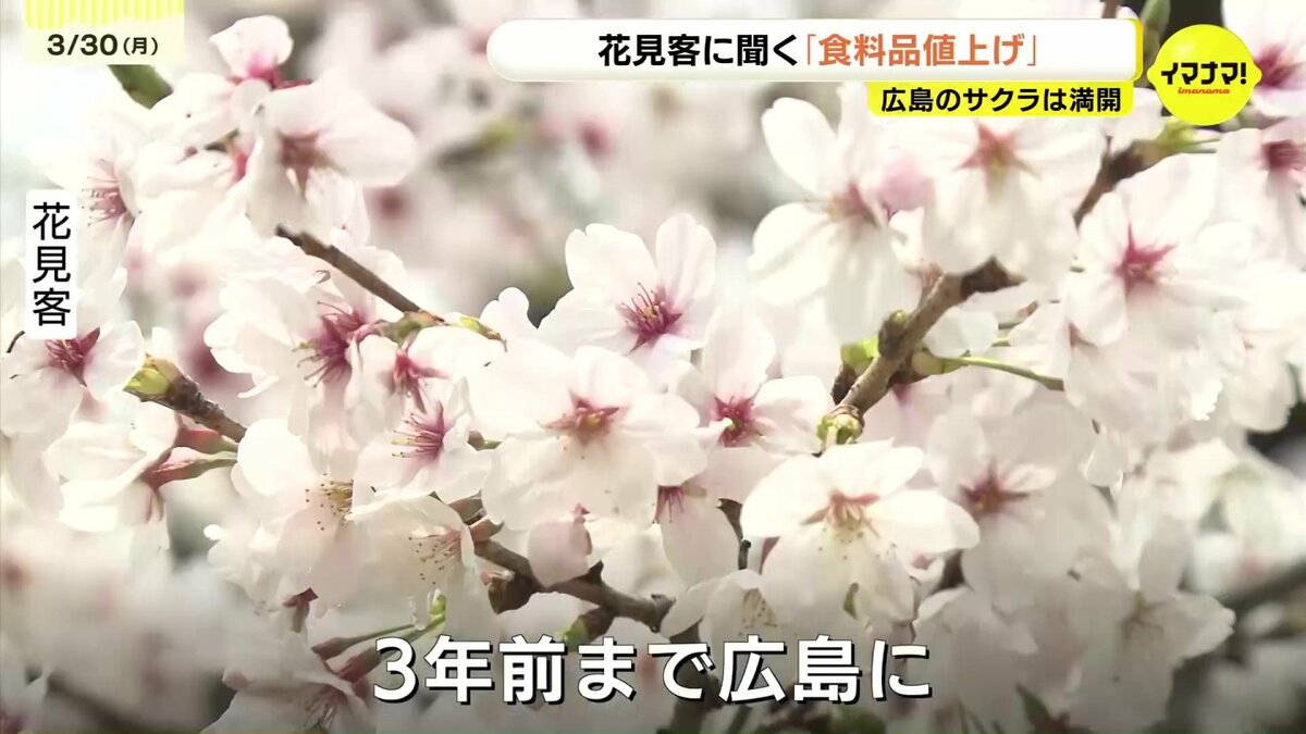 広島のサクラの標本木が平年より4日早く満開を迎えました。花見客に、4月1日以降に控える「食料品の値上げ」についても聞きました。