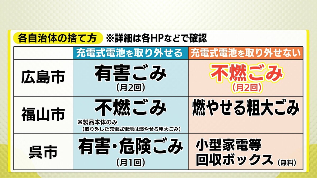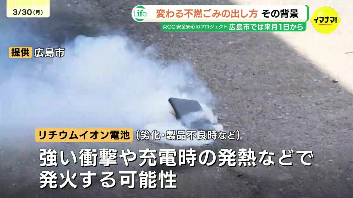広島市はこうした火災事故を防ぐため、4月から「不燃ごみ」のルールを変更します。