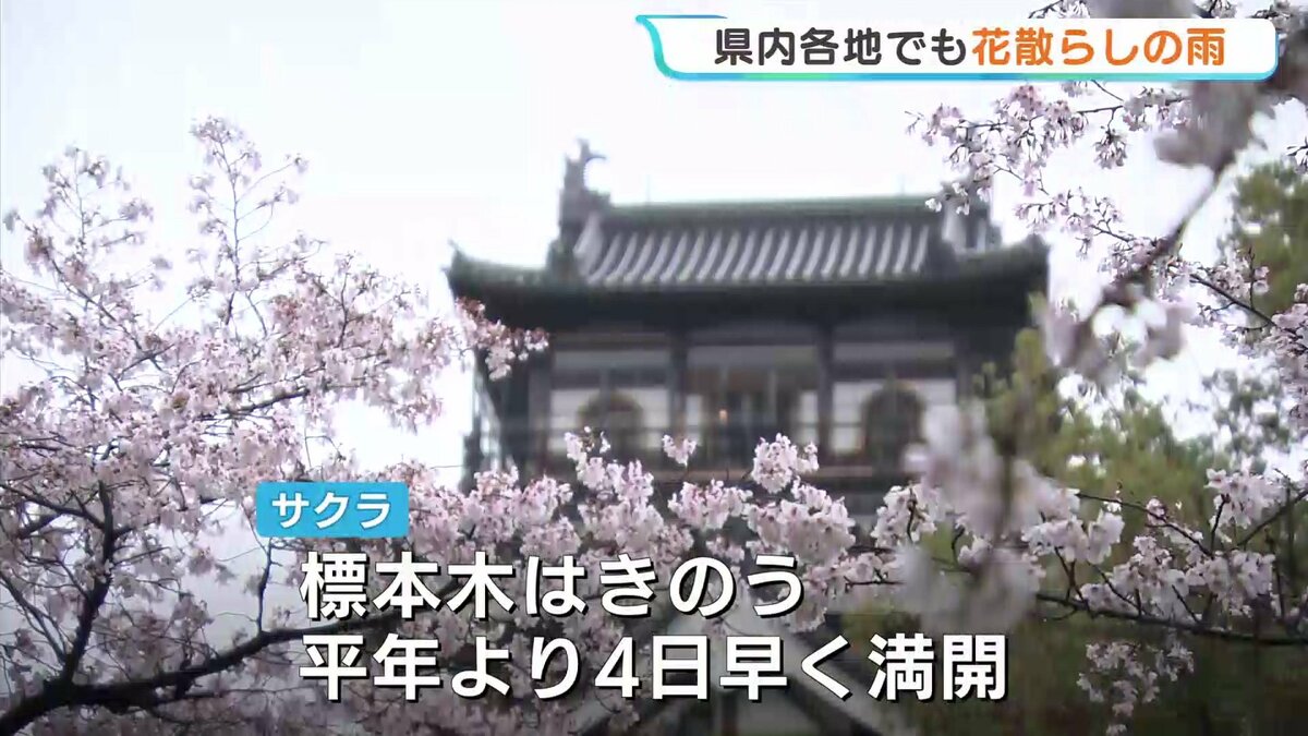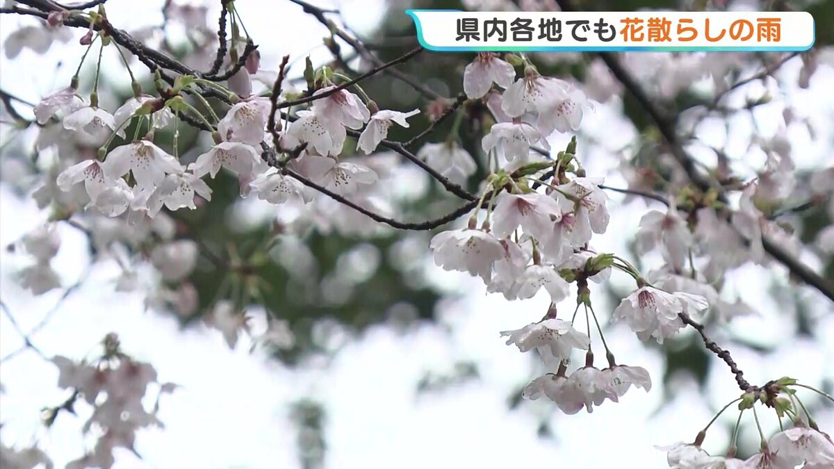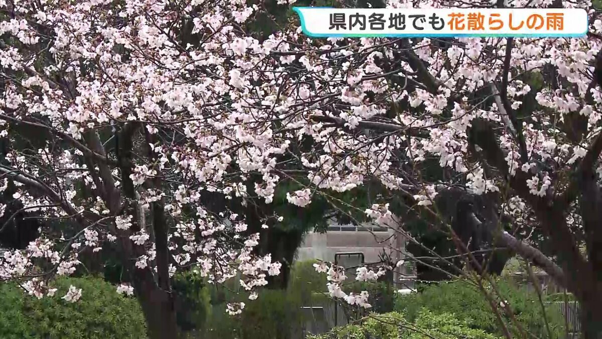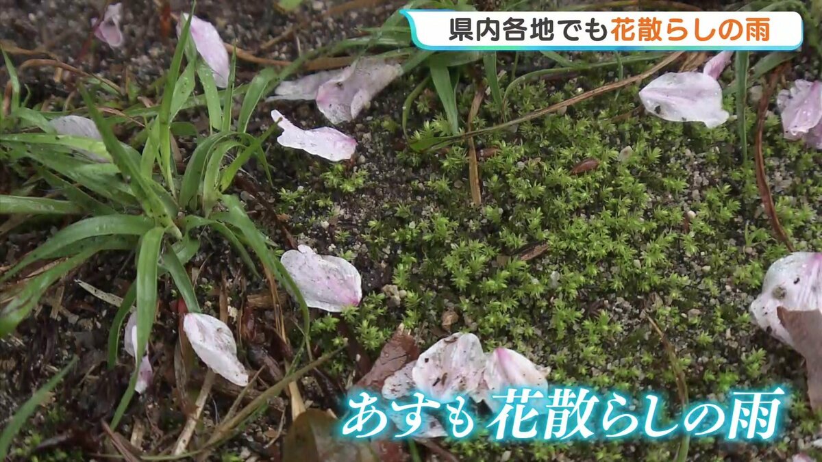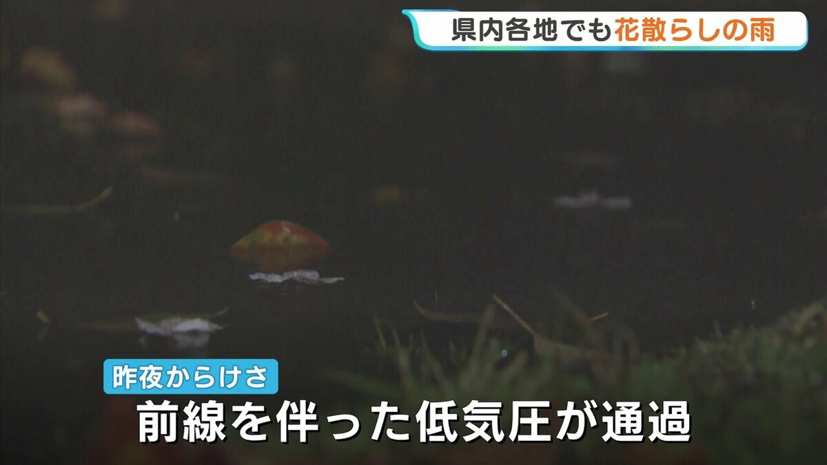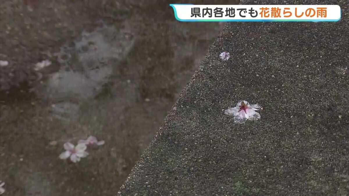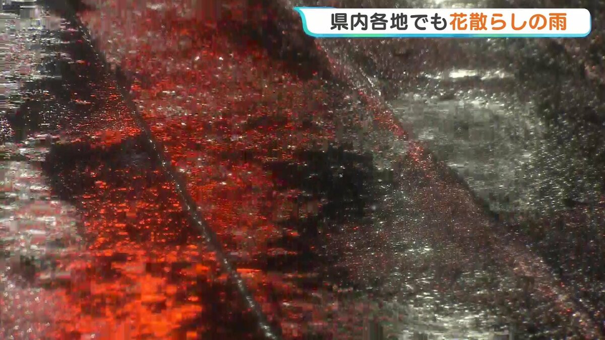 「午前10時です。雨の降り方がまた一段と強くなってきました。きのう満開を迎えたサクラも、かなり散ってしまっています」