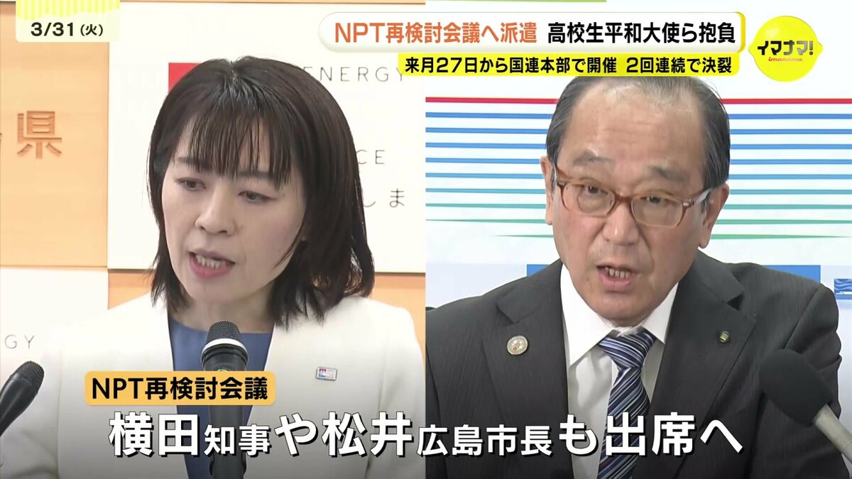 2人は現地で若者と交流するほか、会議でのスピーチなどを計画しているということです。再検討会議には、横田知事や広島市の松井市長も出席する方針です。