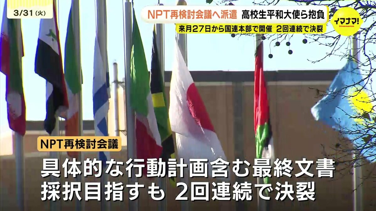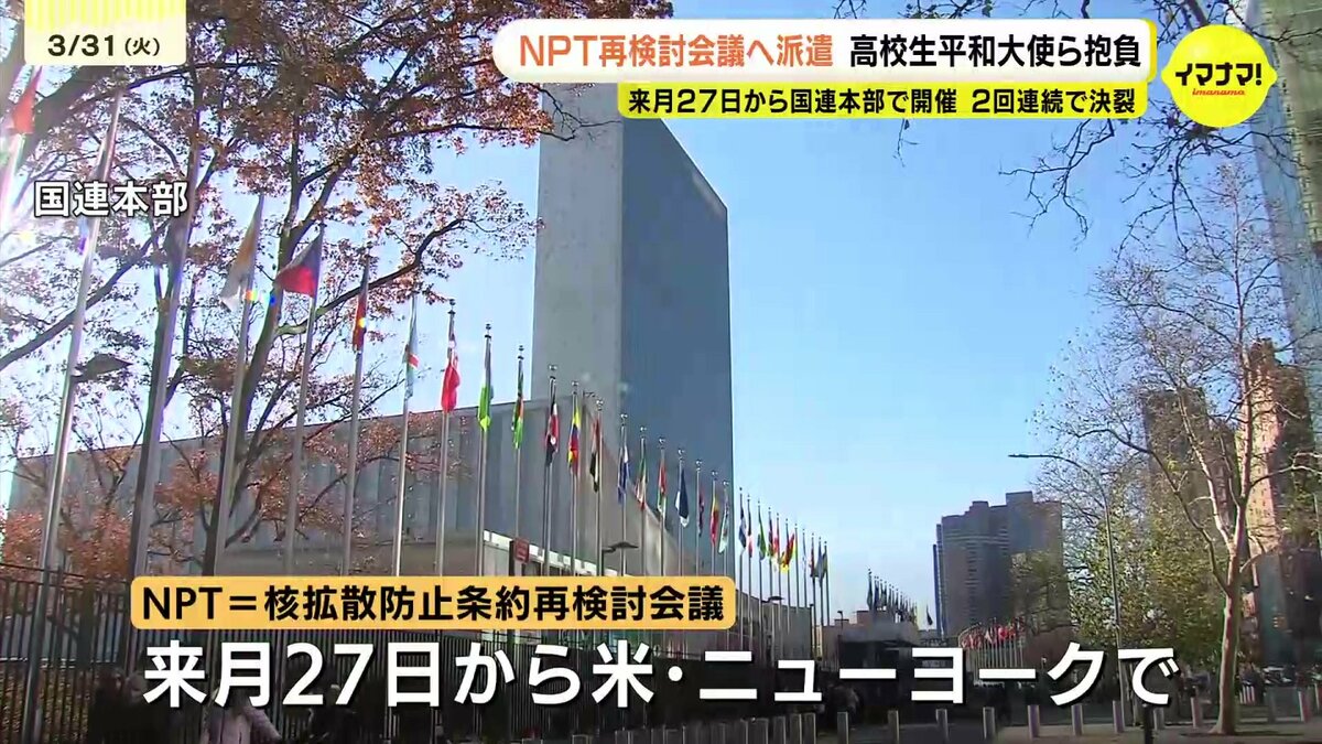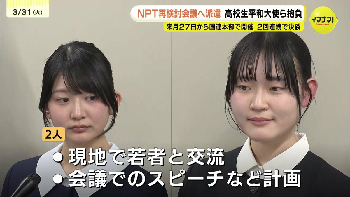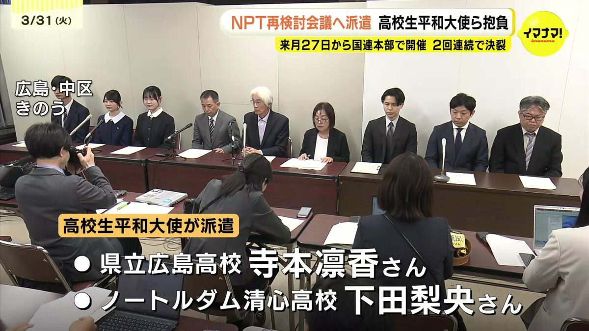 今回の会議に合わせ、広島から高校生平和大使で、県立広島高校の新3年生寺本凛香さんと、ノートルダム清心高校の新3年生下田梨央さんの2人が派遣されます。