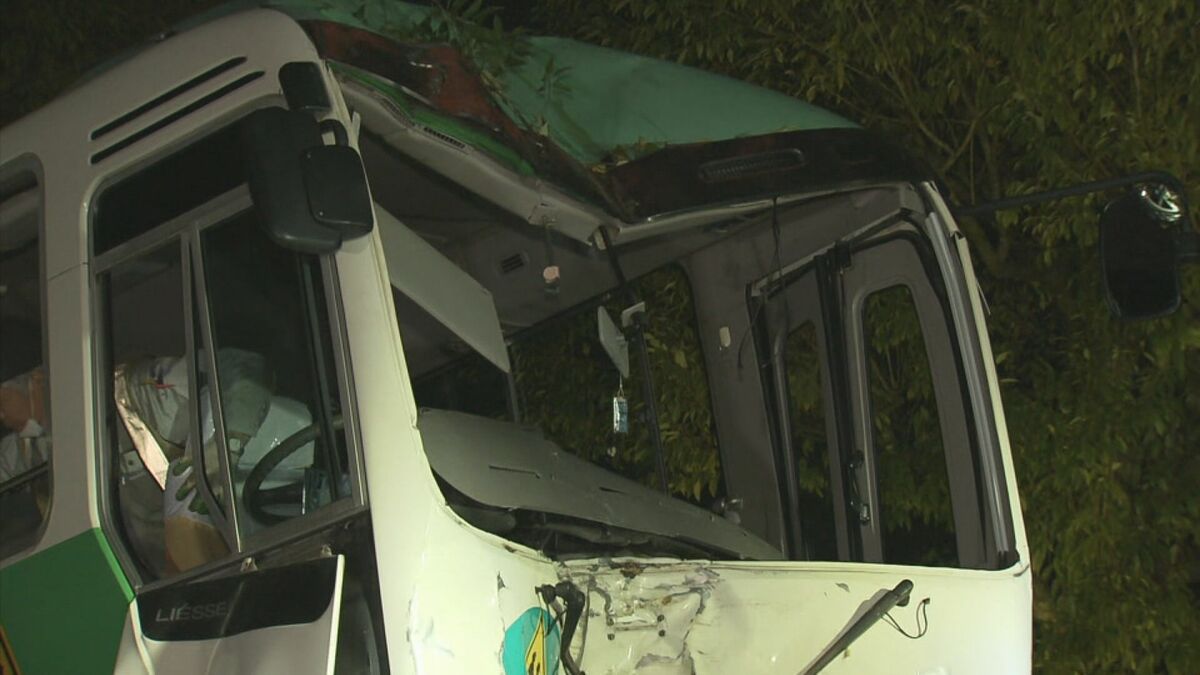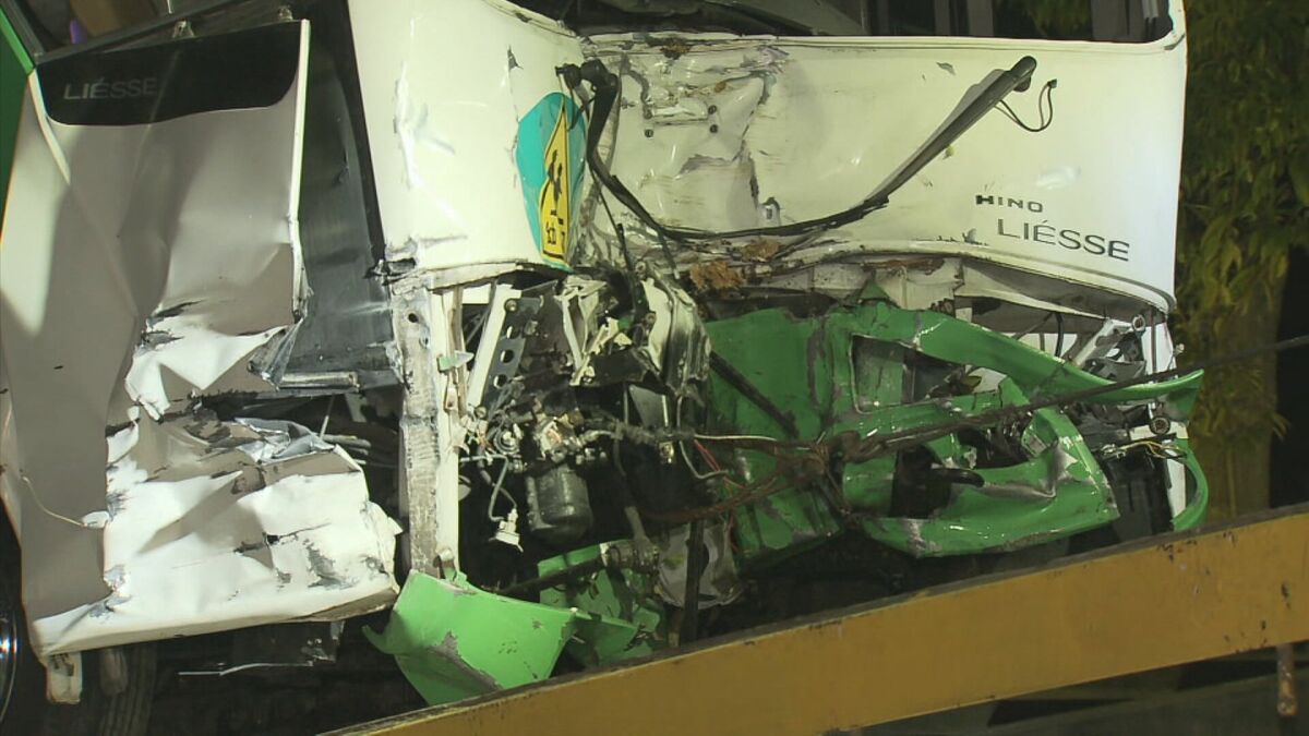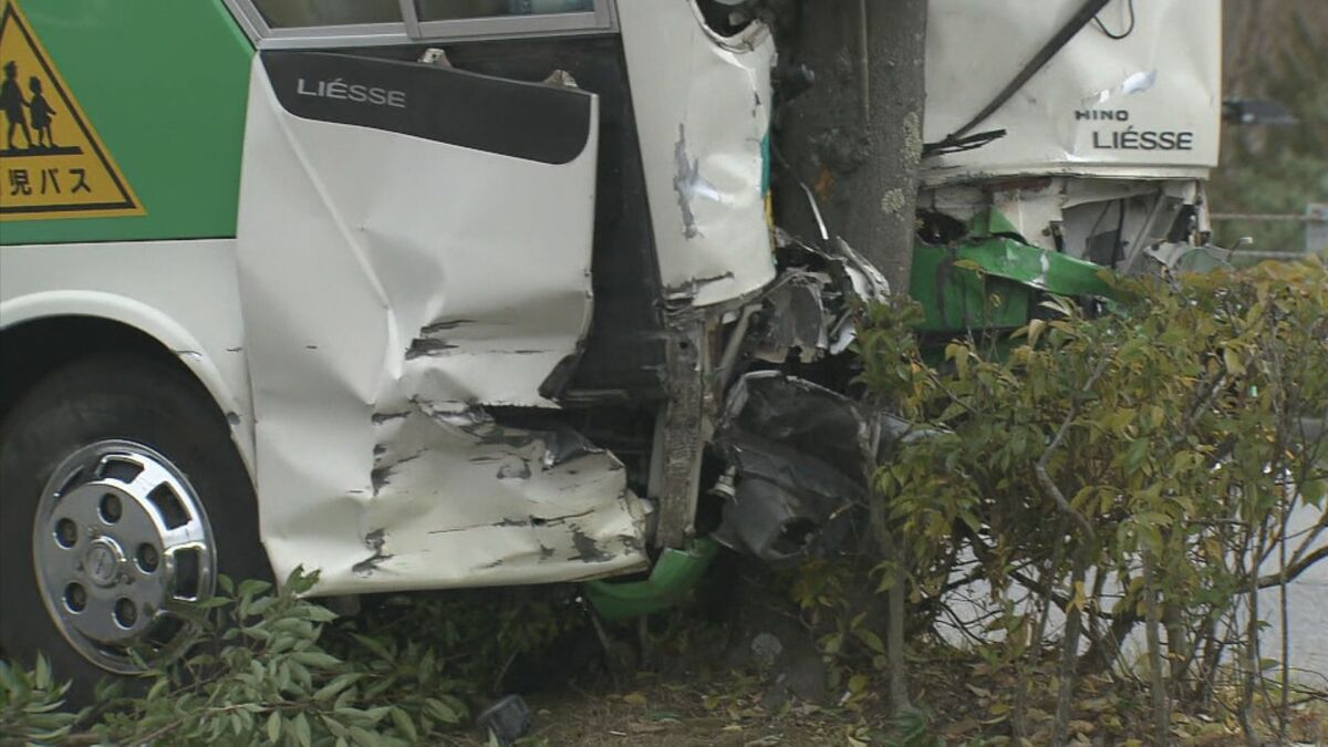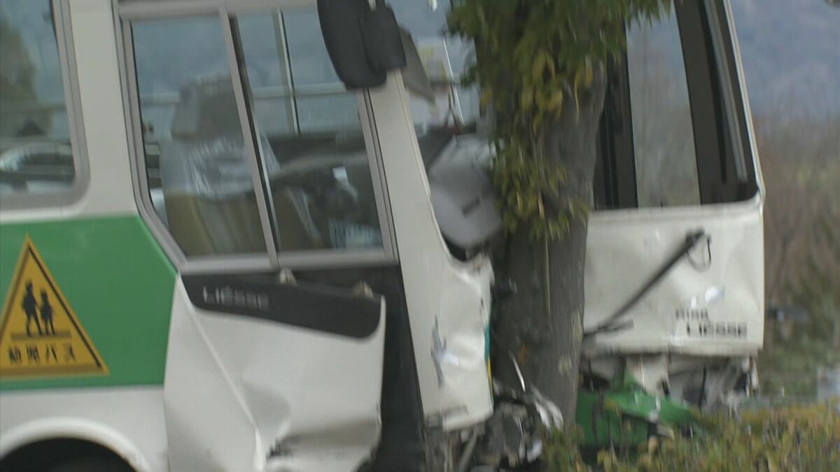 【画像を見る】事故を起こし前方が大破した送迎バス(2023年12月)