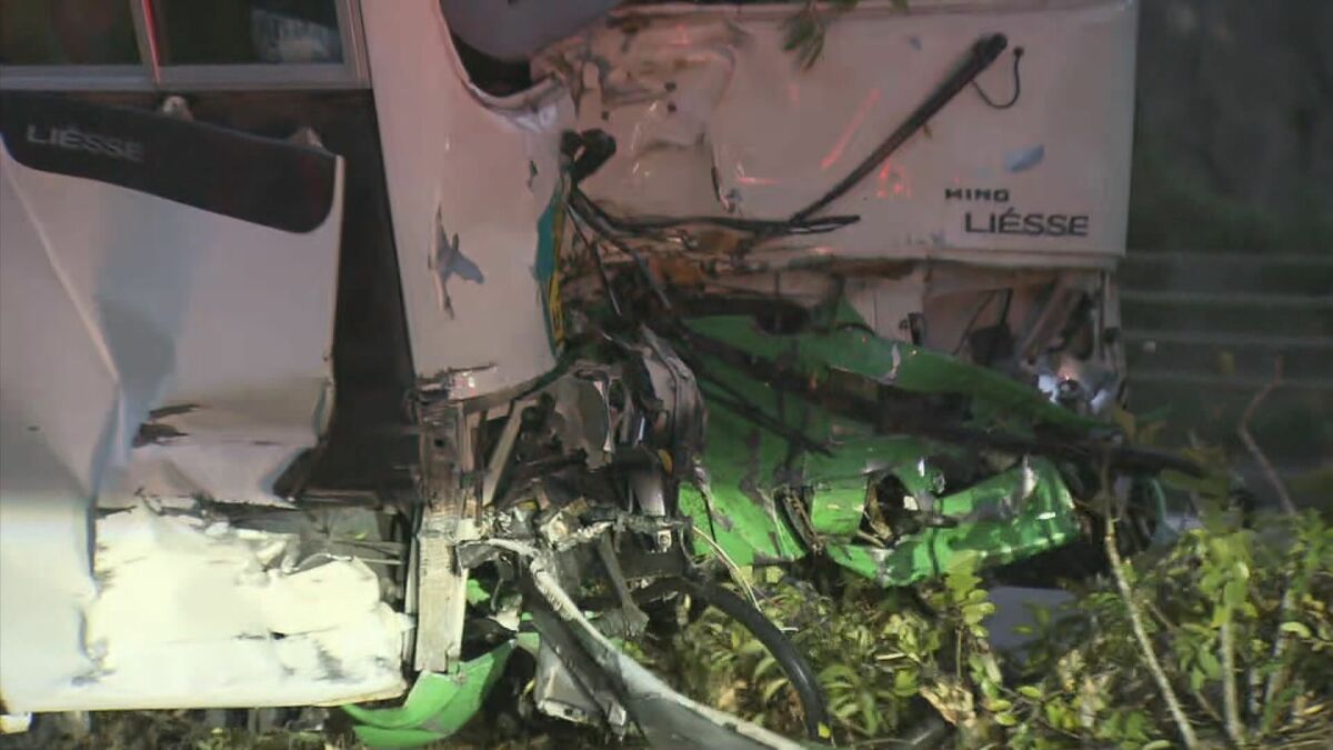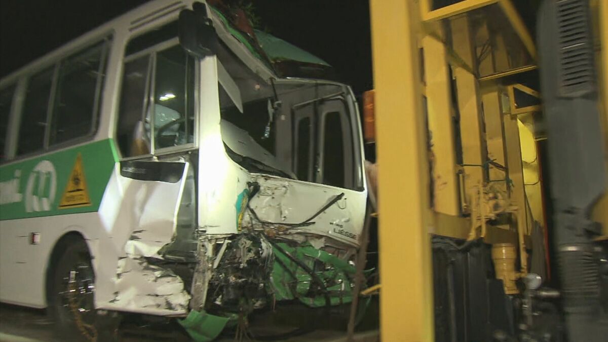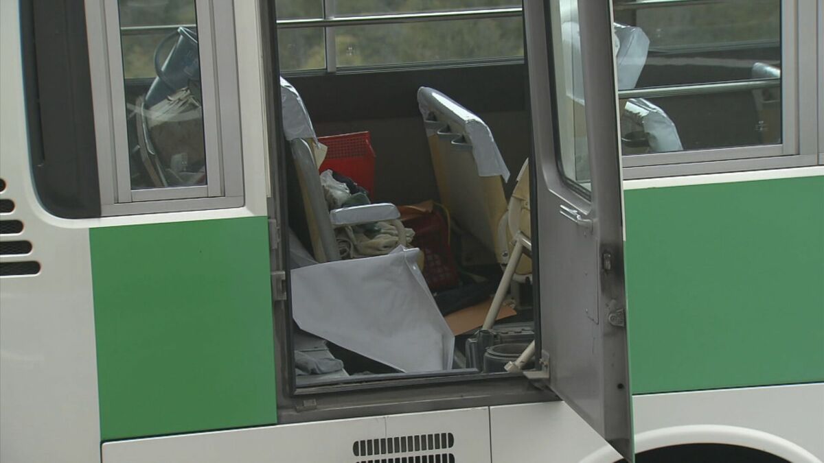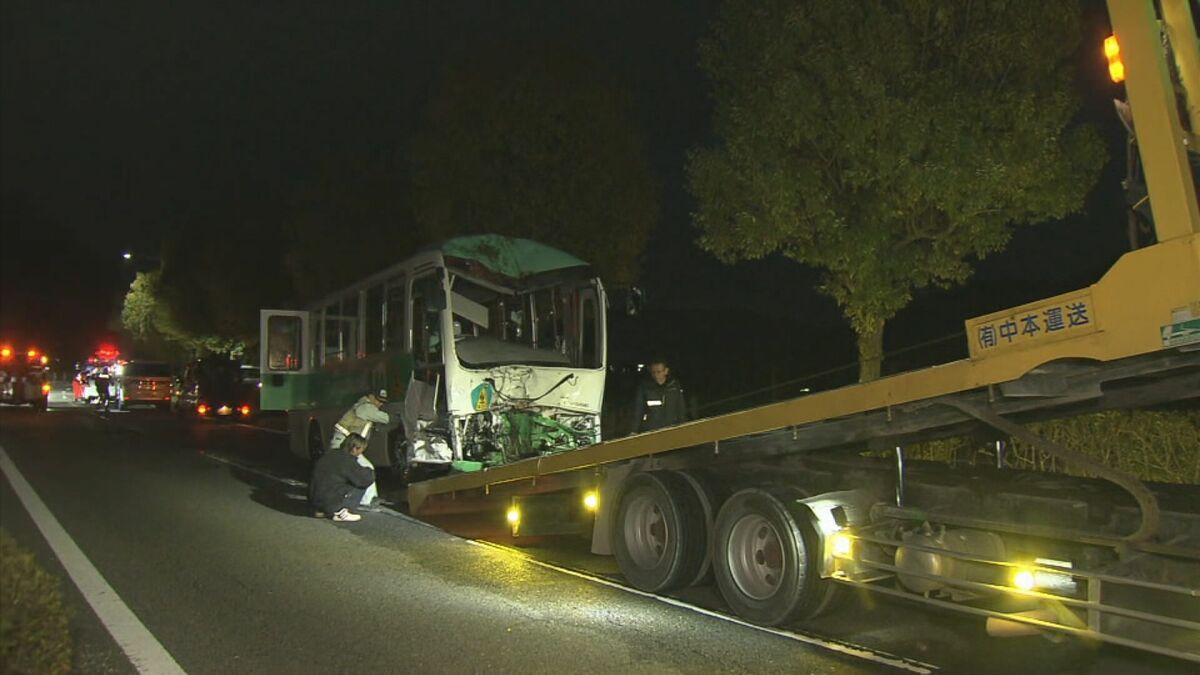 【画像を見る】事故を起こし前方が大破した送迎バス(2023年12月)