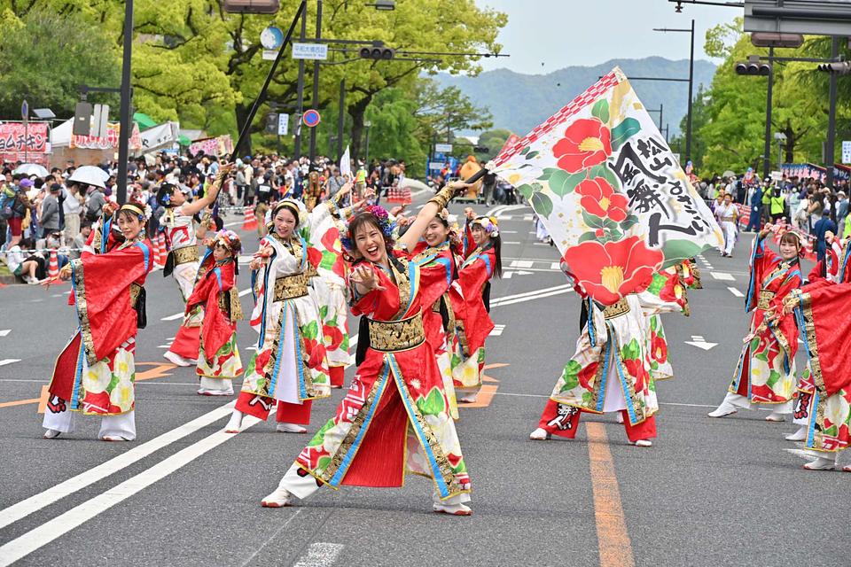 8か所設け、よさこいやダンス、バトンなど、多彩な団体が躍動