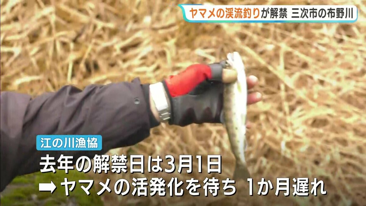 小判型の模様があり、美しい姿から「渓流の女王」とも呼ばれるヤマメ。地元の江の川漁協によりますと、去年の解禁日は3月1日でしたが、ことしは川の水温が上がり、ヤマメの動きが活発になるのを待とうと、解禁を1か月遅らせたそうです。