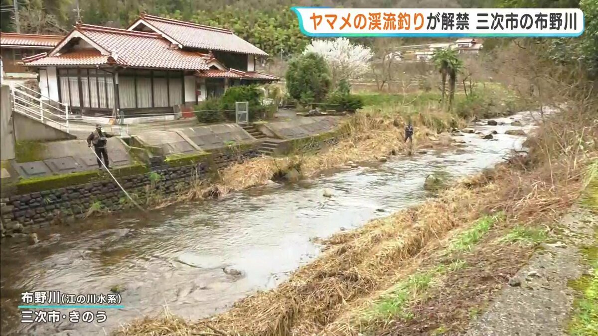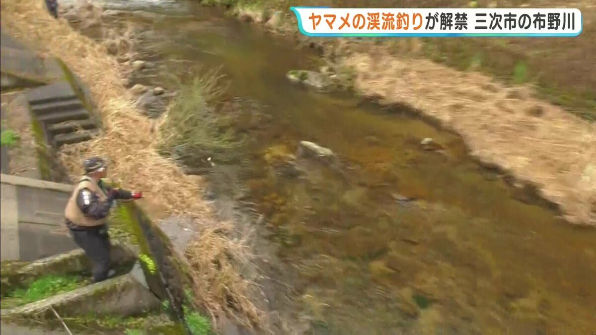 広島県三次市の川でヤマメの渓流釣りが1日解禁され、愛好家たちが早速釣りを楽しんでいます。