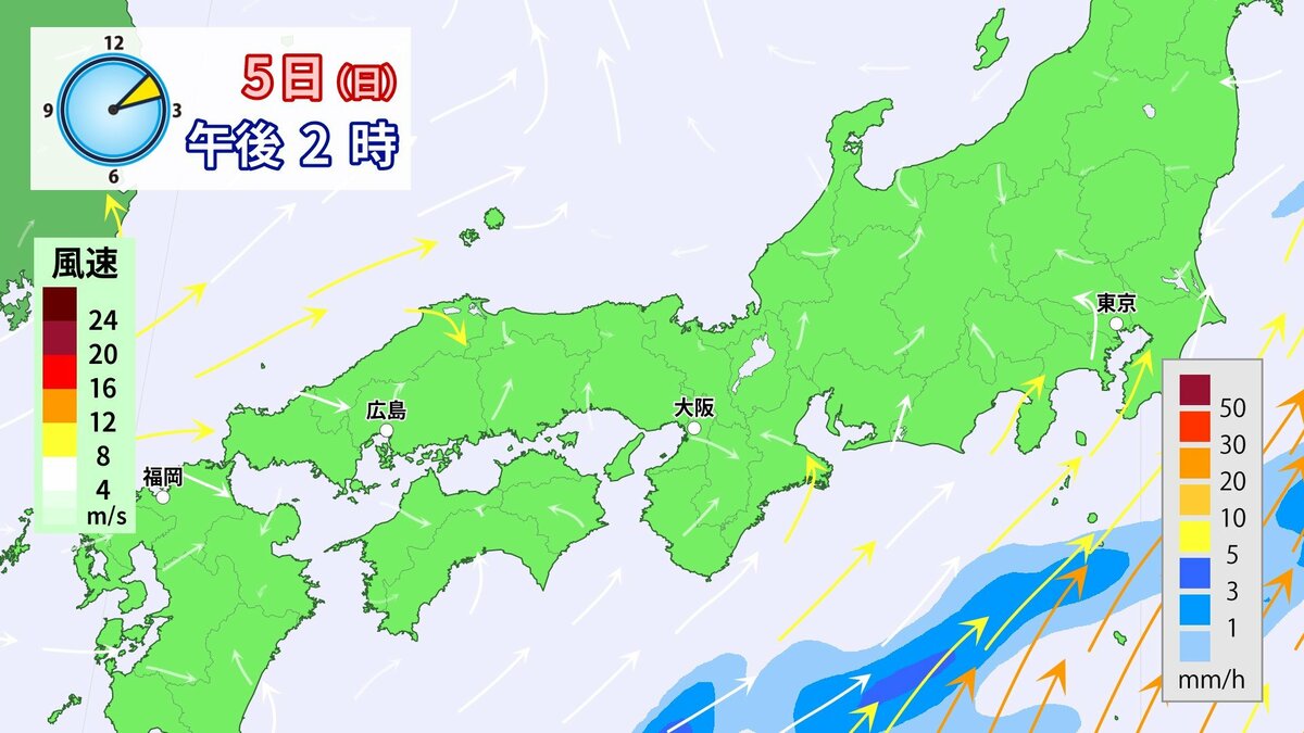 3日(金)は高気圧に覆われ、晴れるところが多いですが、新年度最初の週末4日(土)から5日(日)にかけては、再び前線を伴った低気圧が西日本から東へ進むため、広く崩れるでしょう。雨脚や風が強まるタイミングもある見込みです。見頃となっているサクラを散らす雨となるかもしれません。