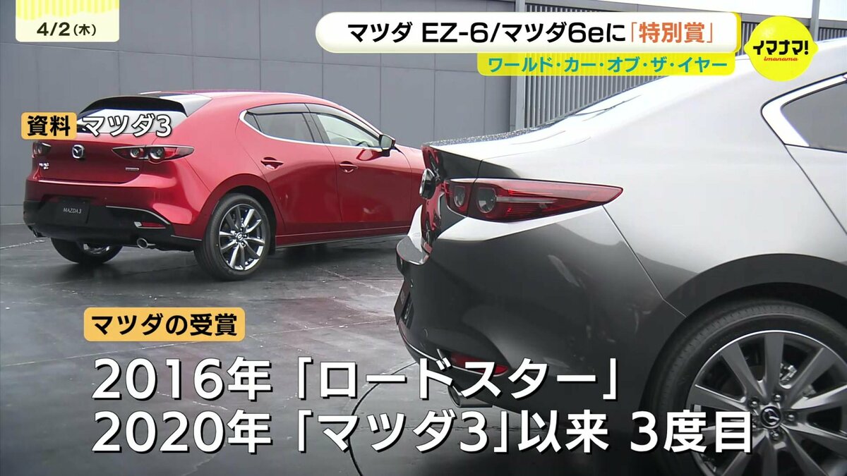 世界の自動車ジャーナリストが、この1年間を代表する車を選ぶ「ワールド・カー・オブ・ザ・イヤー」。このうち最もデザインが優れた車に贈られる特別賞に「マツダ EZ-6」、「マツダ6e」が選ばれました。