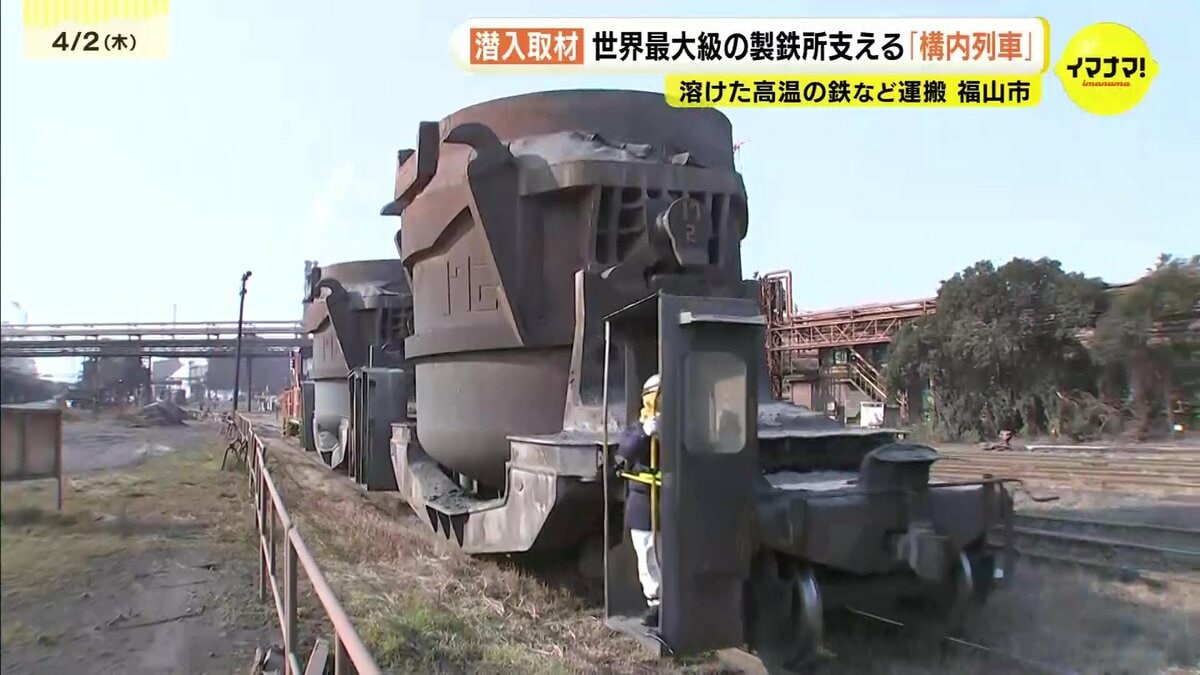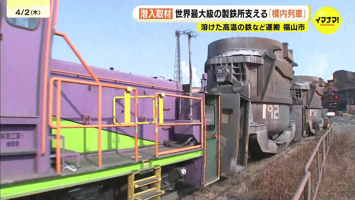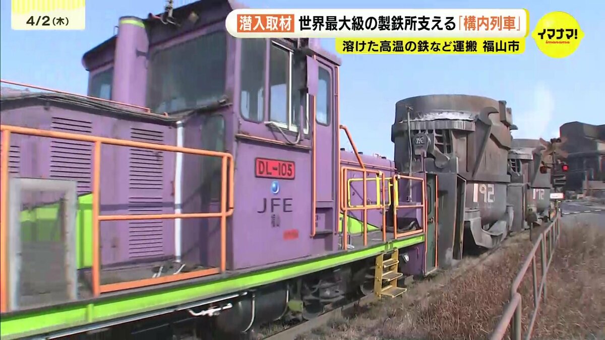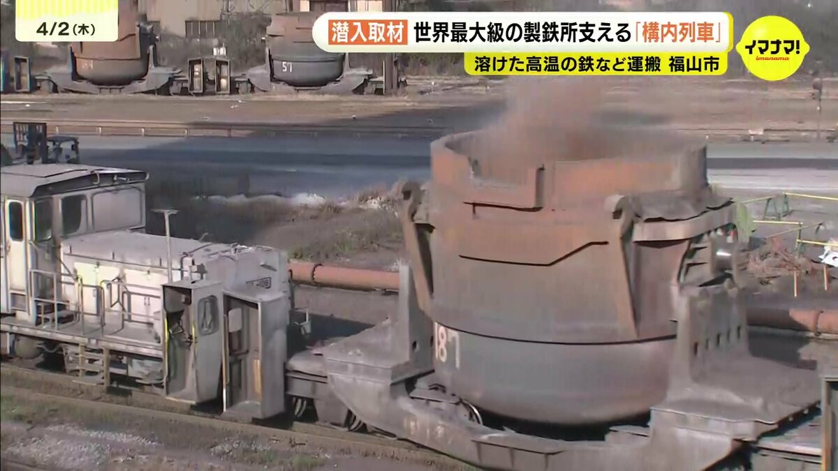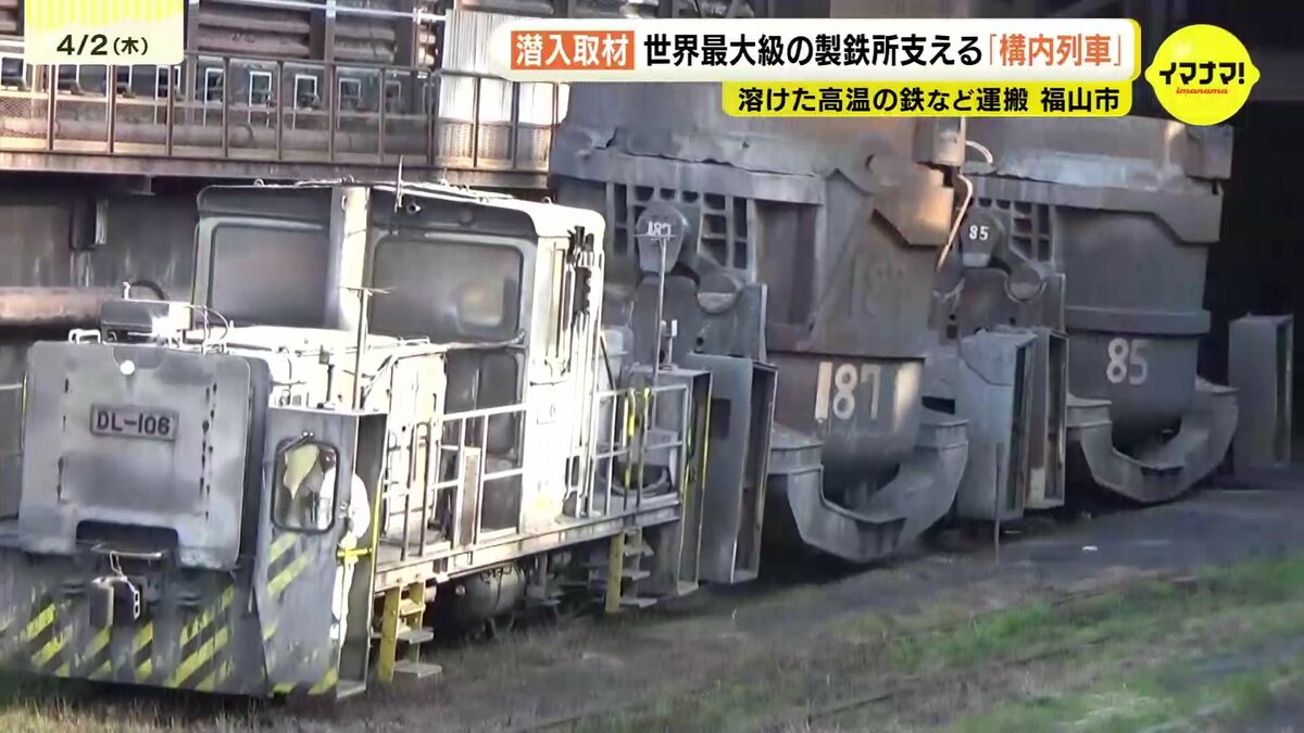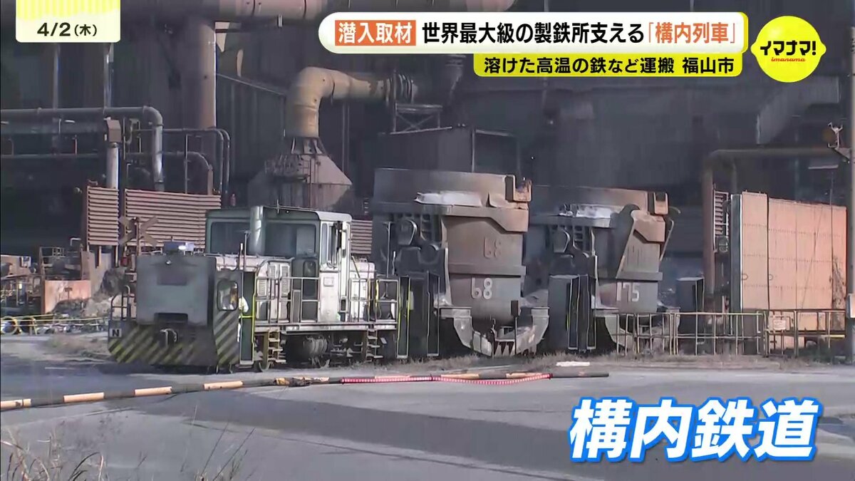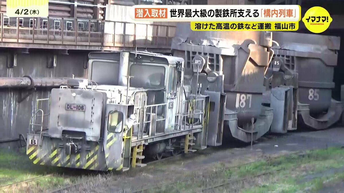 広島が誇る世界最大級の製鉄所への潜入取材です。鉄道ファンの方でもこの列車は見たことがないのではないでしょうか。溶けた高温の鉄などを運ぶ「構内鉄道」です。
