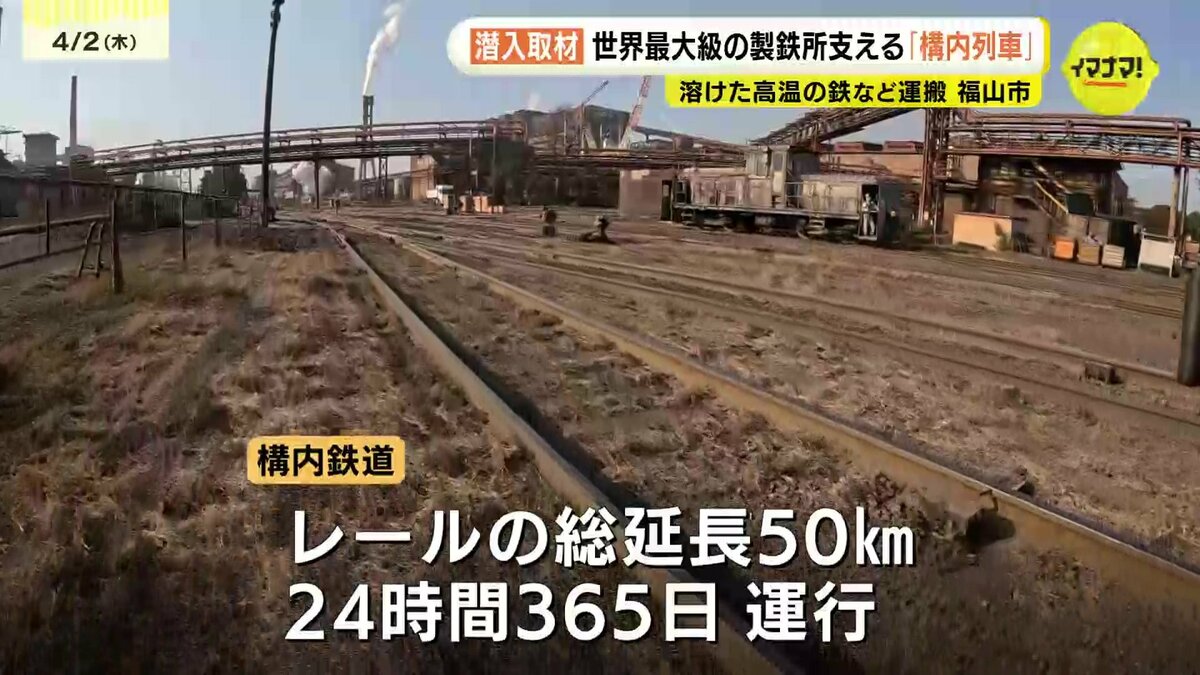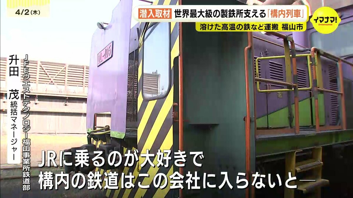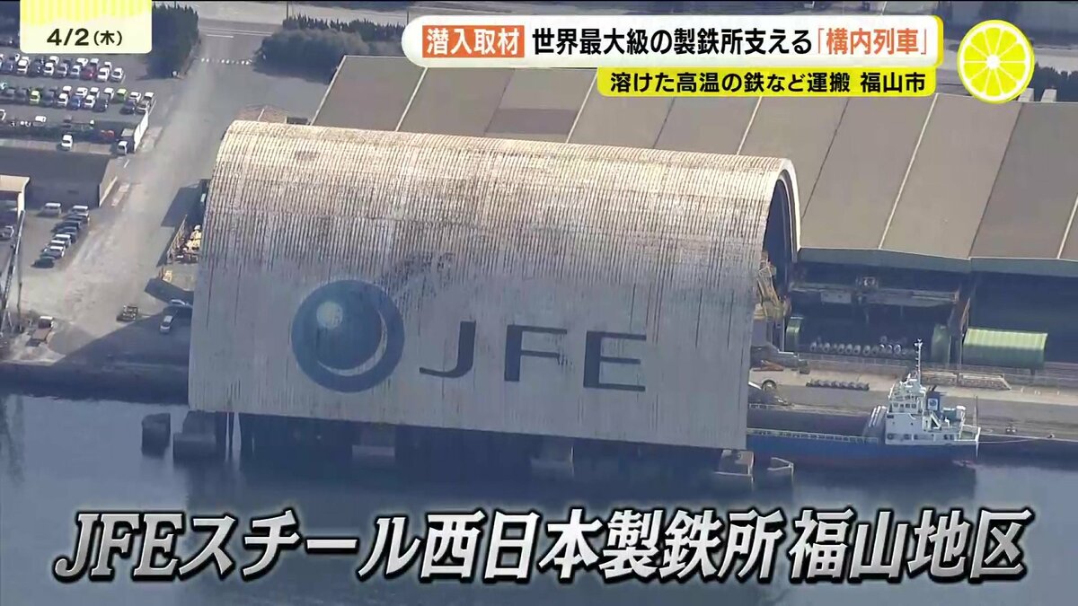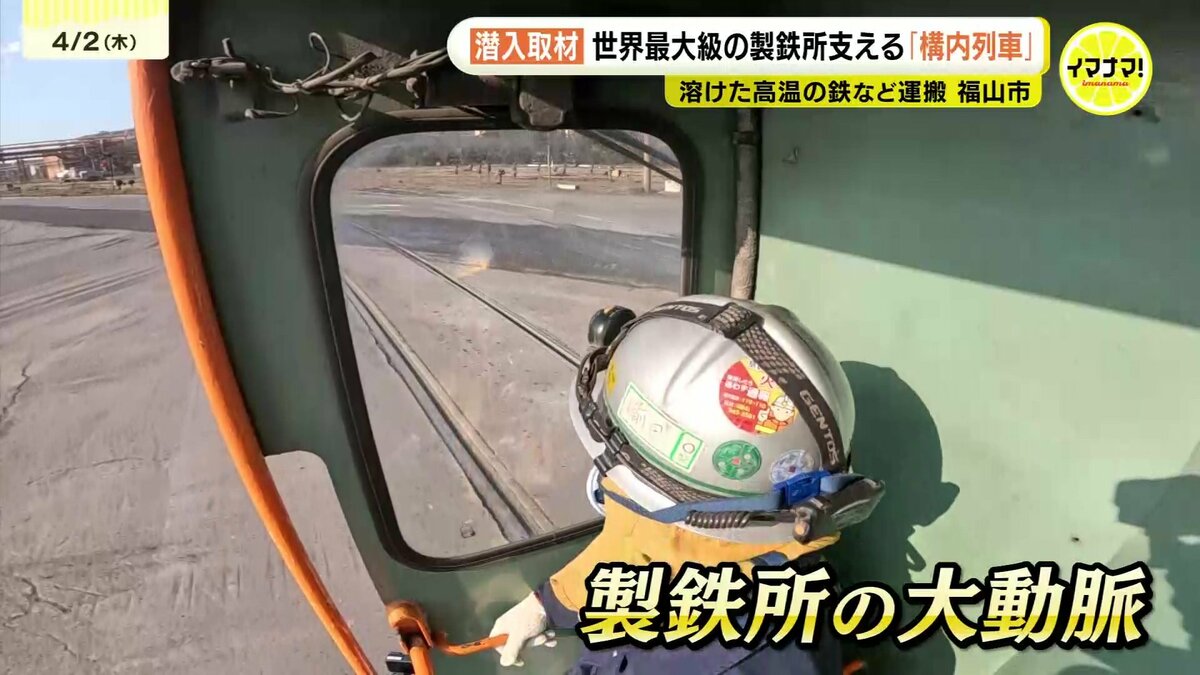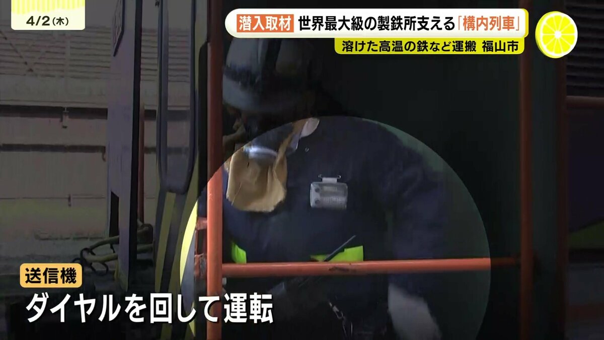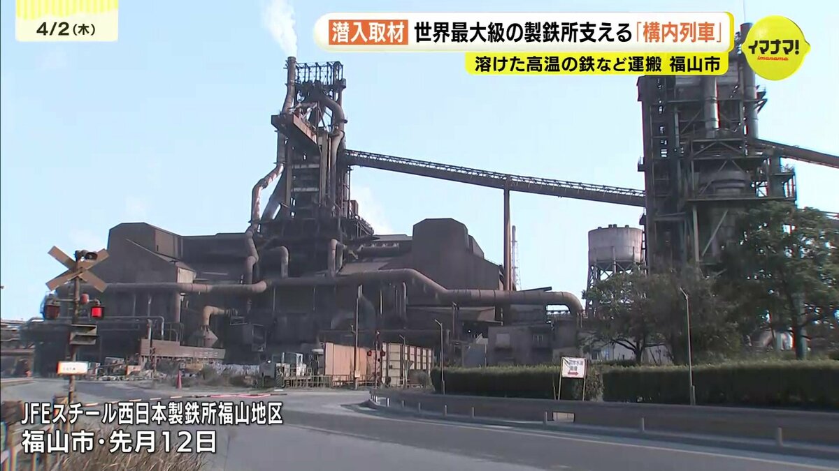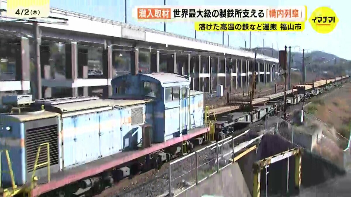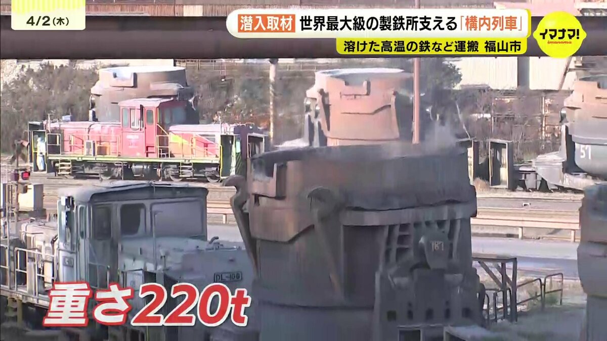 広島が誇る世界最大級の製鉄所への潜入取材です。鉄道ファンの方でもこの列車は見たことがないのではないでしょうか。溶けた高温の鉄などを運ぶ「構内鉄道」です。