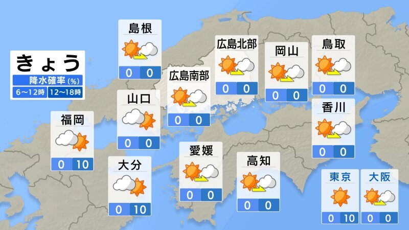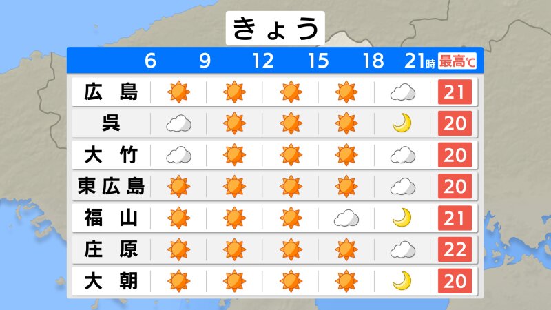 けさ4月3日(金)の広島県内は、晴れているところが多いですが、北部や内陸部では霧が出ているところがあります。けさはきのうよりも冷え込みが強まりました。最低気温は、広島市中区で8.1℃ 呉8.3℃など、おおむね平年並となっています。