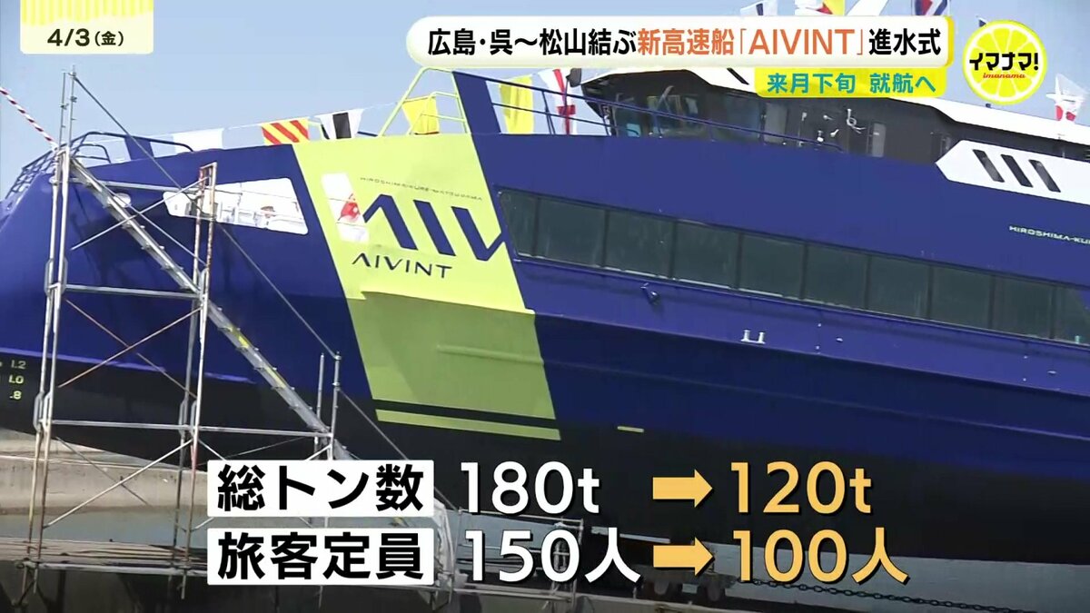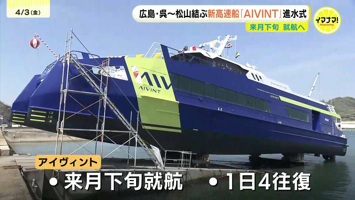 「AIVINT(アイヴィント)」は、来月下旬に就航予定。広島・松山間を最短80分で結び、一日4往復運行されます。