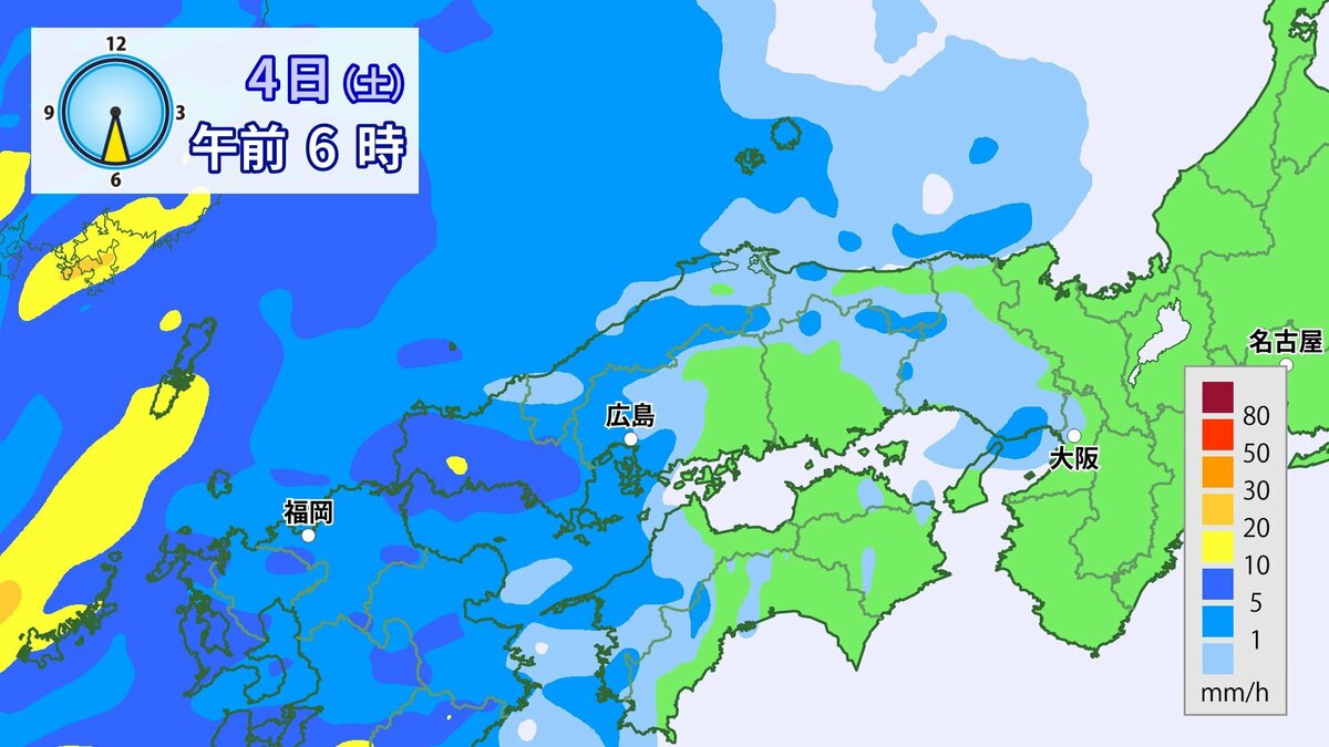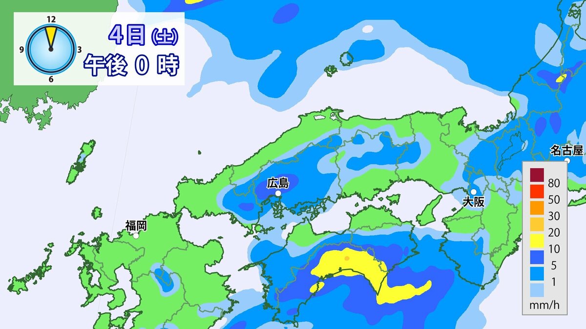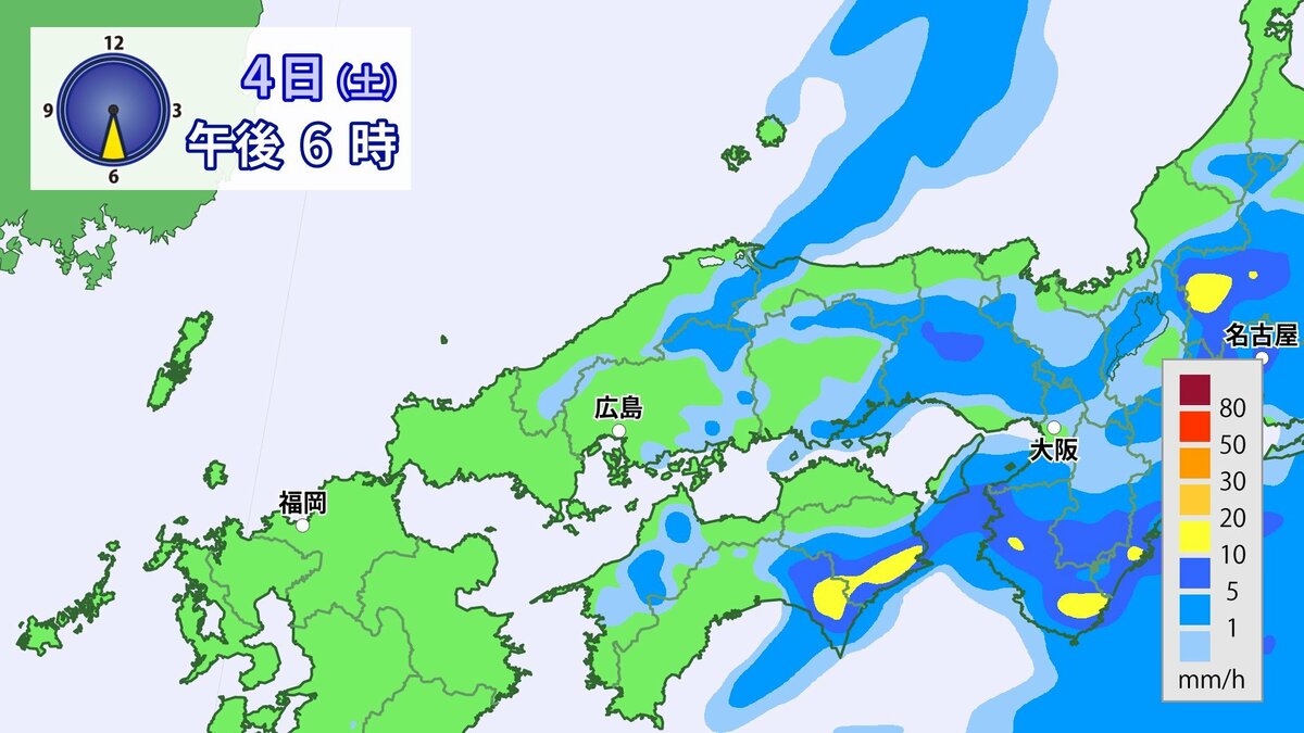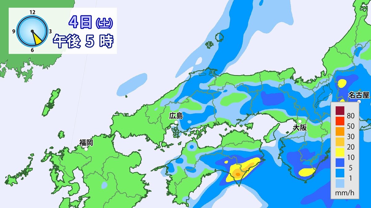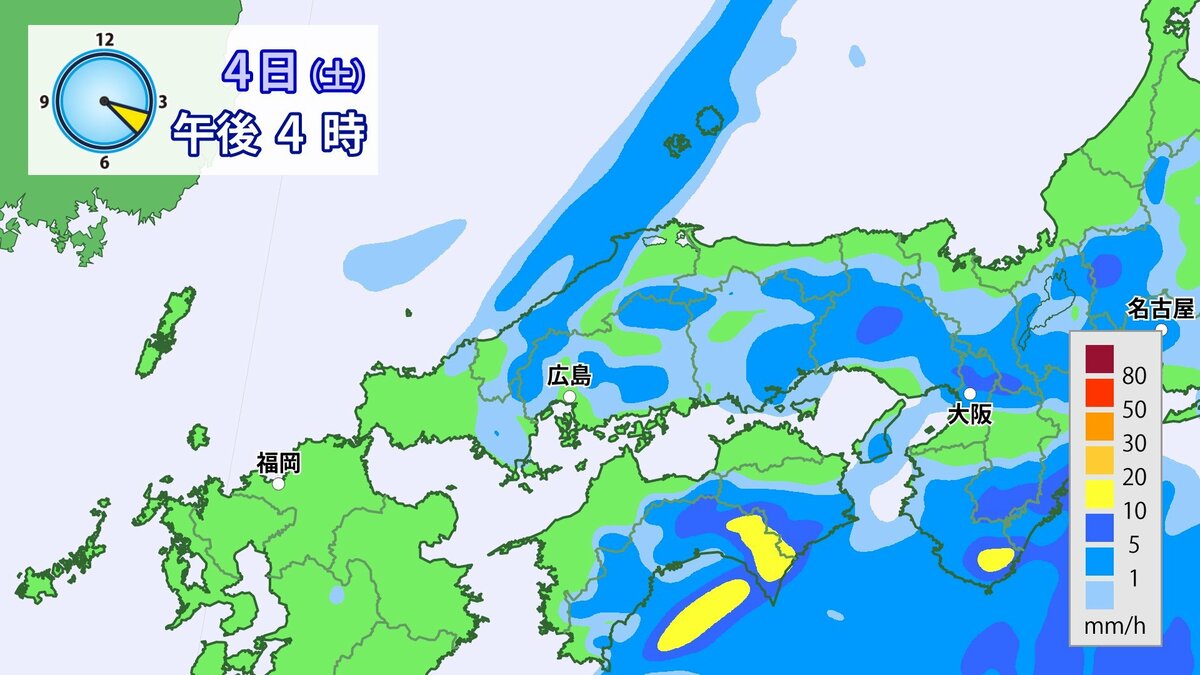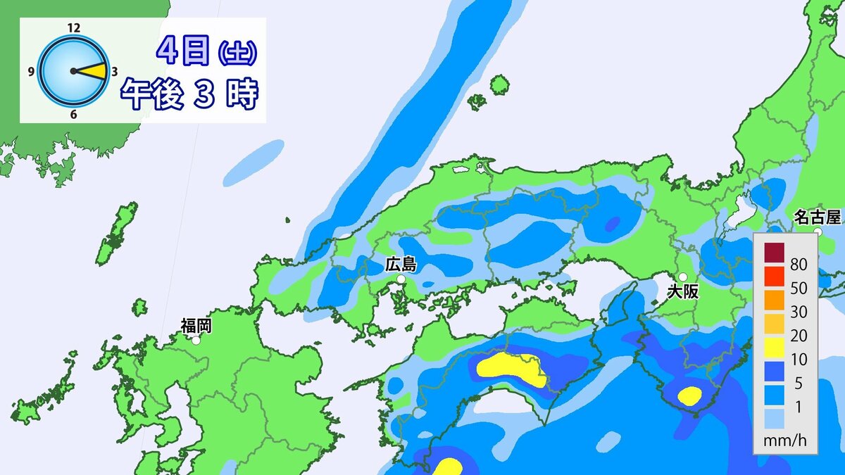 4日(土)低気圧や前線が近づいて強い雨や風に