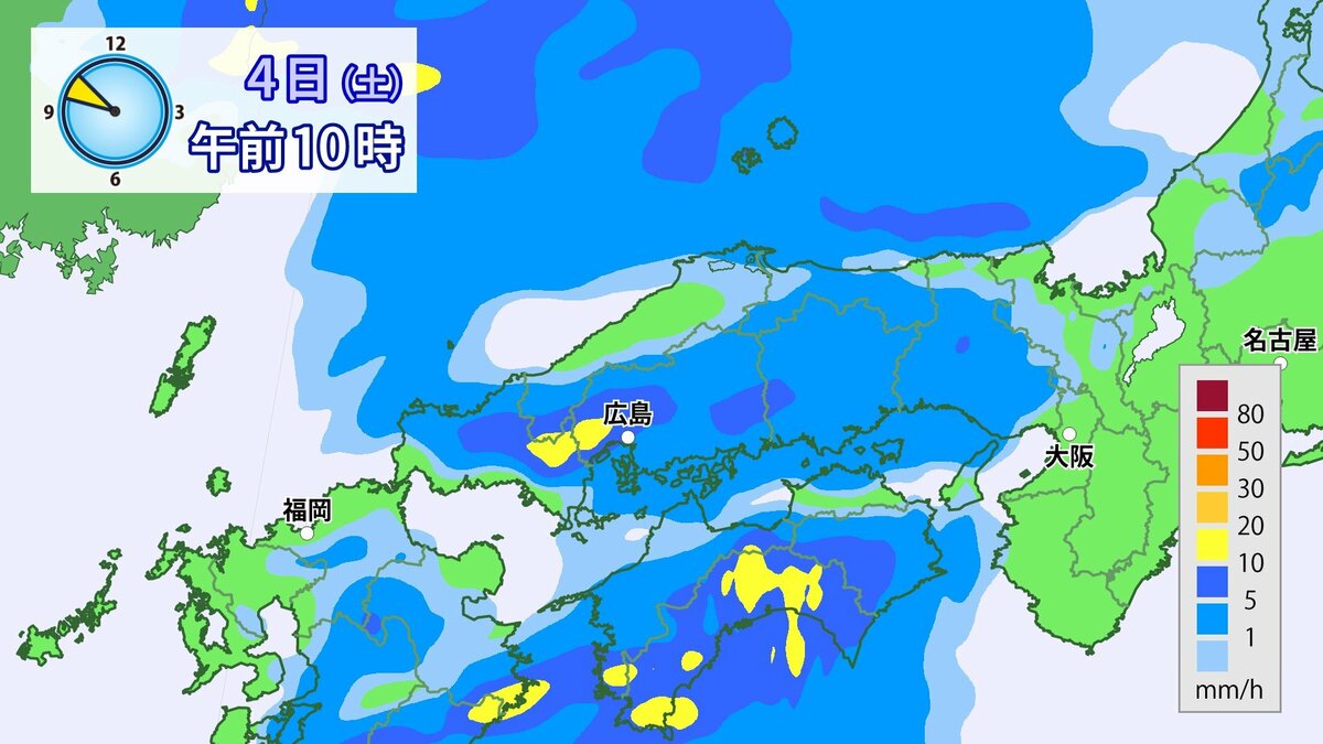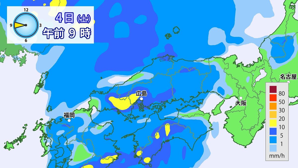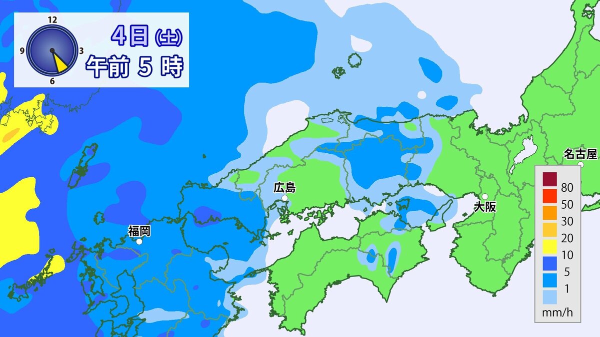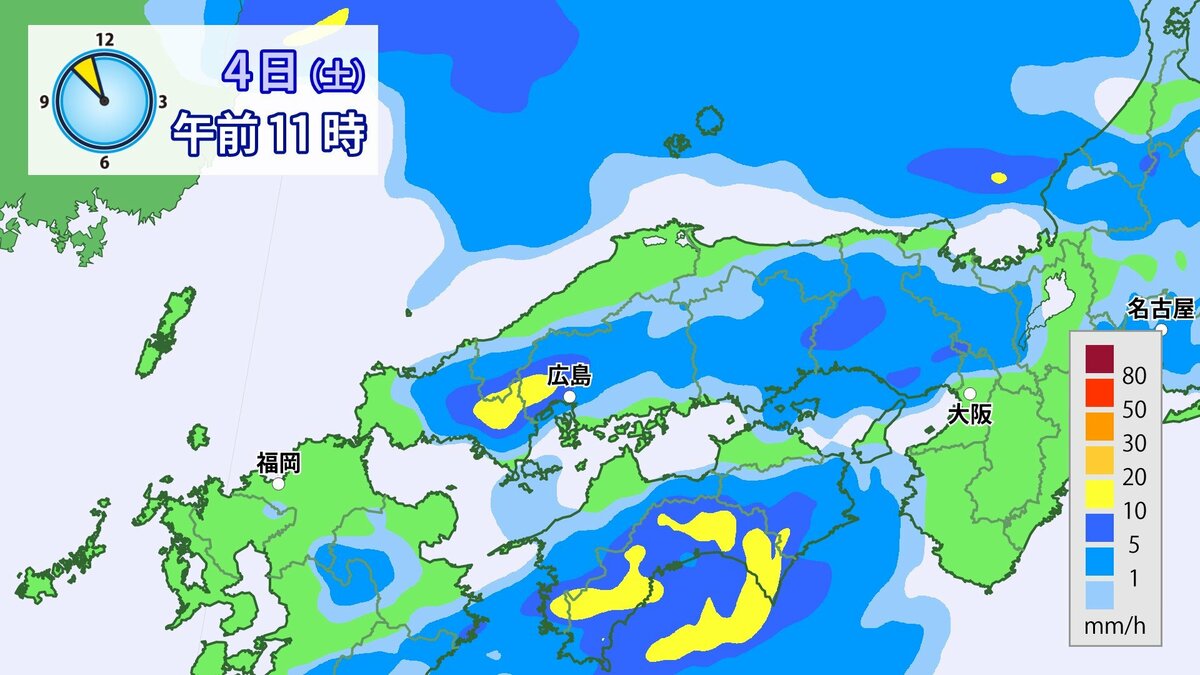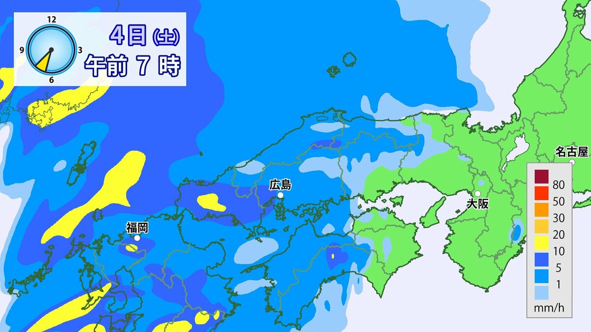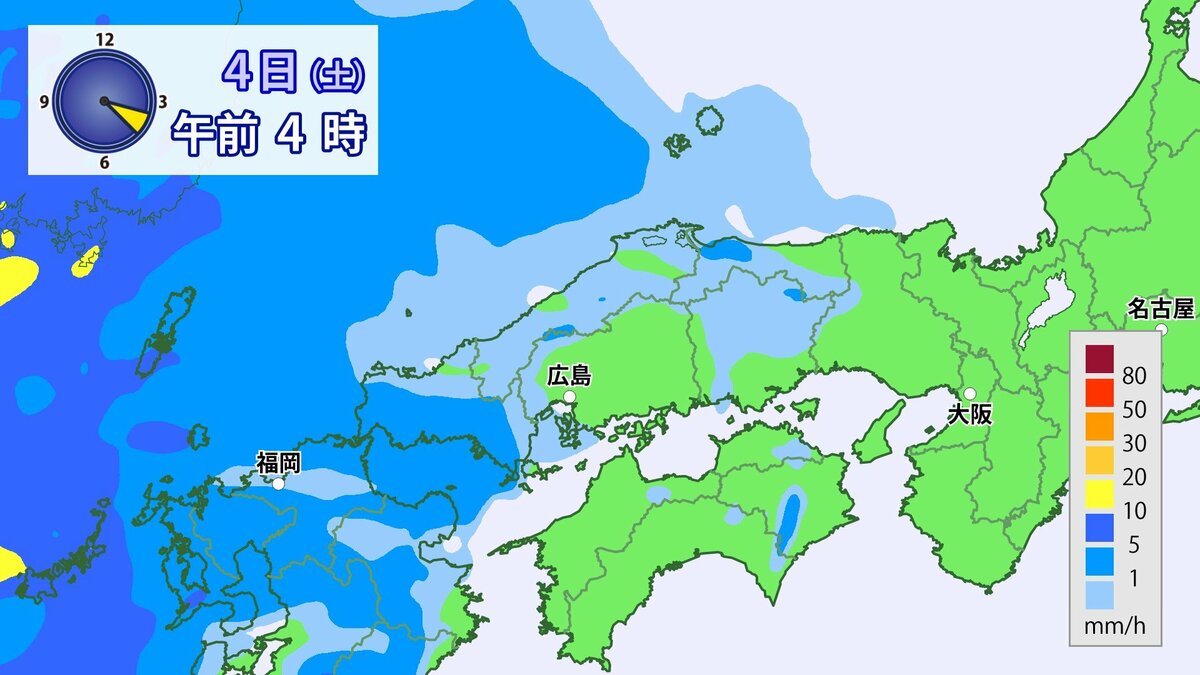 4日(土)低気圧や前線が近づいて強い雨や風に